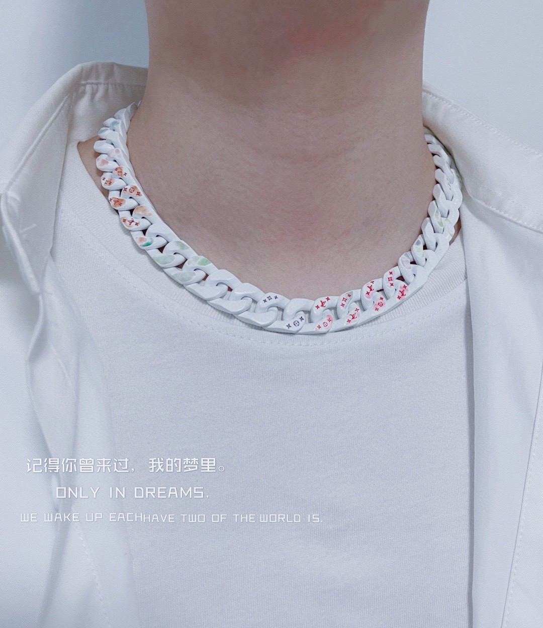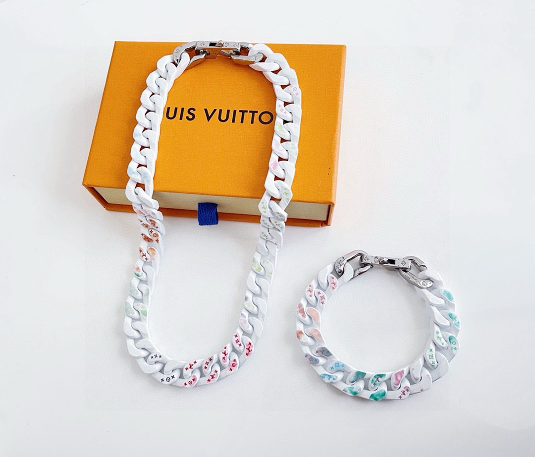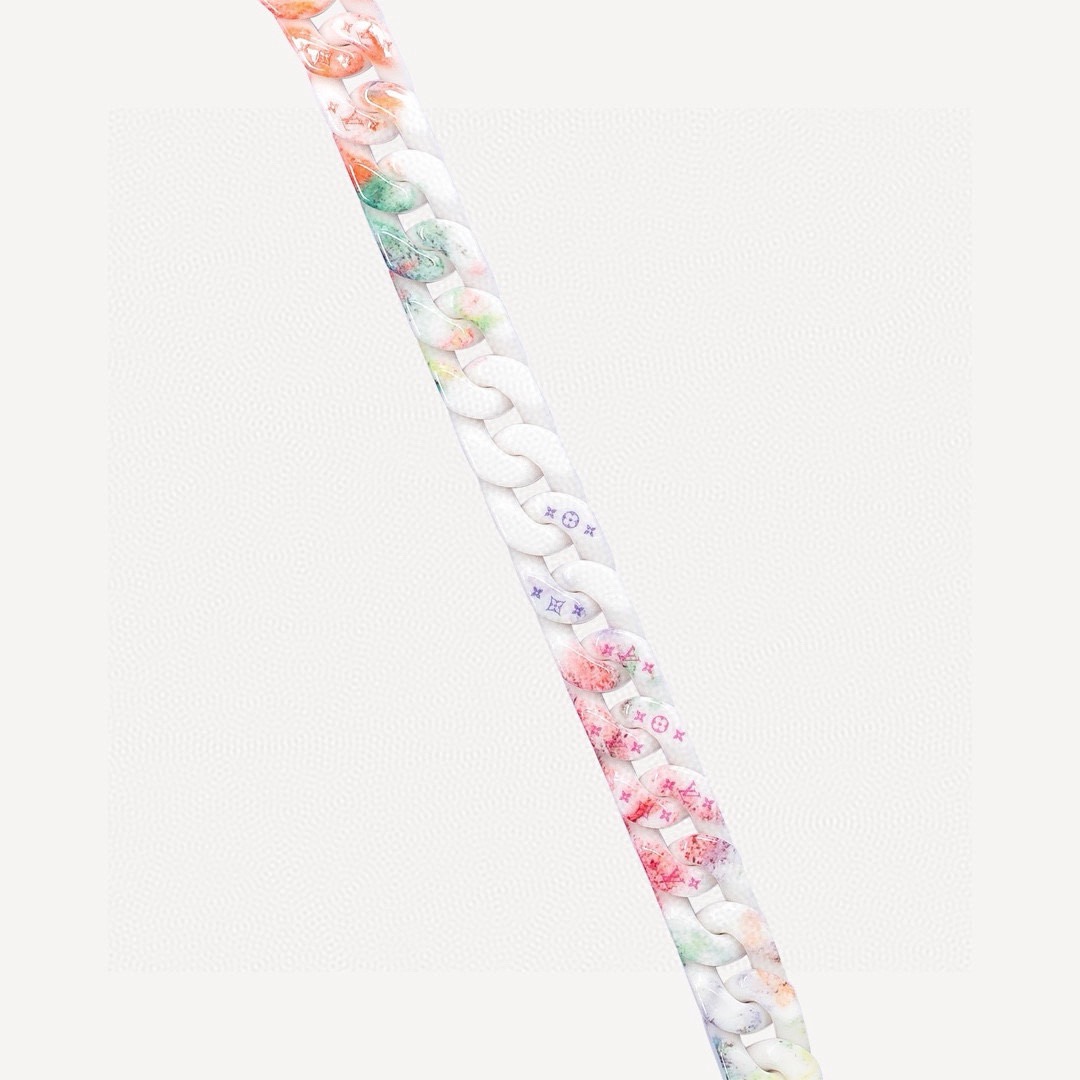 LV 路易威登 古巴彩白项链链 市面顶级吊打通货 全套包装 新款上新 官网同步在售30000 购入复刻 超酷炫系列 古巴手链 项链白彩 透过 Vi抛光陶瓷 珐琅链条与彩色装饰随机镂刻 Monog 图案 植根自然的大地色彩肆意渲染 以混合材质的创新融合冲破固有藩篱 链长 49cm