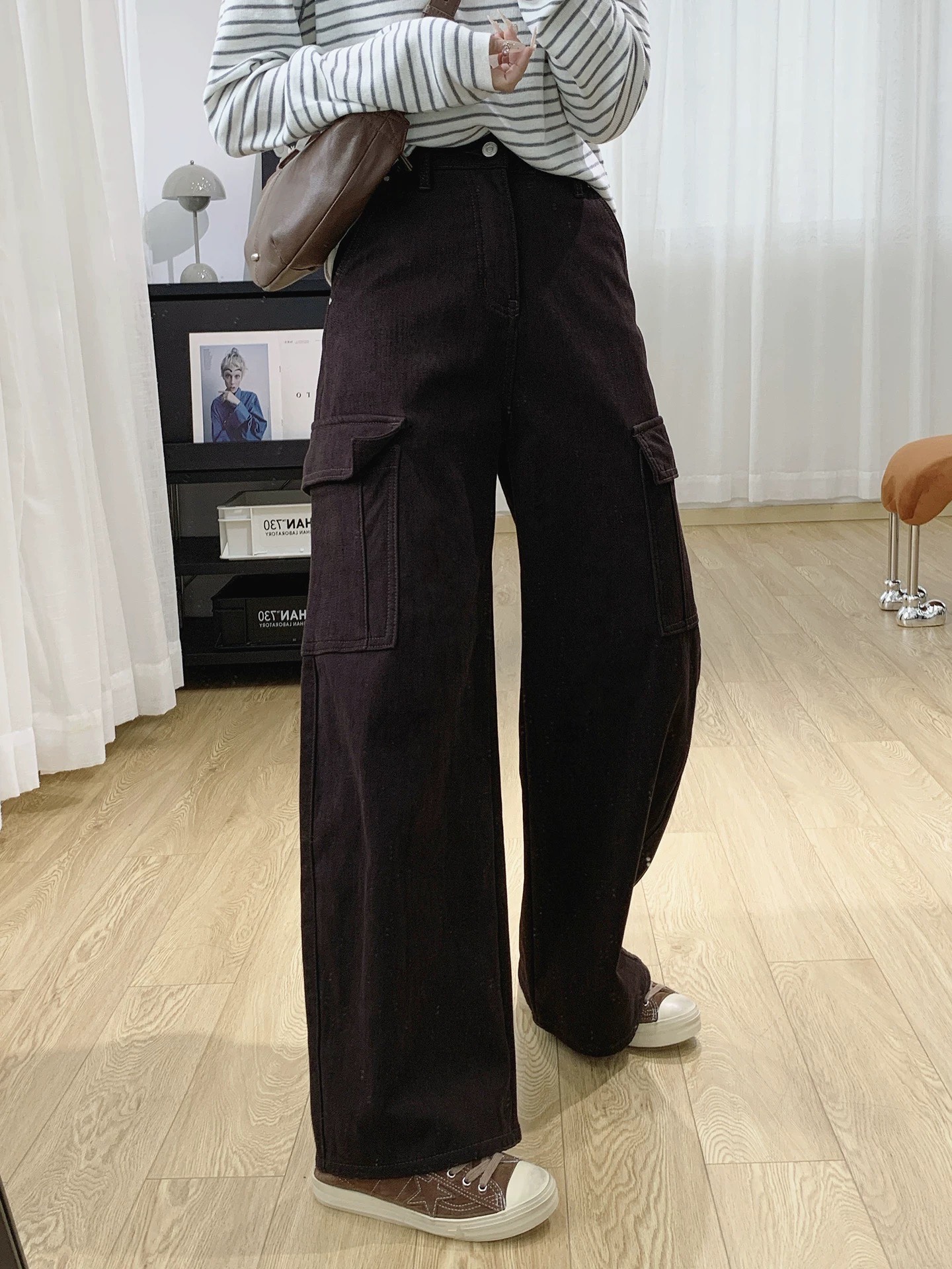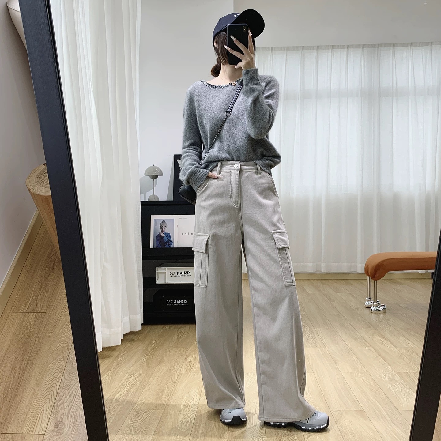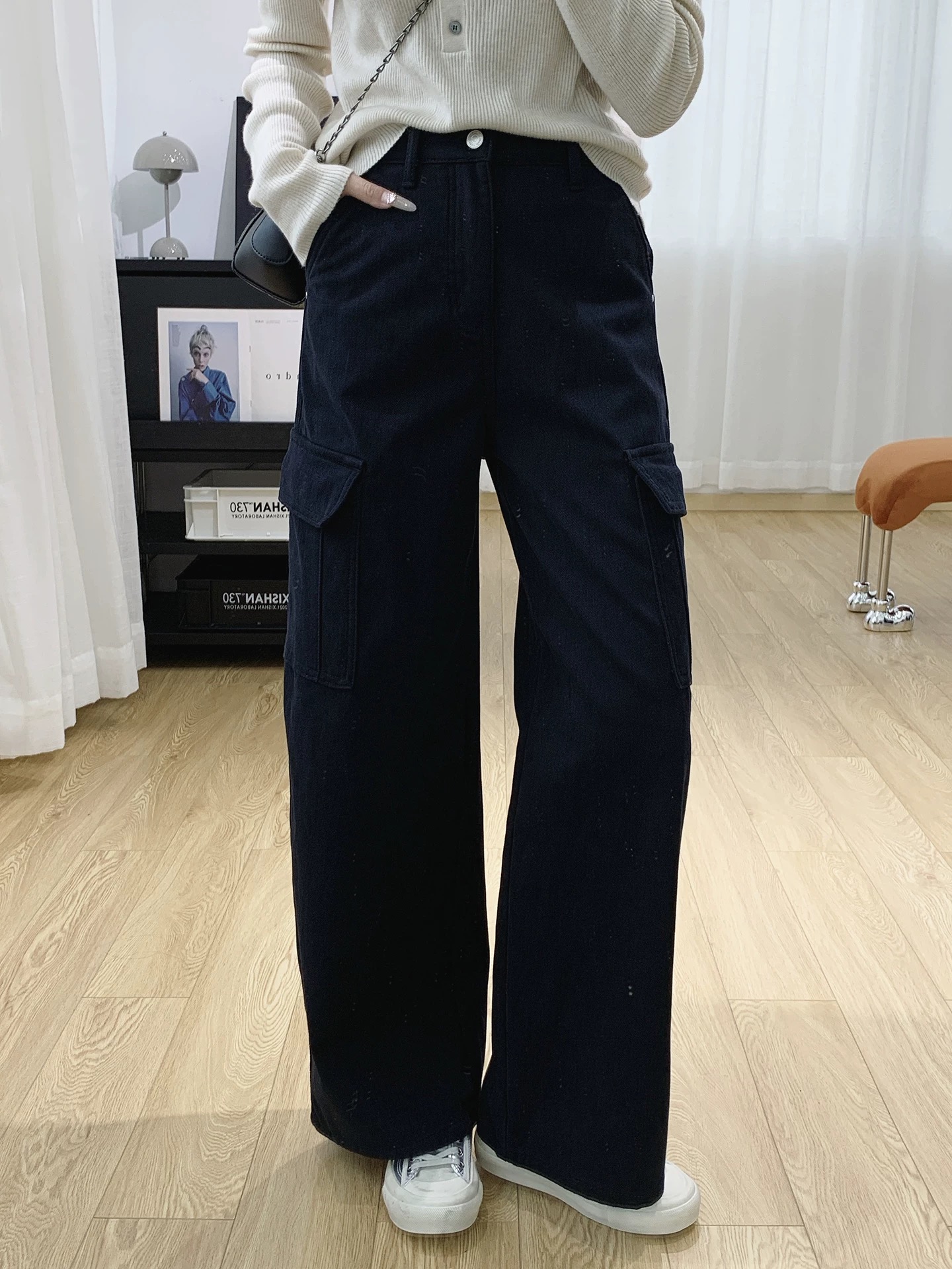 批加绒牛仔裤款号8998 高腰显瘦美式复古加绒工装裤宽松直筒松弛感阔腿牛仔裤女秋冬裤子