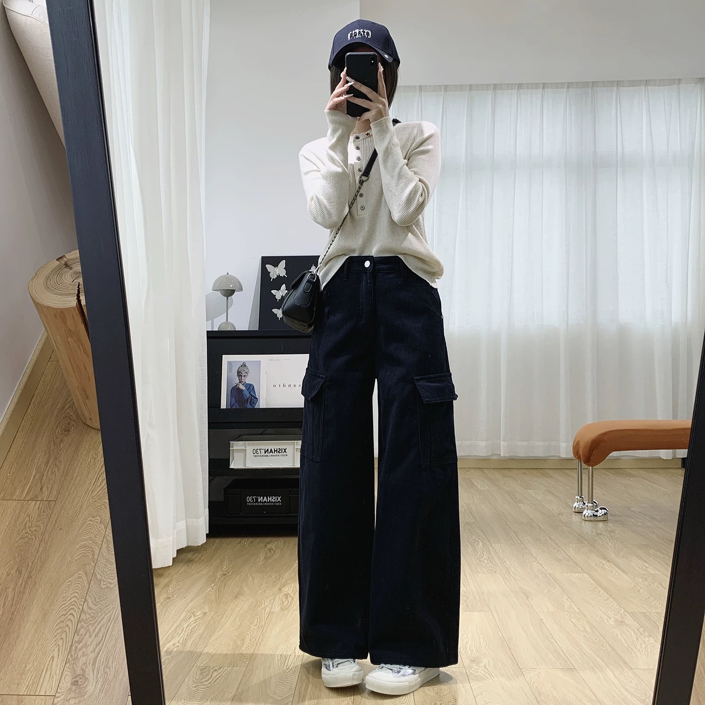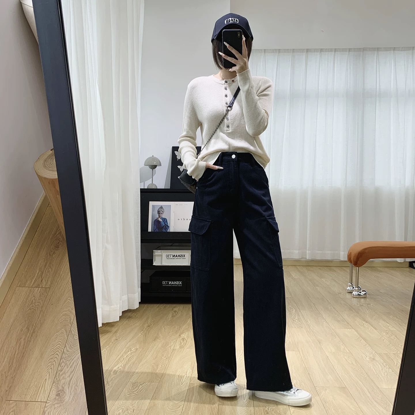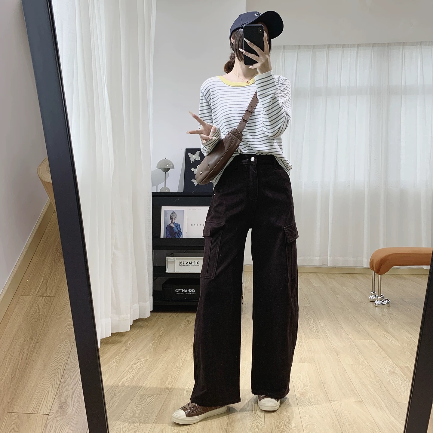 直筒阔腿的裤型遮蔽肥肉更显笔直美腿不挑人的心机裤