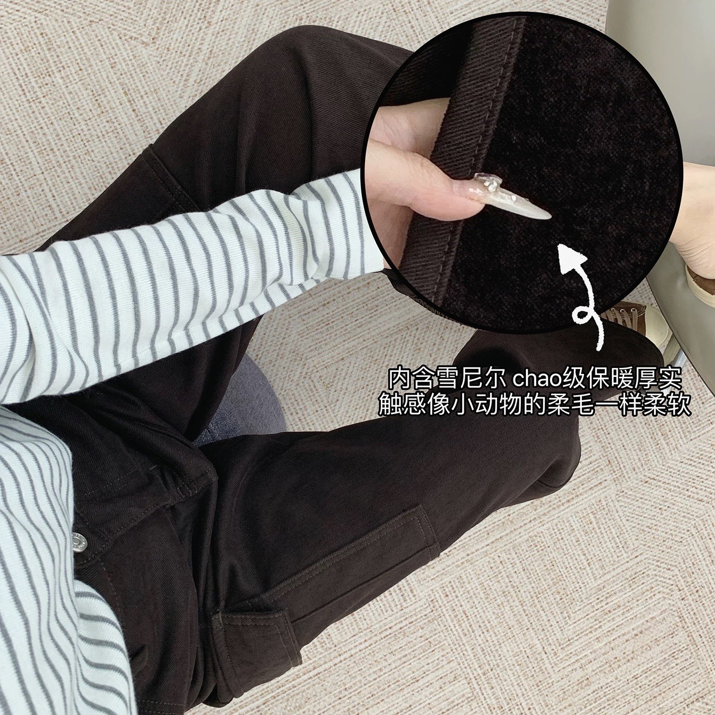 上身 软而不塌 穿上就舍不得脱下来内里雪尼尔绒 蓄热保暖手感柔滑 无拘严寒好版型能穿出好身材高腰视觉上拉长腿部线条