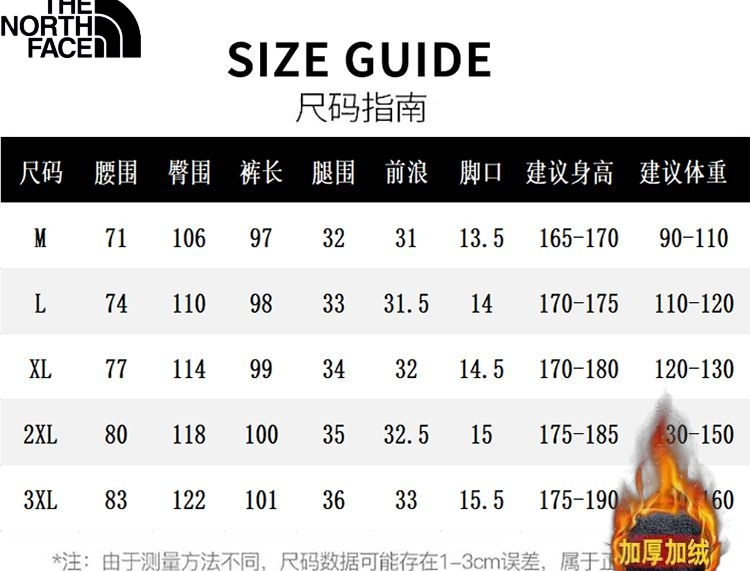北面The North Face冬季新款 男士高品质时尚百搭加绒加厚休闲裤男士潮流宽松工装裤 休闲裤