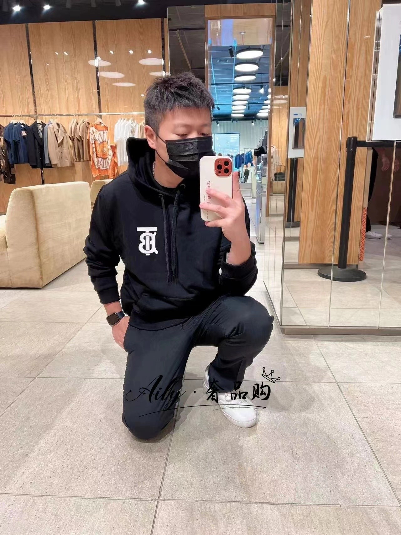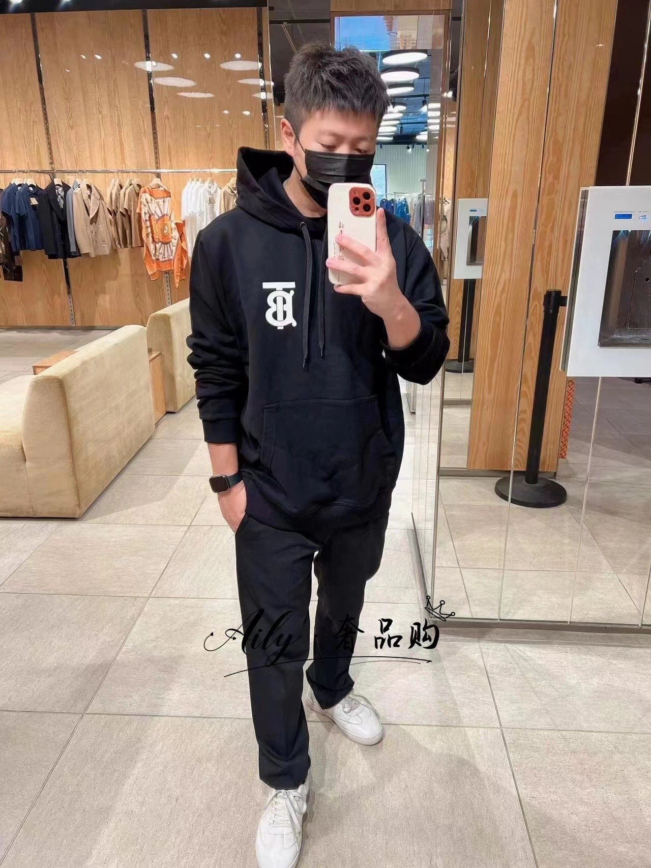 100158871 - BURBERRY巴宝莉落肩连帽加绒卫衣 时尚简单印花设计 潮 335119