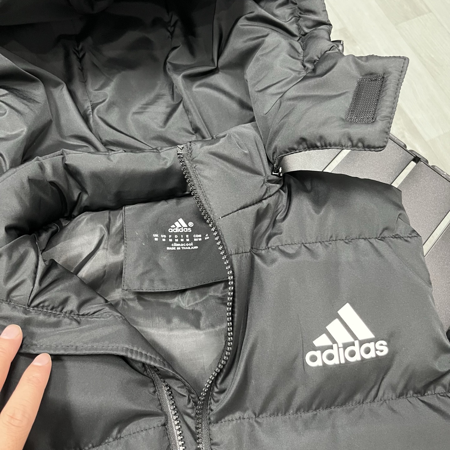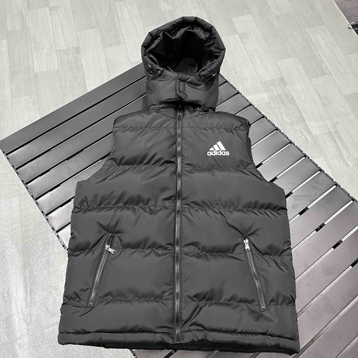 售后不停 上新 现货 adidas 阿迪达斯马甲纯色Logo印花 防风拉链羽绒棉马甲 立领无袖 马甲 厚实 蓬松保暖马甲 帽子可拆 三标齐全 男款黑色 藏蓝色S 2XL