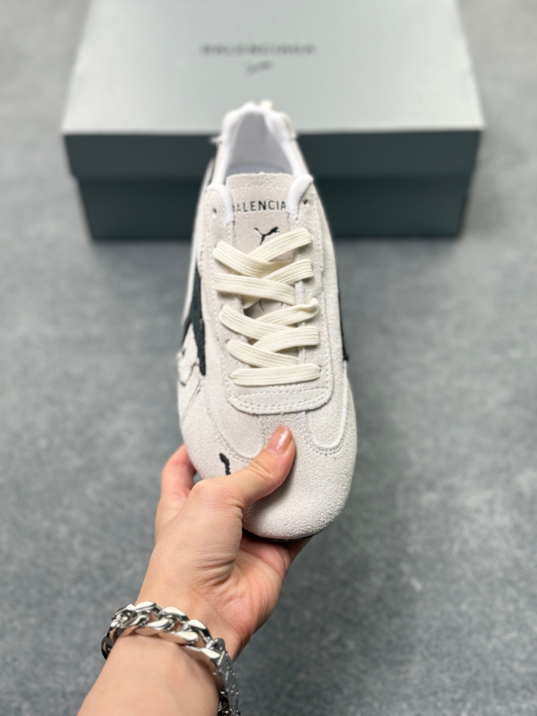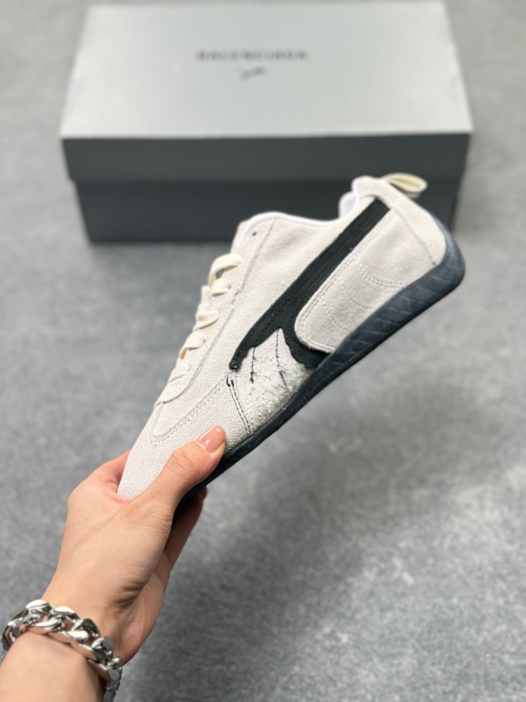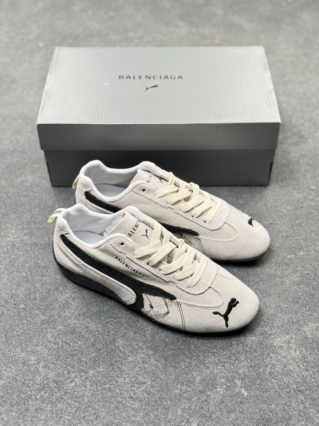 PUMA 彪马 x Balenciaga巴黎世家 Speedcat 系列 薄底鞋 牛皮绒面革 圆头做旧磨损 低帮 生活休闲鞋 极速赛车系列 复古运动休闲跑鞋 充正版本 鞋面设计轻量透气 提供了舒适性和穿着感受 柔软内里材质 穿着更加舒适 橡胶鞋底提供持久的牵引力