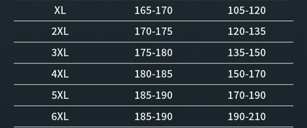 尺码 XL 5XL