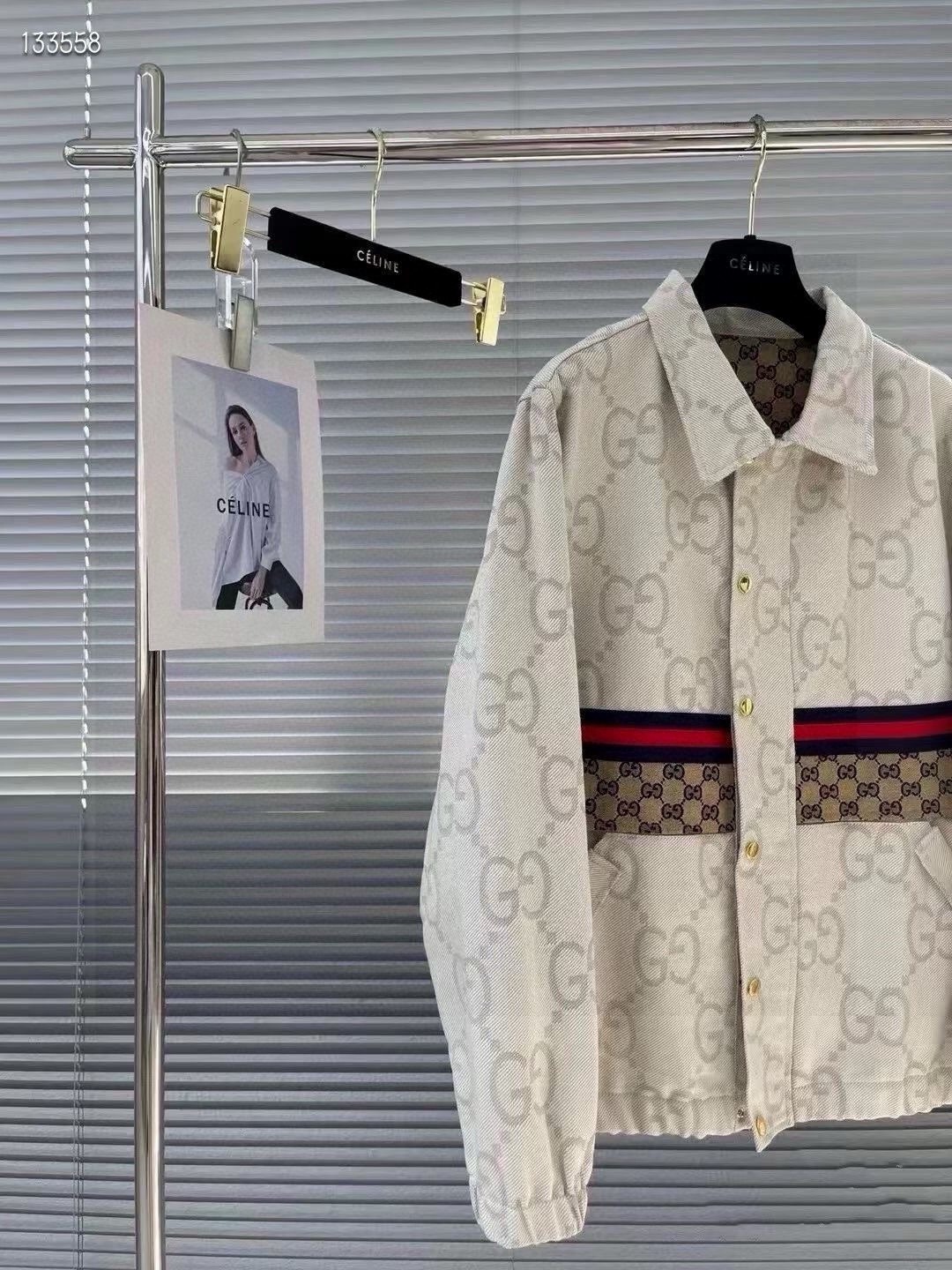 品名 Gucci 23ss秋冬新款暗纹双G提花牛仔夹克外套 版型 宽松 面料 提花牛仔 颜色 象牙白 尺码M L XL 胸围 衣长 肩宽 M 126 82 54 L 130 84 55 XL 134 85 56 手工測量存在1 2cm誤差 僅供參考
