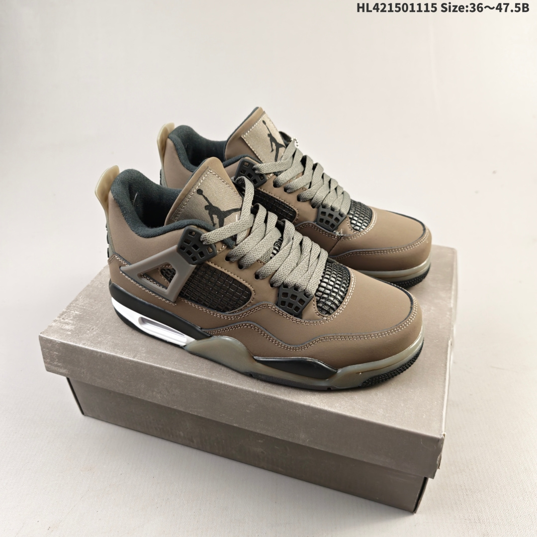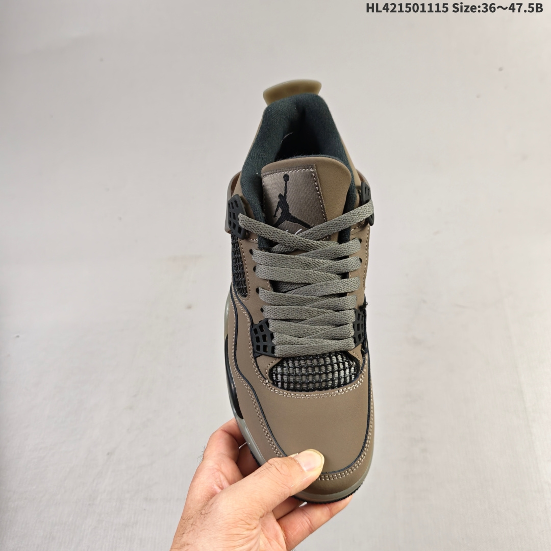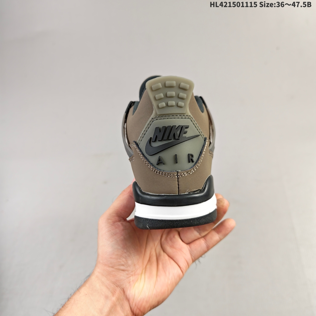 Nike SB x Air Jordan 4 Retro Cave Stone 摩卡棕 AJ4 乔丹4代 aj4 乔4 乔丹4 棕色 乔丹篮球鞋系列 鞋身整体以TS经典大地色为主色调 辅以黑色点缀 搭配棕色的鞋带 让鞋子看起来更有整体感 鞋侧身黑色格网透出摩卡内层 鞋舌顶端棕色的标签 以黑色Jumpman Logo以及白色Flightt刺绣字样 彰显球鞋身份 鞋带孔部位的TPU装饰采用黑色呈现 更具细节感 鞋帮部分和后跟位置的提环使用黑色TPU材质 给鞋身带来更多色彩层次感 后跟Nike Swoosh Logo和Air字样以及外底迷你Jumpman Logo以黑色点缀 中底使用黑棕妆点 呼应鞋身设计 最后以搭载有开窗式Air Maxk气垫的中底收尾
