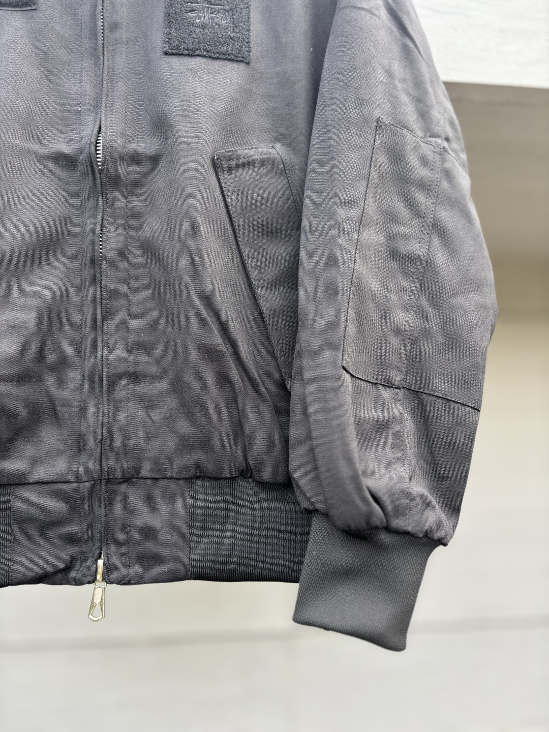 新款 𝗦𝘁𝘂𝘀𝘀𝘆 斯图西 罗纹边拉链翻领徽标宽松美式复古夹克外套 𝗦𝘁𝘂𝘀𝘀𝘆今年终于带来一好看的新款飞行夹克了 上身最好看还得属这个金橄榄配色 实物比图片亮一些 设计上增加了翻领和魔术贴的设计 用料比想象中的薄 内里没有填充物 拉链用了故意做旧氧化的复古效果