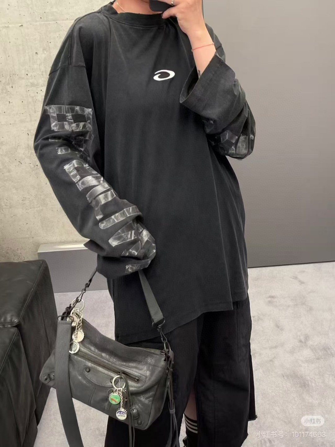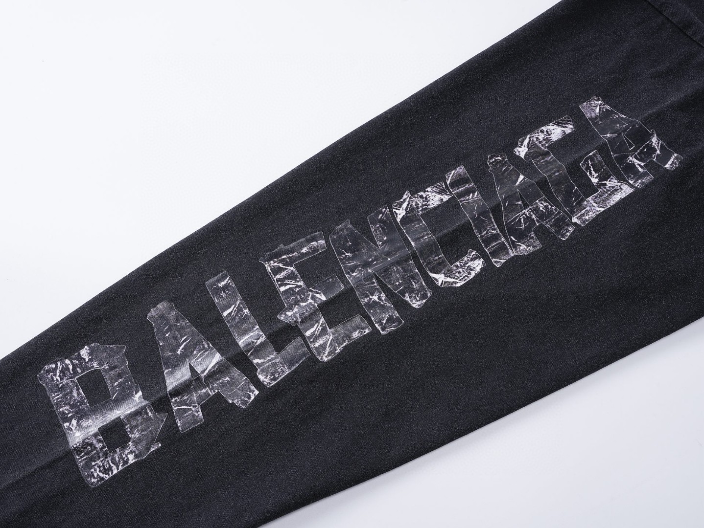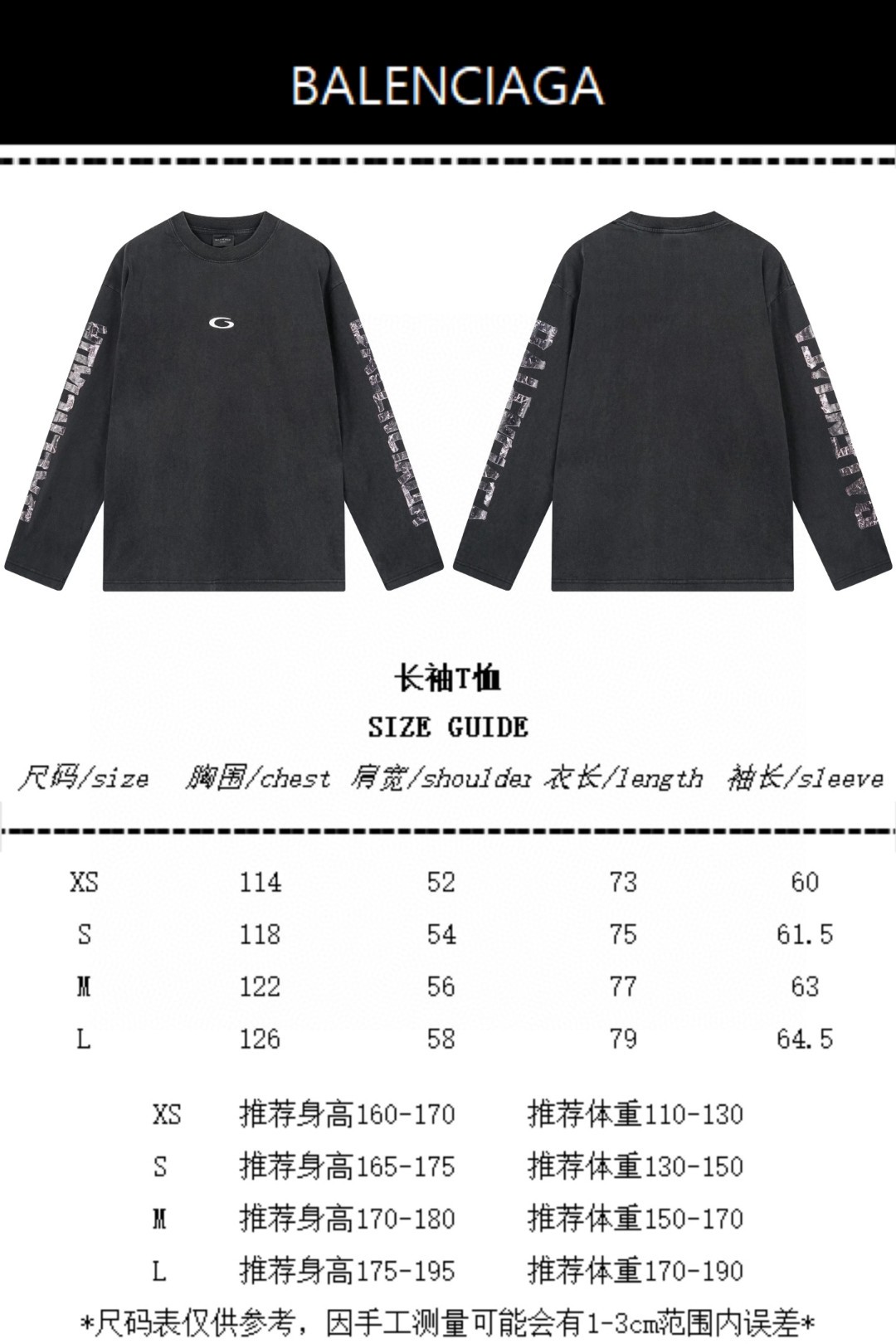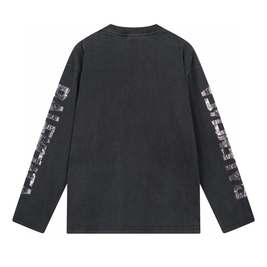 代发 BALENCIAGA 巴黎世家2025 SS 最新美纹纸胶带电脑直喷印花前胸LOGO刺绣成衣水洗做旧长袖T恤