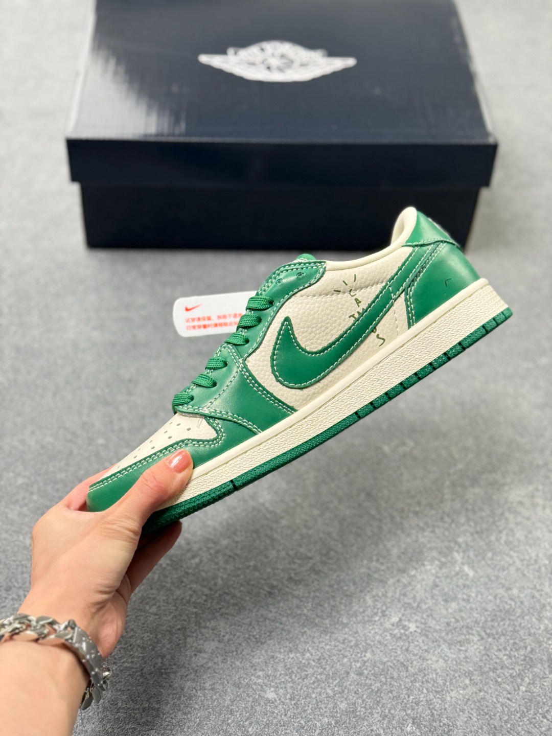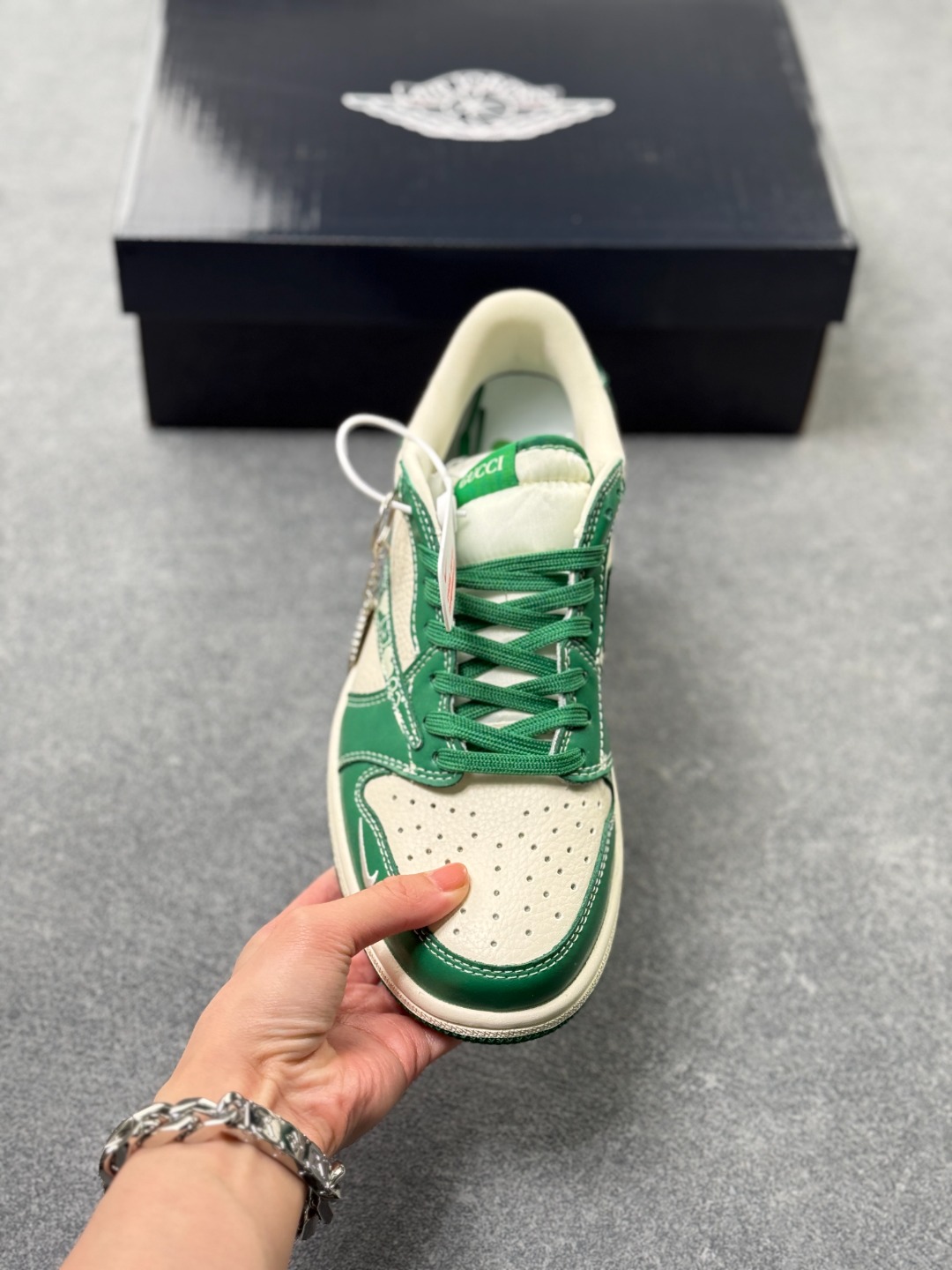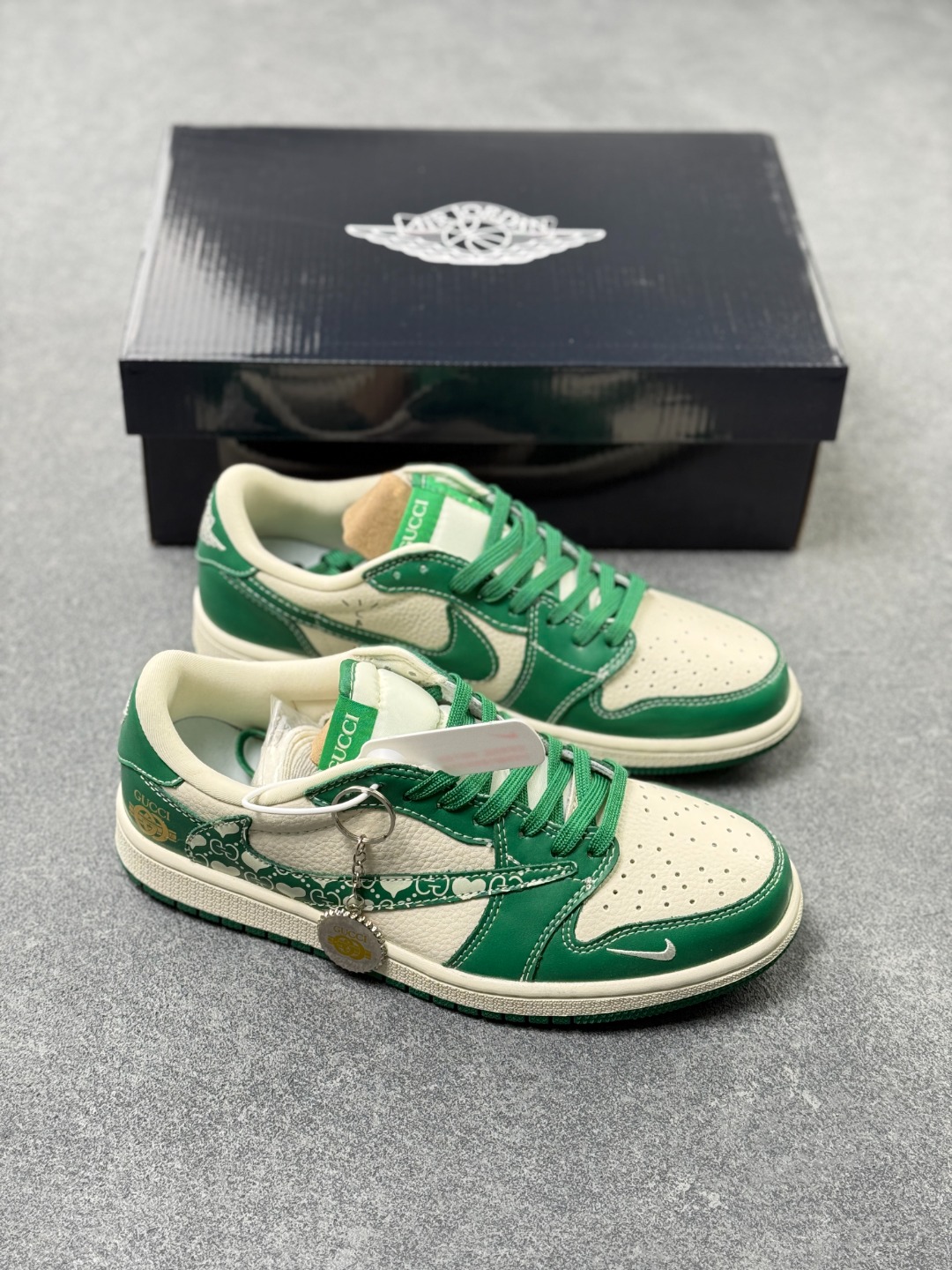 海外爆款限量发售 Travis Scott x Fragment Design x Jordan Air Jordan 1 Low OG SP 古驰联名 绿花纹 多方联名合作融合了Travi翻毛蓝勾s Scott 独特的音乐风格 藤原浩个性的设计风格以及Jordan品牌的经典元素 使其成为一双具有独特身份和价值的鞋子 清新而立体的外观加上联名标识更突出了其独特身份 这种配色方案显示出活力和时尚感 在视觉上引人注目 鞋身的质感和细腻的细节处理使其显得高端而格调十足 这款 倒钩 联名是设计与创意完美结合 融合多方的个性风格是一款备受瞩目的潮流鞋款 低帮休闲板鞋 定制鞋盒 大厂纯原品质出货 超高清洁度 皮料切割干净无任何毛边 细节完美