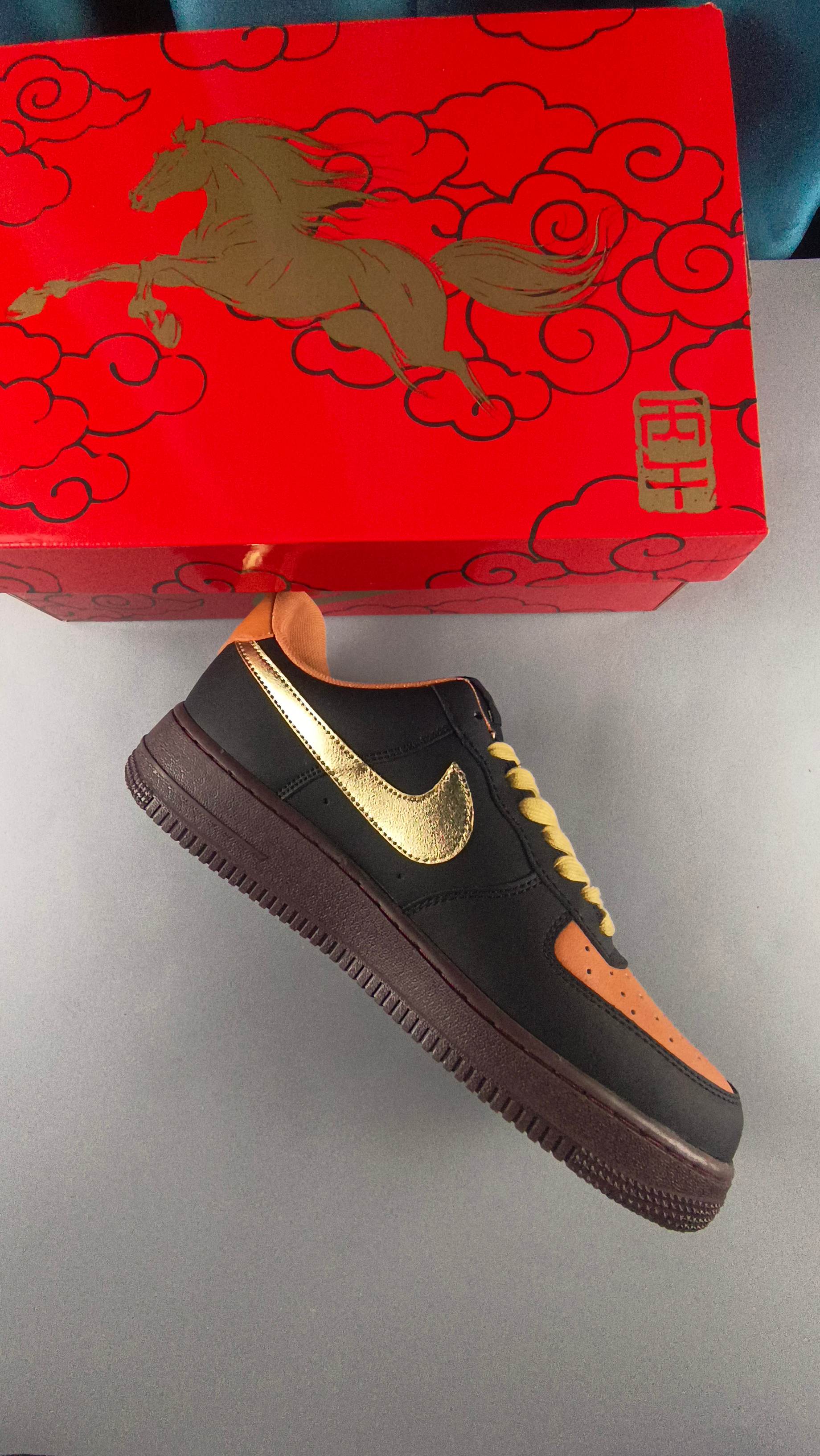 海外限量发售 公司级NIke Air Force 1 07 Low 马年限定 玄黑赤金 空军一号低帮 运动鞋 休闲鞋 头层皮 折边针车 工艺难度大 原楦头原纸板 高端定制鞋盒 原厂鞋底 超高清洁度 细节完美