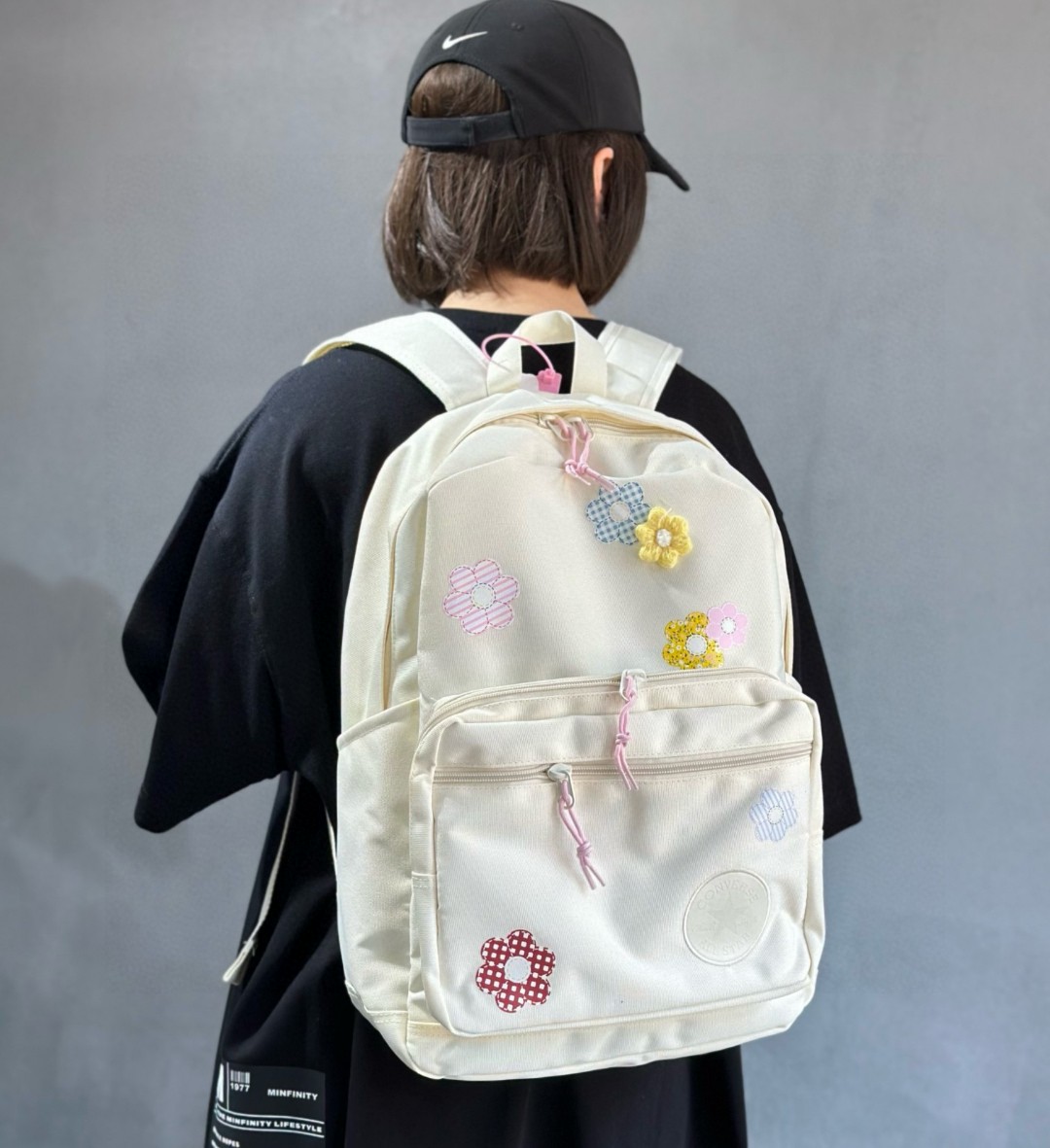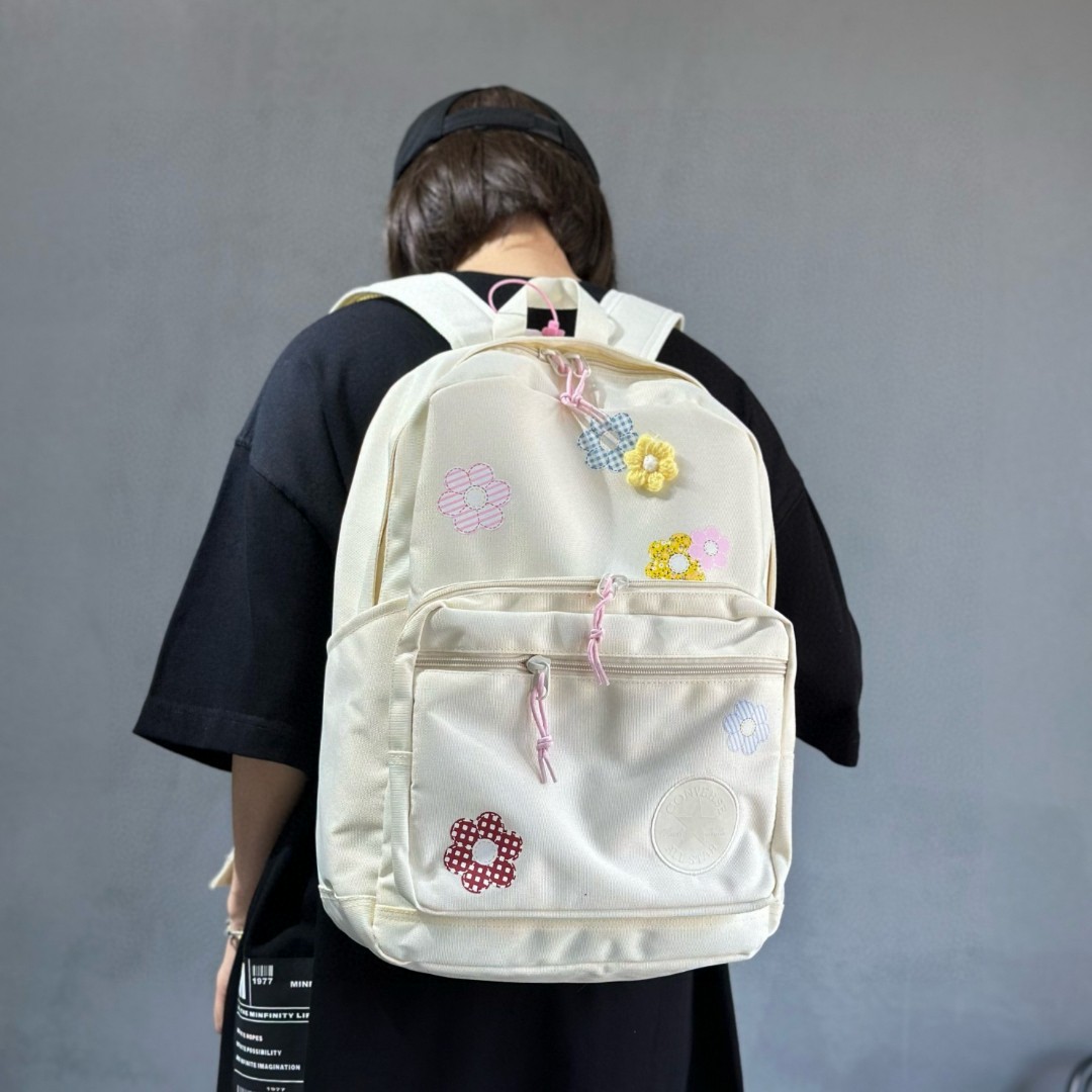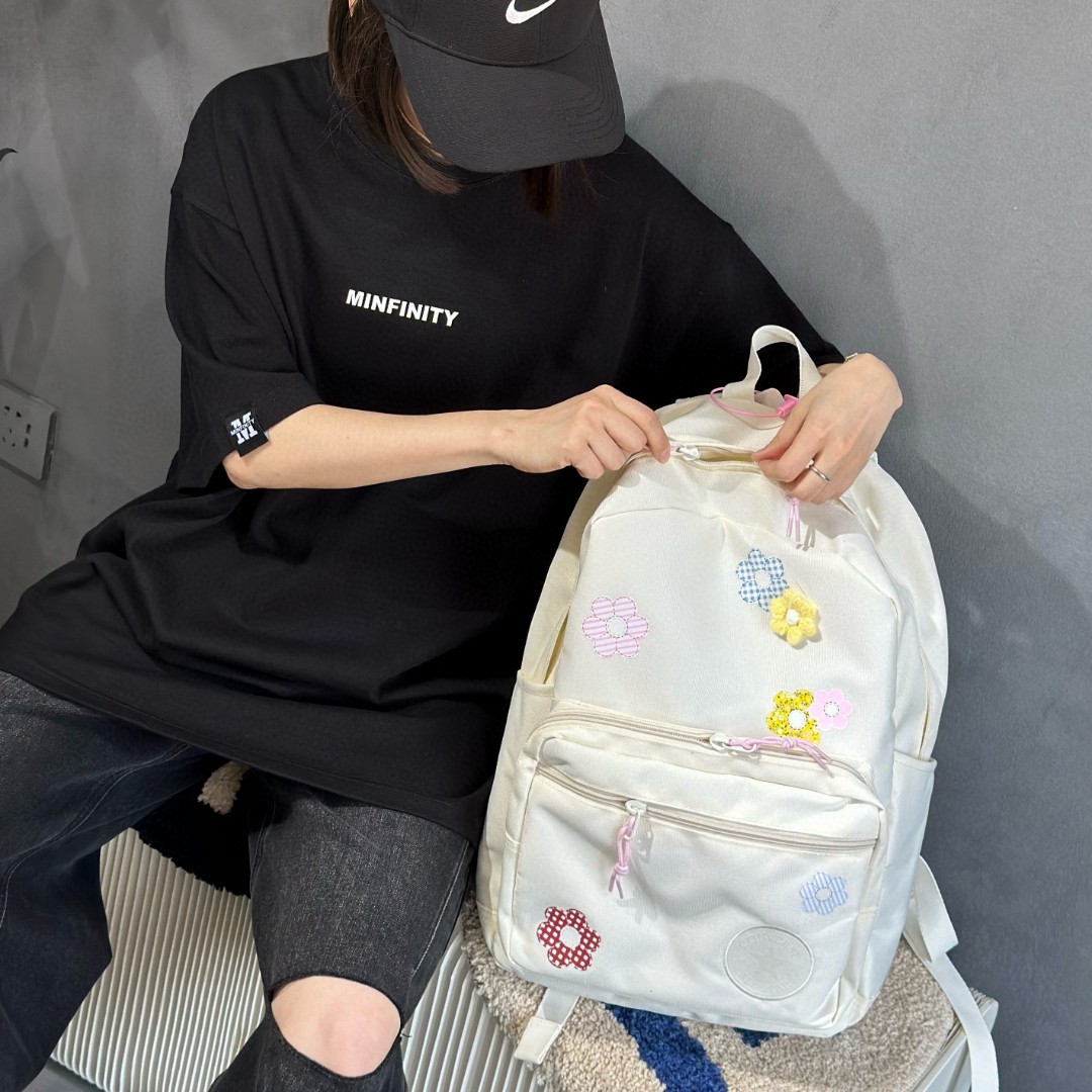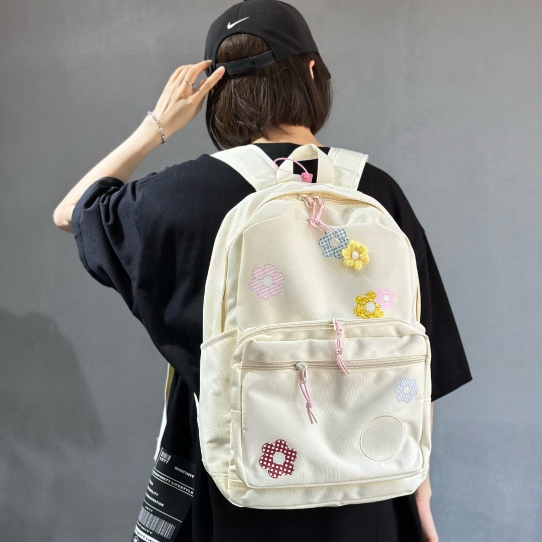 售后不停可退换 匡威CONVERSE花卉双肩包单肩包学生书包 质量做工细节都非常到位 某订单等了好久才多出一批 拿到手就知道特别好的一款包 包包用料特别厚实 模特实包实拍 上身特别百搭好看 颜色 图色 尺寸 45 32 15