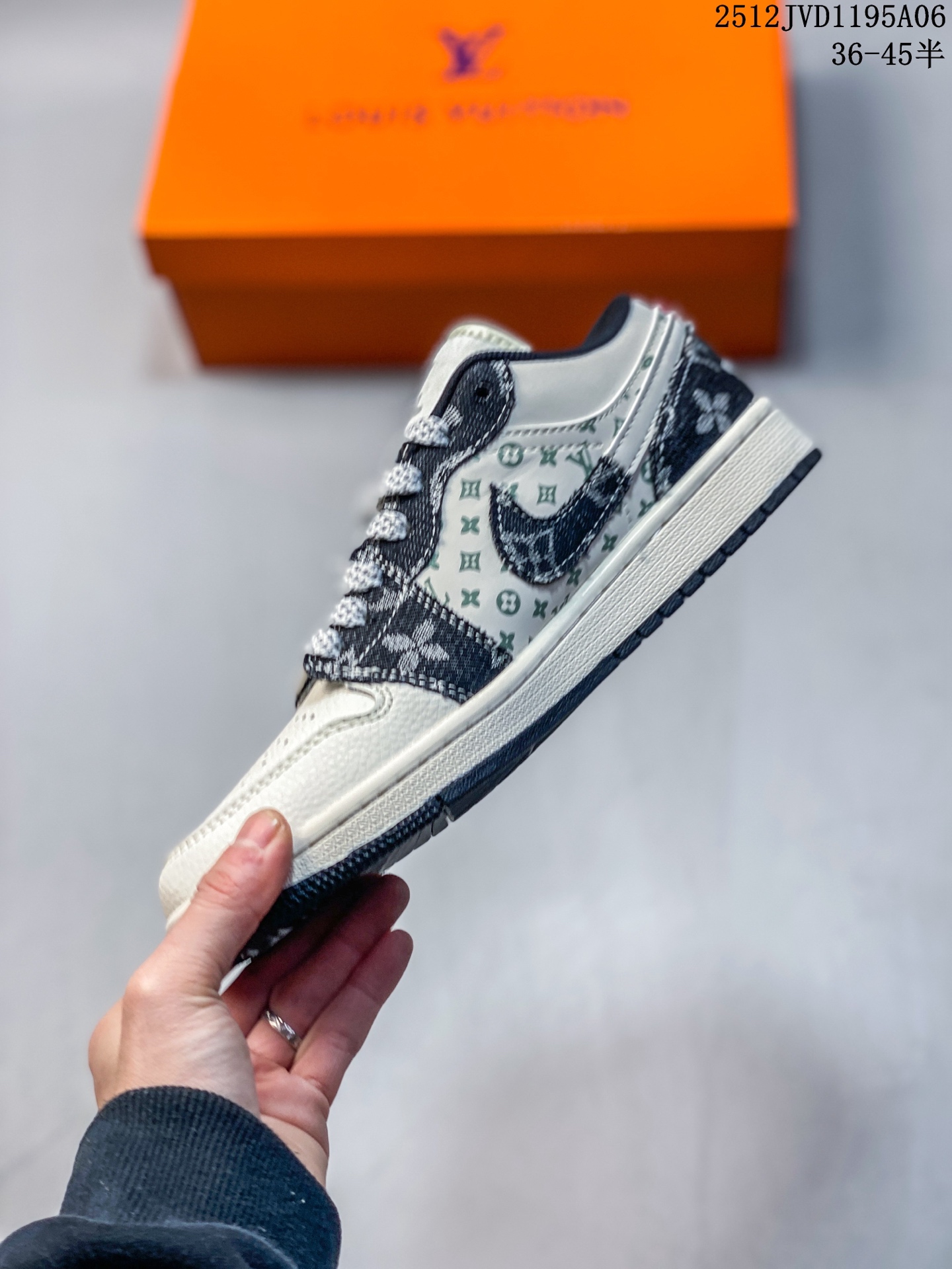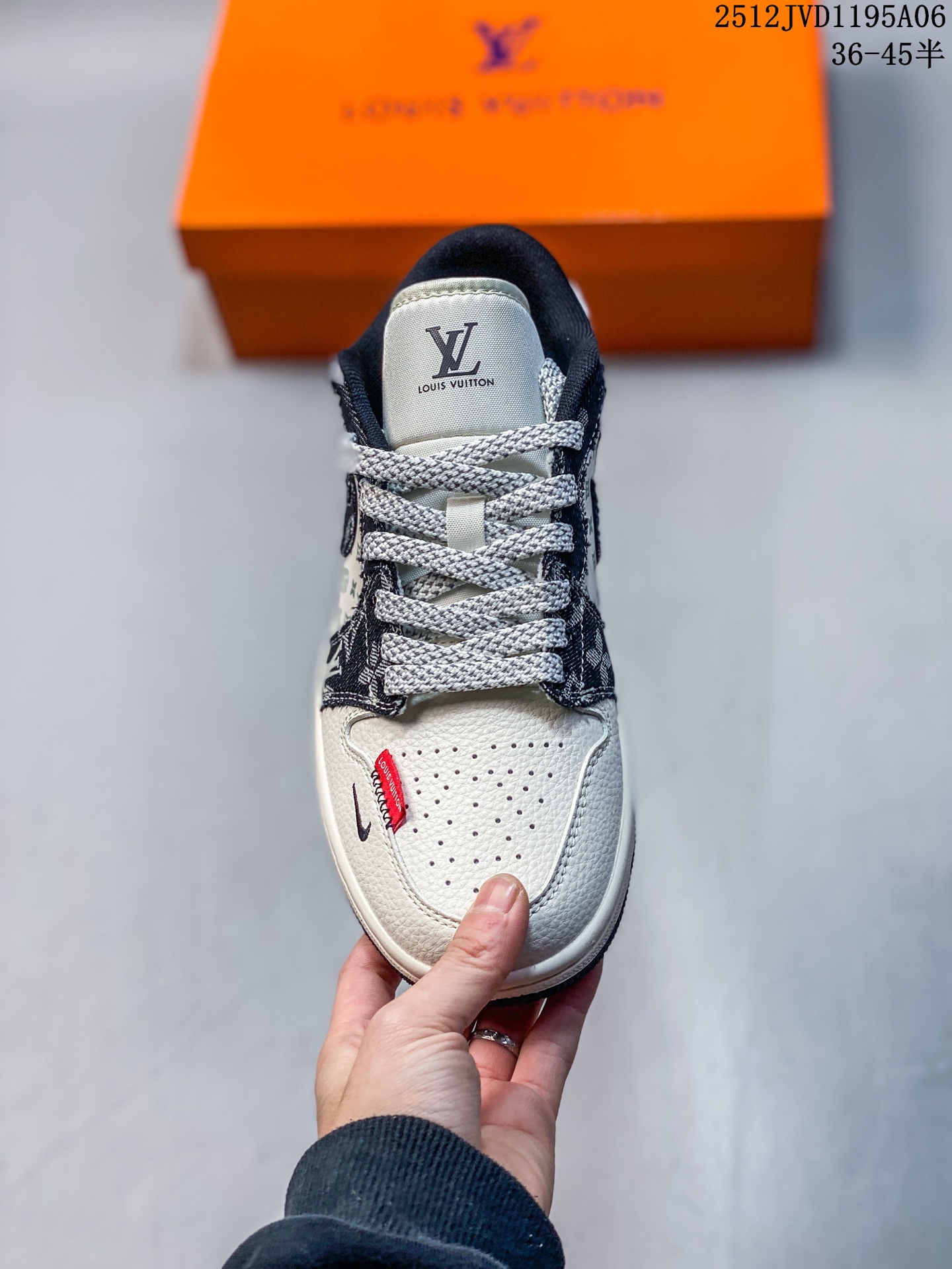 Nike Jordan Air Jordan 1 LV联名 黑断勾 高端定制 低帮 复古 减震 防滑 耐磨 篮球鞋 定制鞋盒 大厂纯原品质出货 超高清洁度 皮料切割干净无任何毛边 细节完美