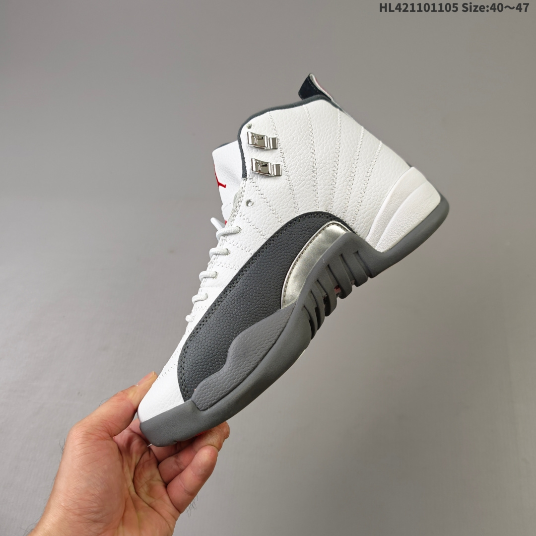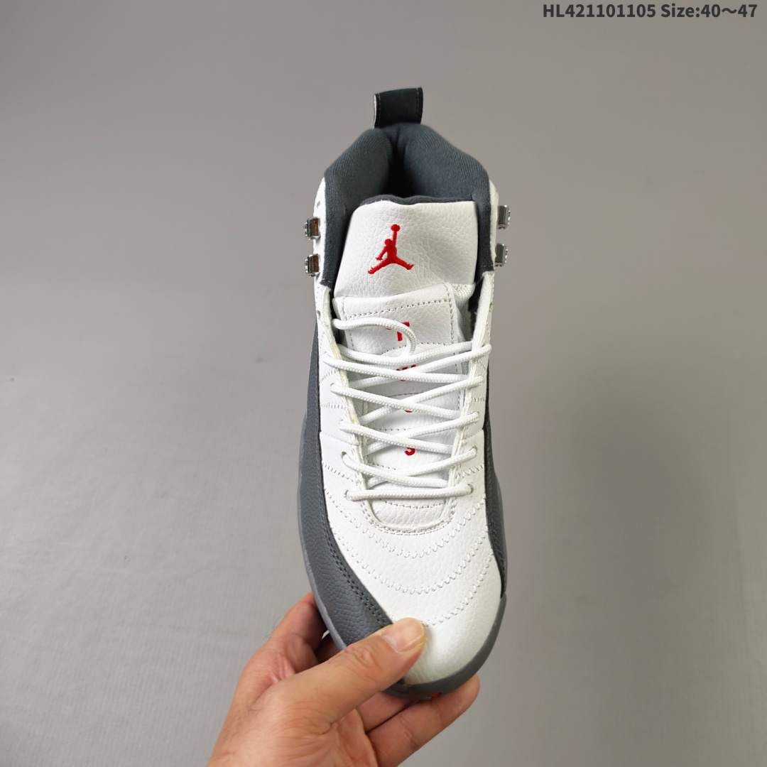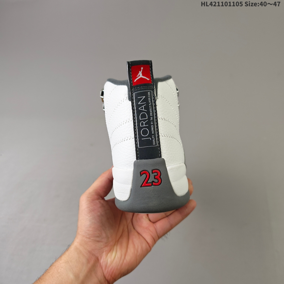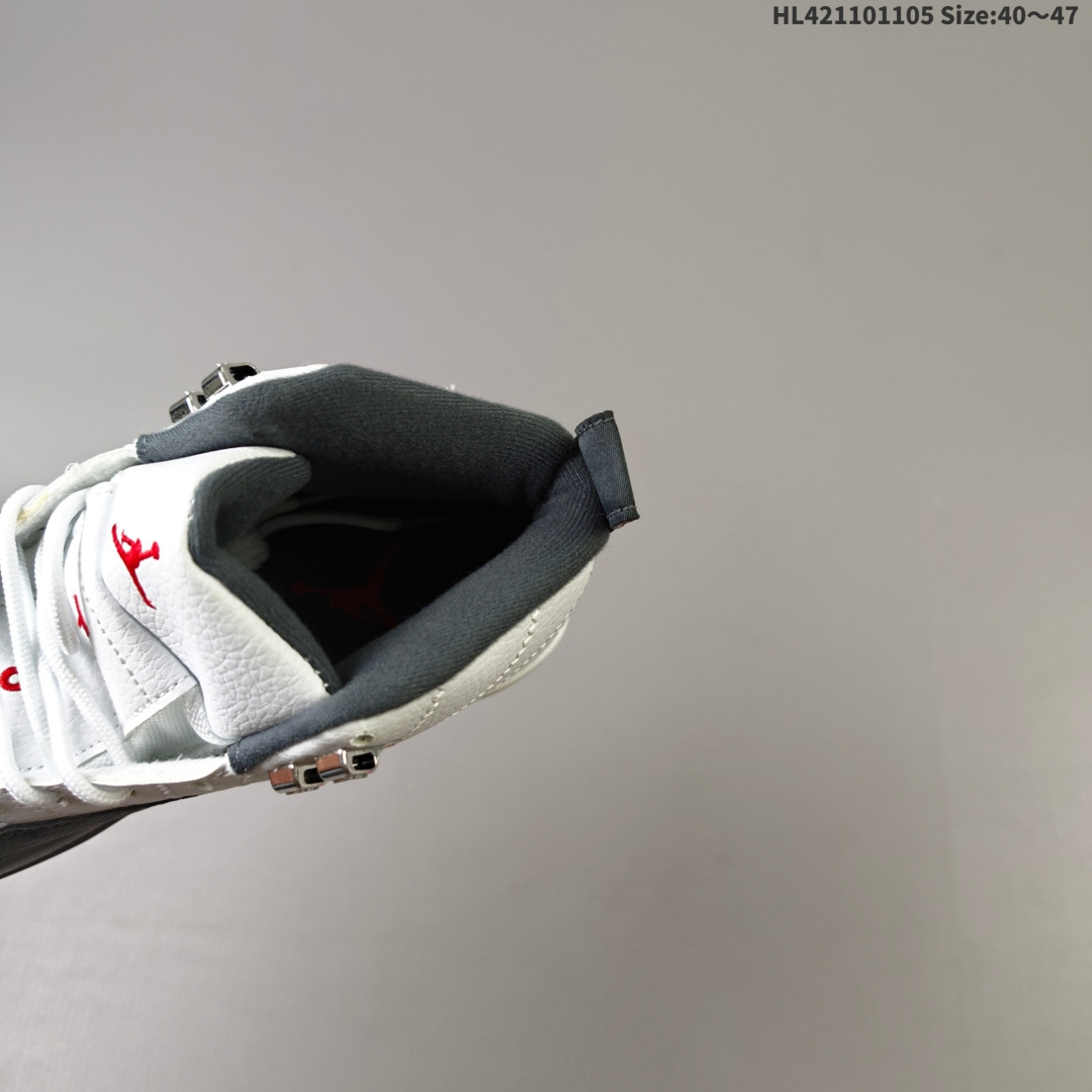 Air Jordan 12 Retro Taxi History 高帮 复刻计程车 AJ12 乔丹12代 aj12 乔12 高邦 复刻白黑 乔丹篮球鞋系列 首次发售于1996年 上次复刻已经是2013年了 在时隔12年之后 将在今年2025下半年再度回归 鞋身整体采用白色皮革打造搭配黑色荔枝纹框架覆盖层 鞋头红色的Jumpman Logo点缀 在白黑主调下格外抢眼 鞋舌饰有黑色色调经典Jumpman Logo刺绣以及TWO3字样 与鞋侧金属金扣相呼应 细节方面非常用心 鞋身中部辅以黑色挡泥板 后跟鞋提红色Jumpmaan Logo和刺绣Jordan字样搭配标志性红色23字样 彰显鞋款身份 辅以Air Zoom气垫和大面积碳板 提供了出色的缓震效果和稳定性