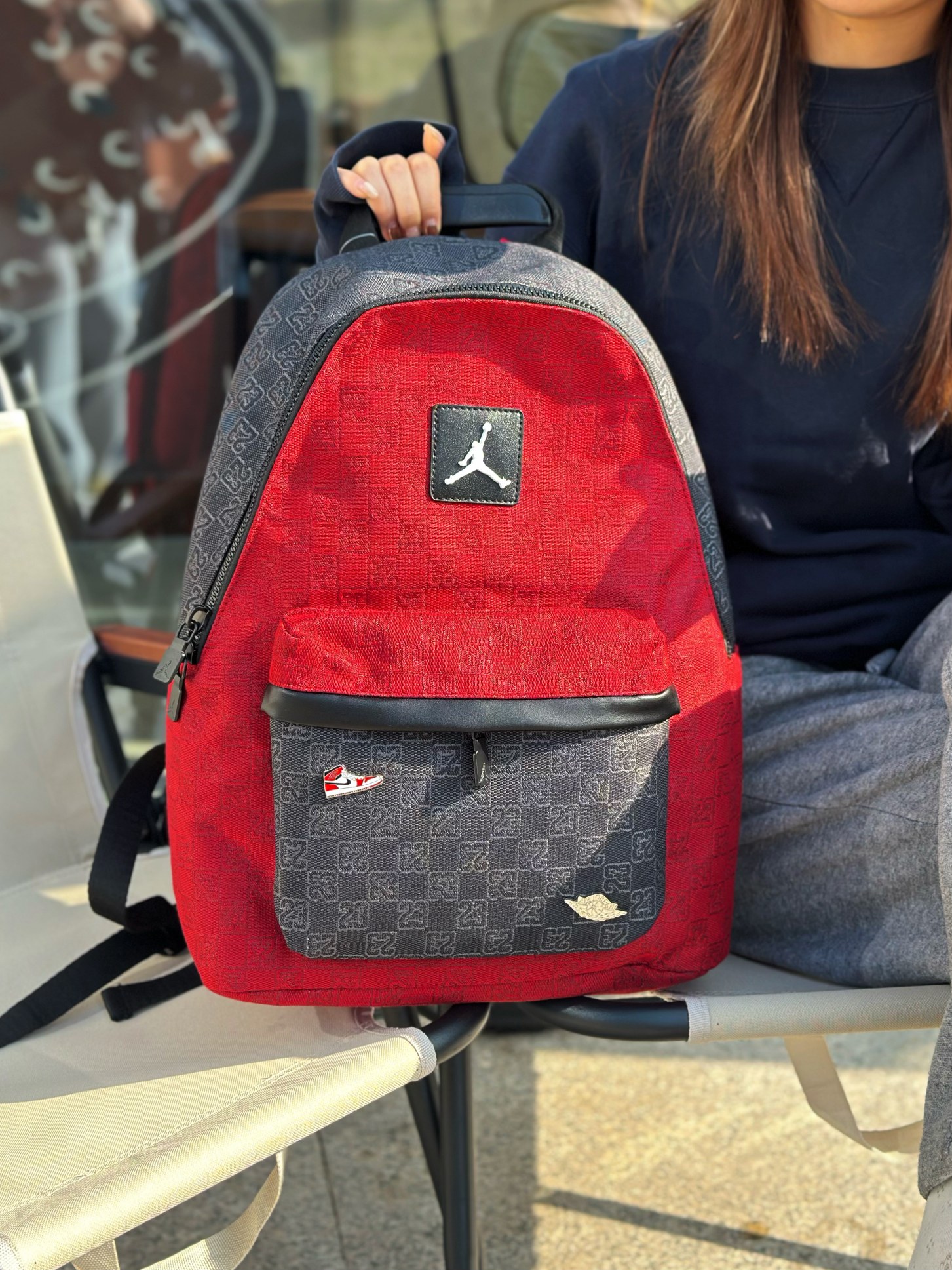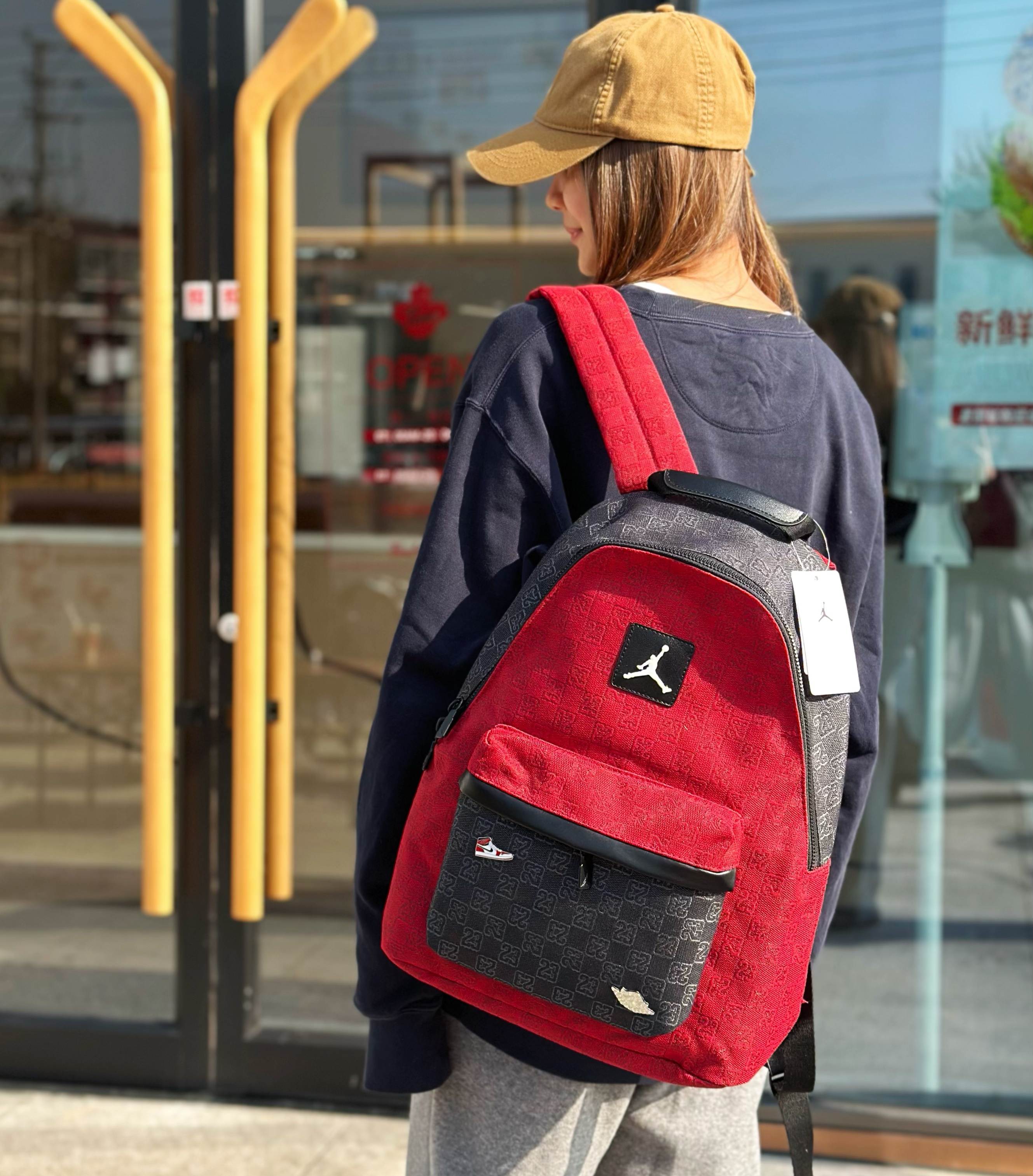 AJ乔丹老花帆布满印双肩包单肩包学生书包男女同款 包包用料厚实 上身也非常好看 绝对好包 拿到手就知道不是小厂能比拟的 细节 五金都非常到位 绝对潮人必备 颜色 暗夜灰 红色 红黑拼色 蓝色 尺寸 353215