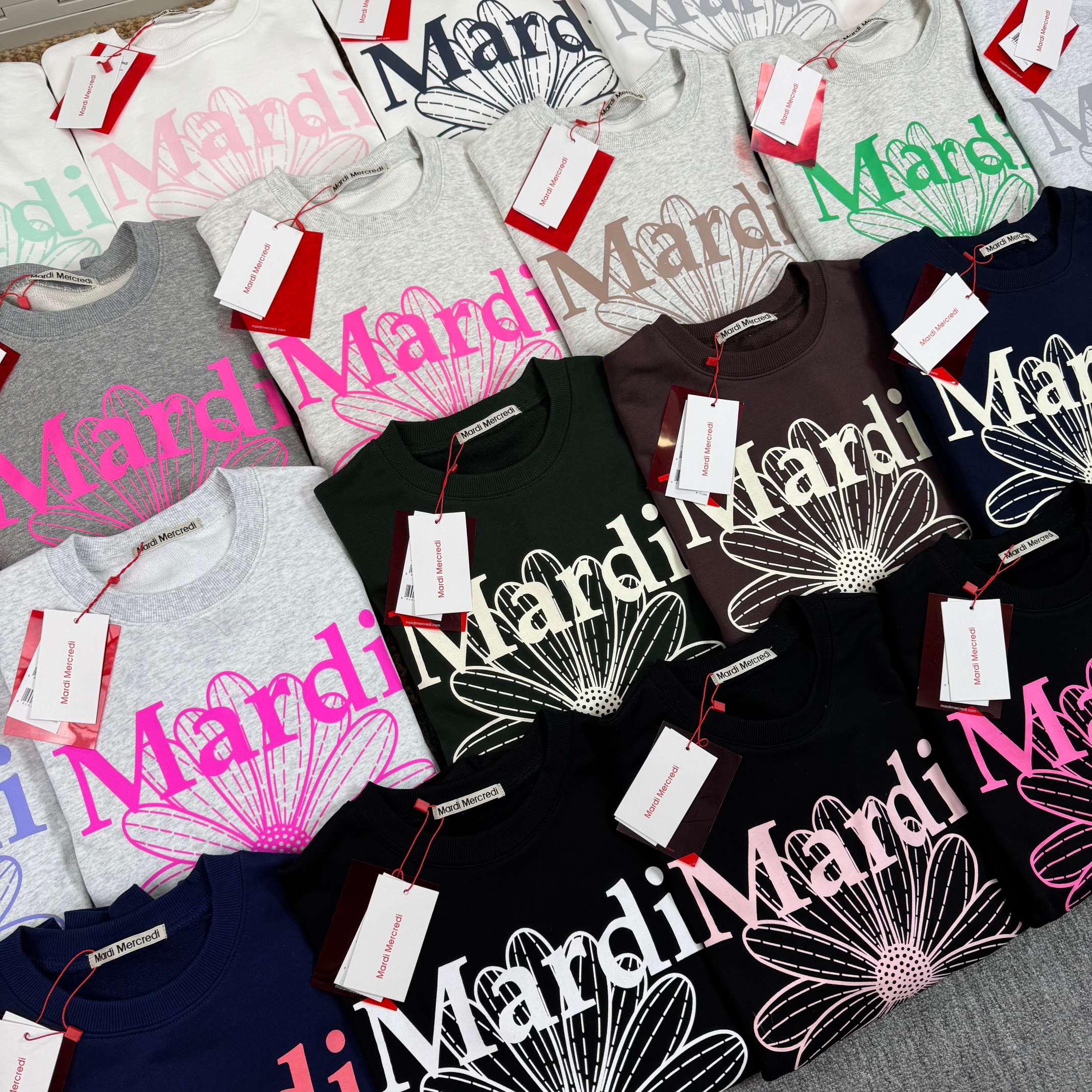 MARDI MERCREDI FW23小雏菊字母印花圆领宽松套头长袖卫衣 男女同款