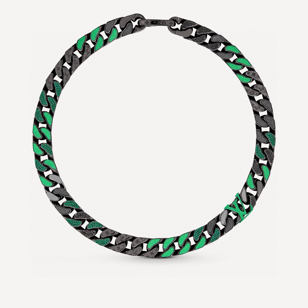 LV路易威登 古巴绿项链 顶级版本 吊打通货 CHAIN LINKS PATCHES 古巴绿彩色钻项链 48 5cm Chain Links Patches 手链以匠心重塑经典 将 Virgil Abloh 赋予 2020 春夏秀场的风华延续至珠宝设计 施华洛世奇人造钻石与润泽珐琅演绎繁复材质的交融 绽放斑斓色彩 另点缀错落有致的 Monogram 镂纹 诉说路易威登的潮流宣言