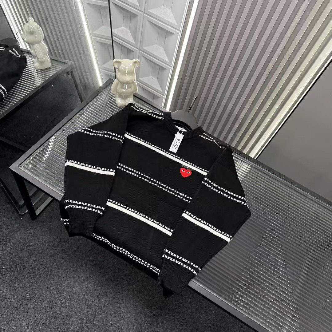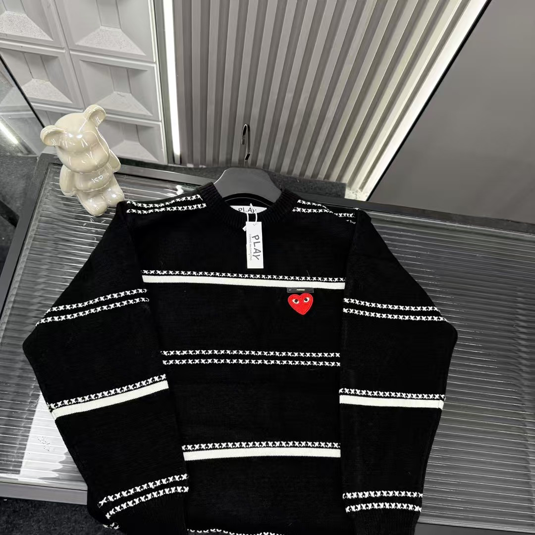 秋冬爆款热销款推荐川久保玲针织毛衣 条纹拼接式胸前爱心图案 三标齐全官网一致 放大看细节原相机实物拍摄 颜色 黑色 尺码 L 4xl L 80 105斤 XL 105 120斤 2XL 120 140斤 3XL 140 160斤 4XL 160 180斤