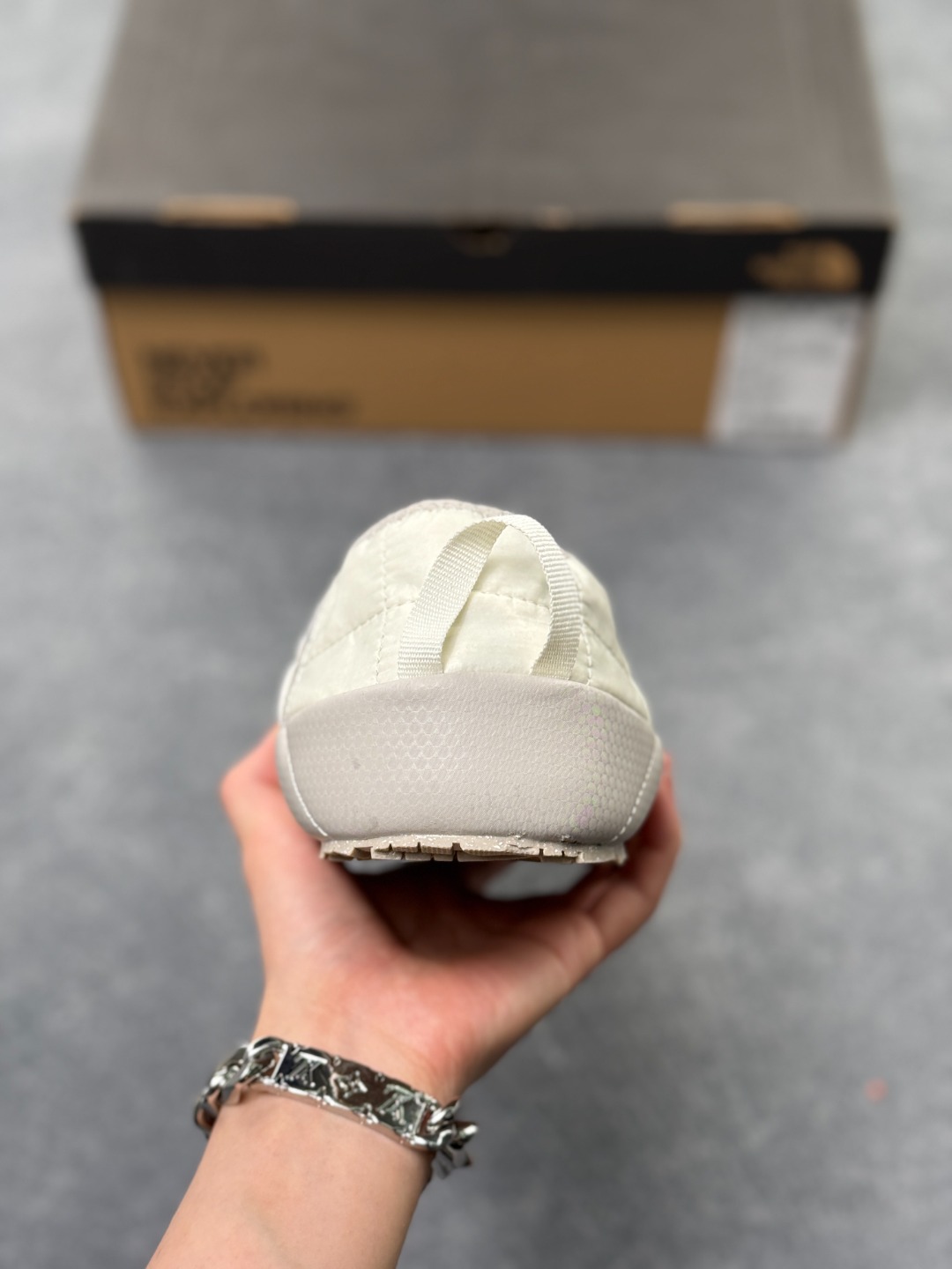 一脚蹬鞋口带滚边收口和弹力接片设计