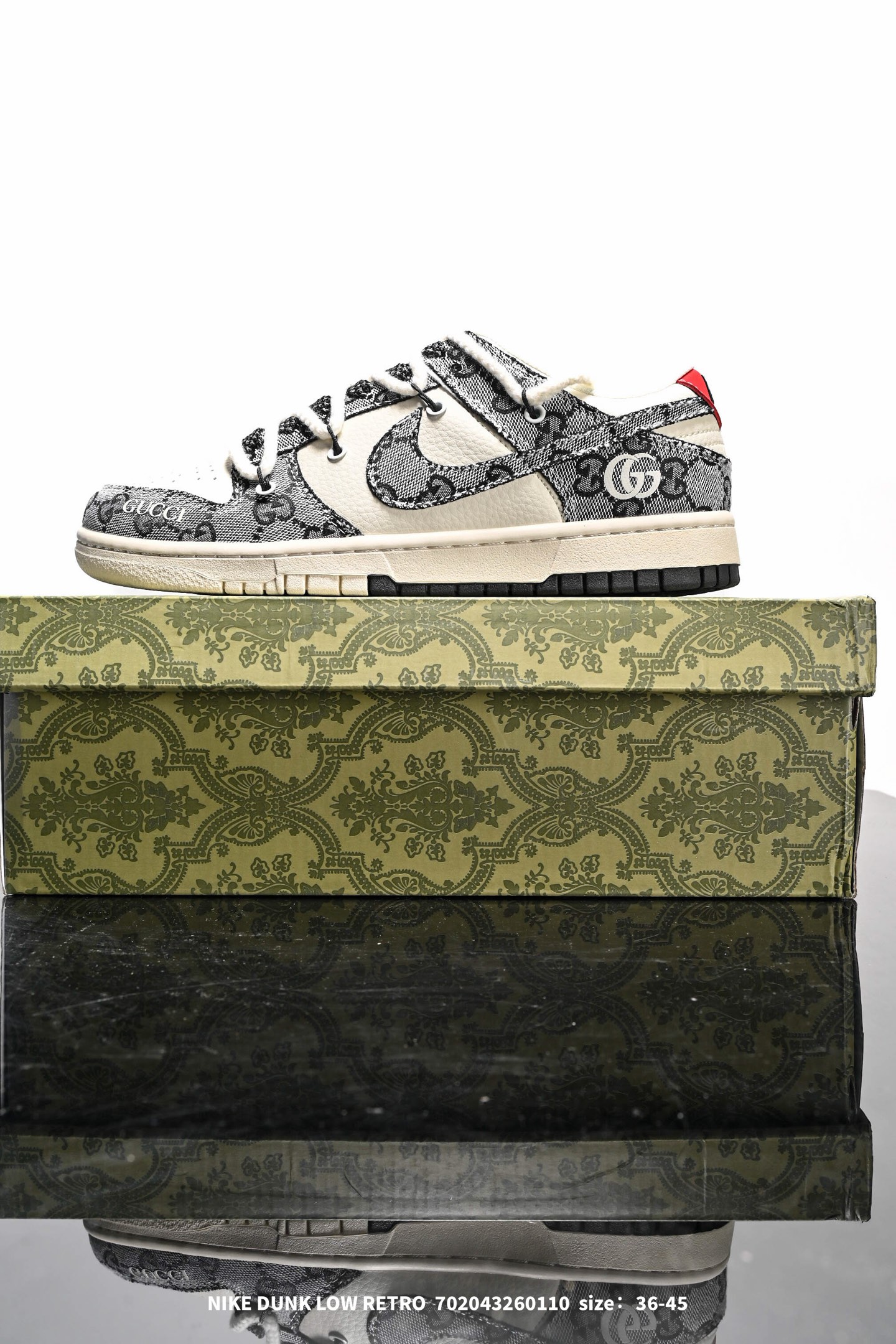 公司级 耐克 Nike Dunk Low Retro 运动鞋复古板鞋 解构绑带 双鞋带 GUCCI 联名 作为 80 年代经典篮球鞋款 起初专为硬木球场打造 后来成为席卷街头的时尚标杆 现以经典细节和复古篮球风范再次归来 皮革与合成材质组合鞋面 经久耐穿 柔软非凡 泡绵中底 缔造轻盈回弹的缓震效果 橡胶外底搭配圆形支点设计 铸就非凡抓地力 尽显经典风范 从篮板到滑板 Nike Dunk 的影响力毋庸置疑 尽管 1985 年以篮球鞋形式亮相 但其平整而具有抓附力的鞋底闯入了滑板运动员的视野 堪称滑板鞋的理想之选 几十年来 Dunk 不断直击全球各地滑板手的灵魂 推出不计其数的配色方案 追求创造力和功能性兼得的理想境界 彰显亚文化风采