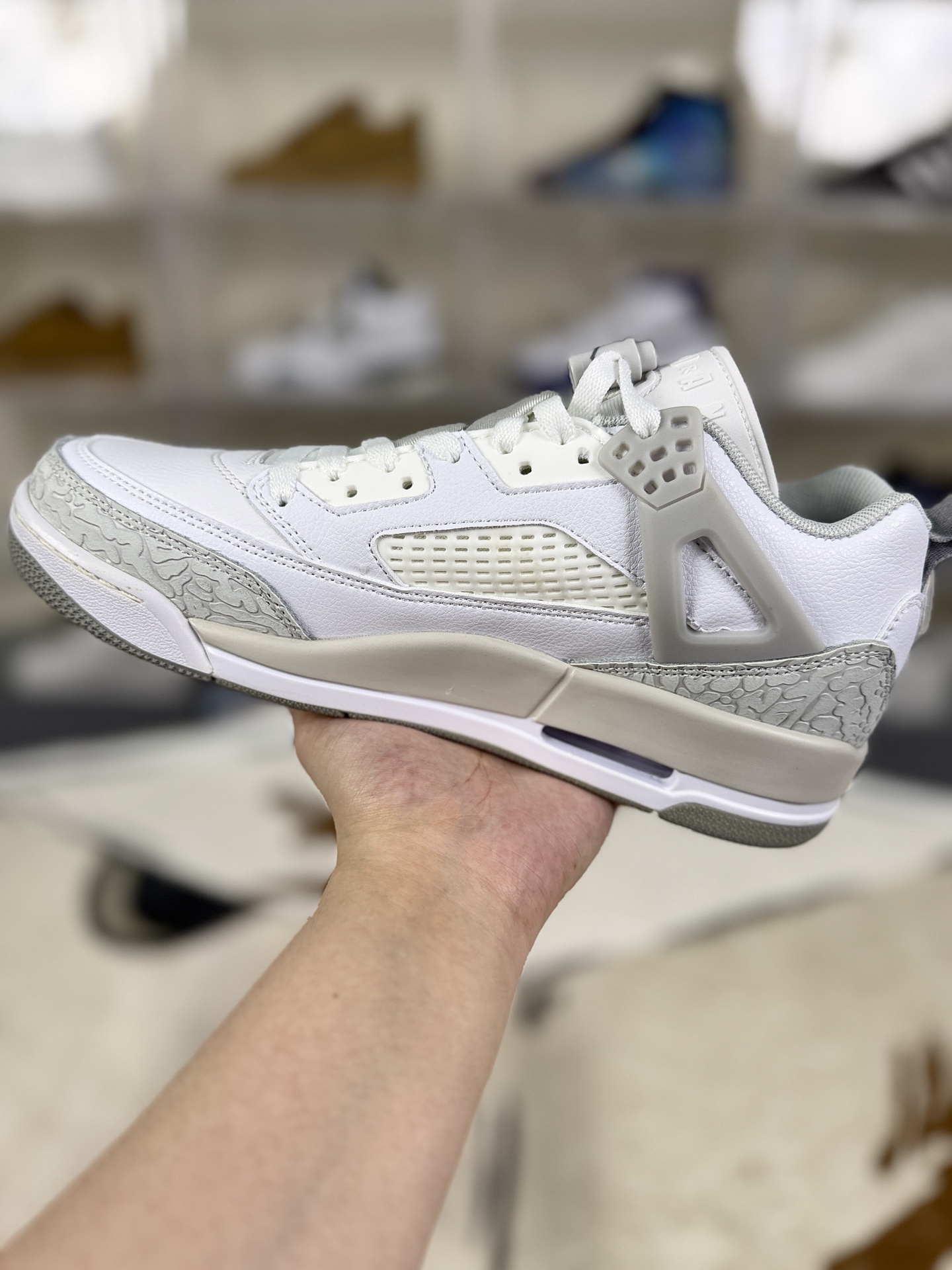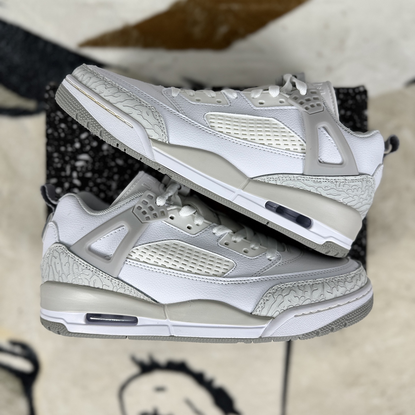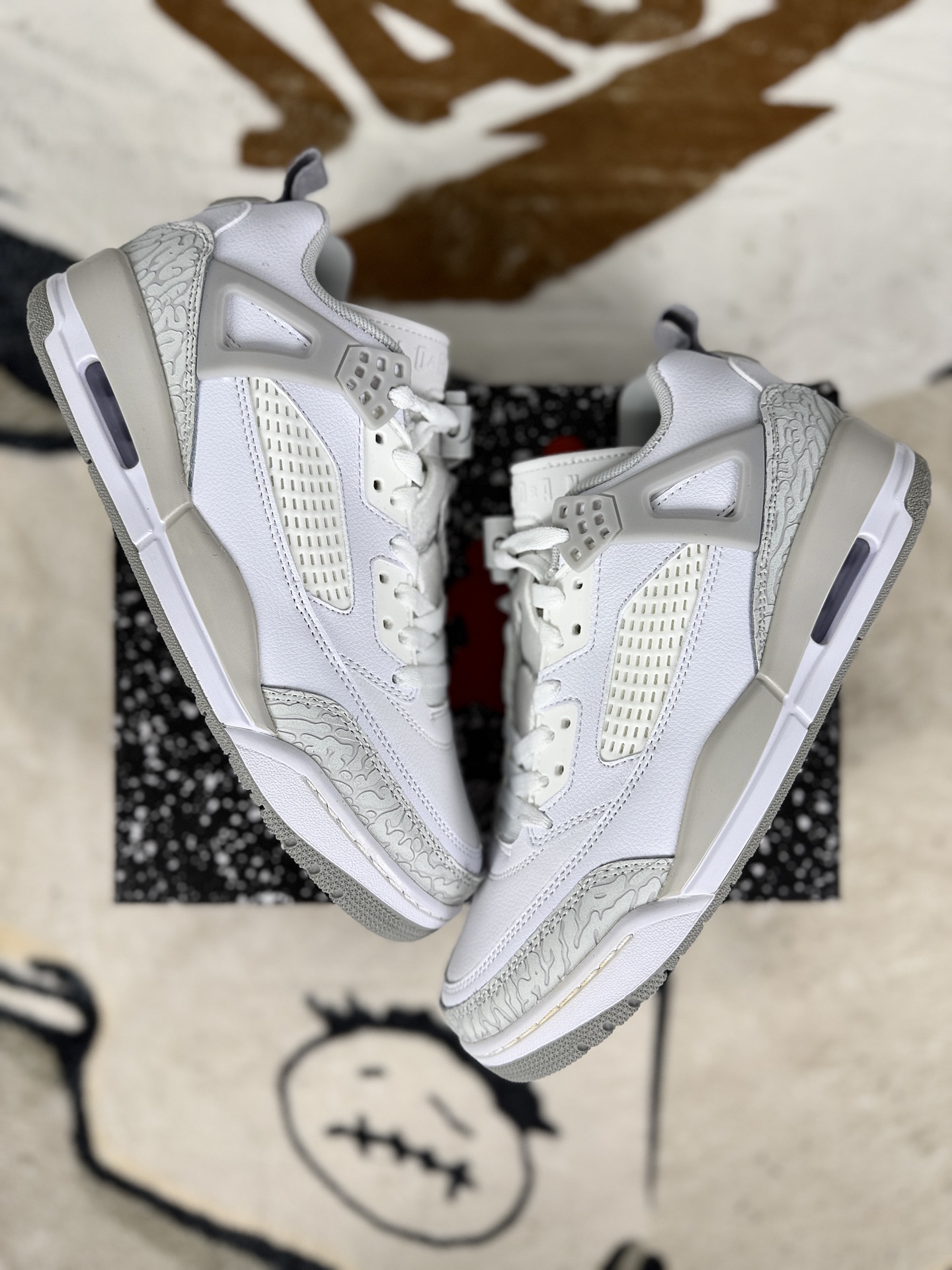 Jordan Spizike是Jordan Brand与著名黑人导演斯派克 李 Spike Lee 合作推出的经典鞋款 设计上融合了多款Air Jordan正代鞋款的元素 兼具时尚感与功能性 采用多种材质拼接 如皮革 网格面料等 既保证了质感又兼顾透气性 标志性爆裂纹元素源自Air Jordan III 增添经典辨识度 鞋带孔设计融合Air Jordan IV的三角形脚踝支撑与Air Jordan V的松解装置 细节丰富 低帮设计适合日常穿搭 兼顾灵活性与舒适性 后跟处保留Air Jordan V的脚踝拉伸带 提供稳定支撑 鞋舌设计借鉴Air Jordan VI 部分款式采用特殊材质或装饰 中底采用Phylon材质搭配后掌可视化Air Sole气垫 缓震性能出色 大底多为几何形纹路橡胶材质 耐磨且抓地力强 部分款式延续Air Jordan III的大底造型 Jordan Spizike通过巧妙融合经典元素 打造出既适合运动又适合日常穿着的鞋款 成为Jordan Brand的经典之作