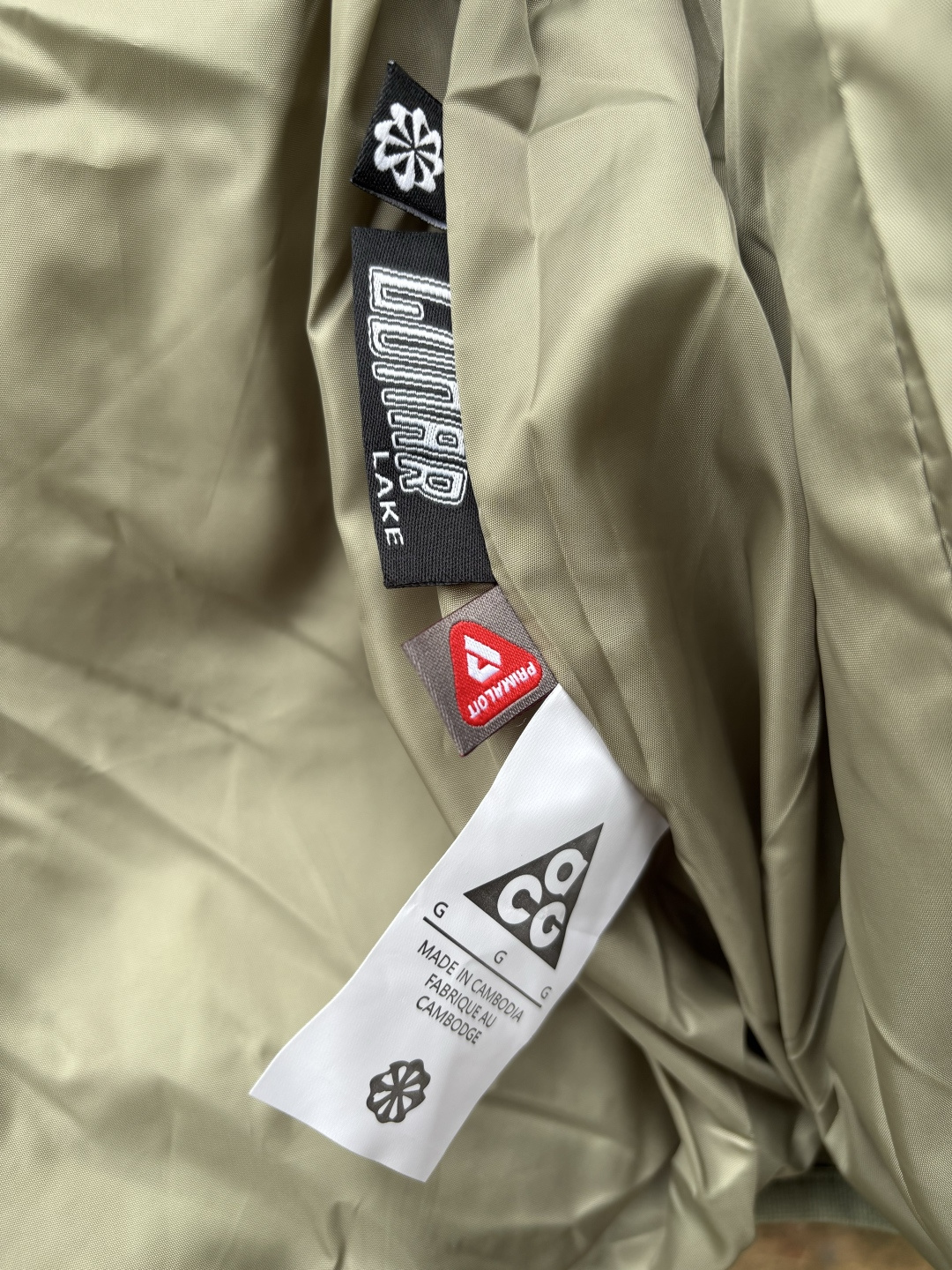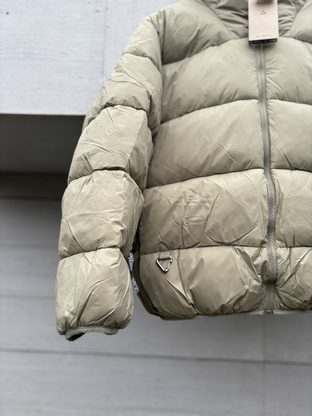 辅料 原版购入开发 原版一比一定制的小标 领标 水洗 吊牌 拉链 五金等 两侧拉链口袋 一侧拉头上带有𝗔𝗖𝗚标识的小地球挂饰 一侧还有𝗔𝗖𝗚标识的金属三角挂钩 完全还原原版 细节才能彰显品质