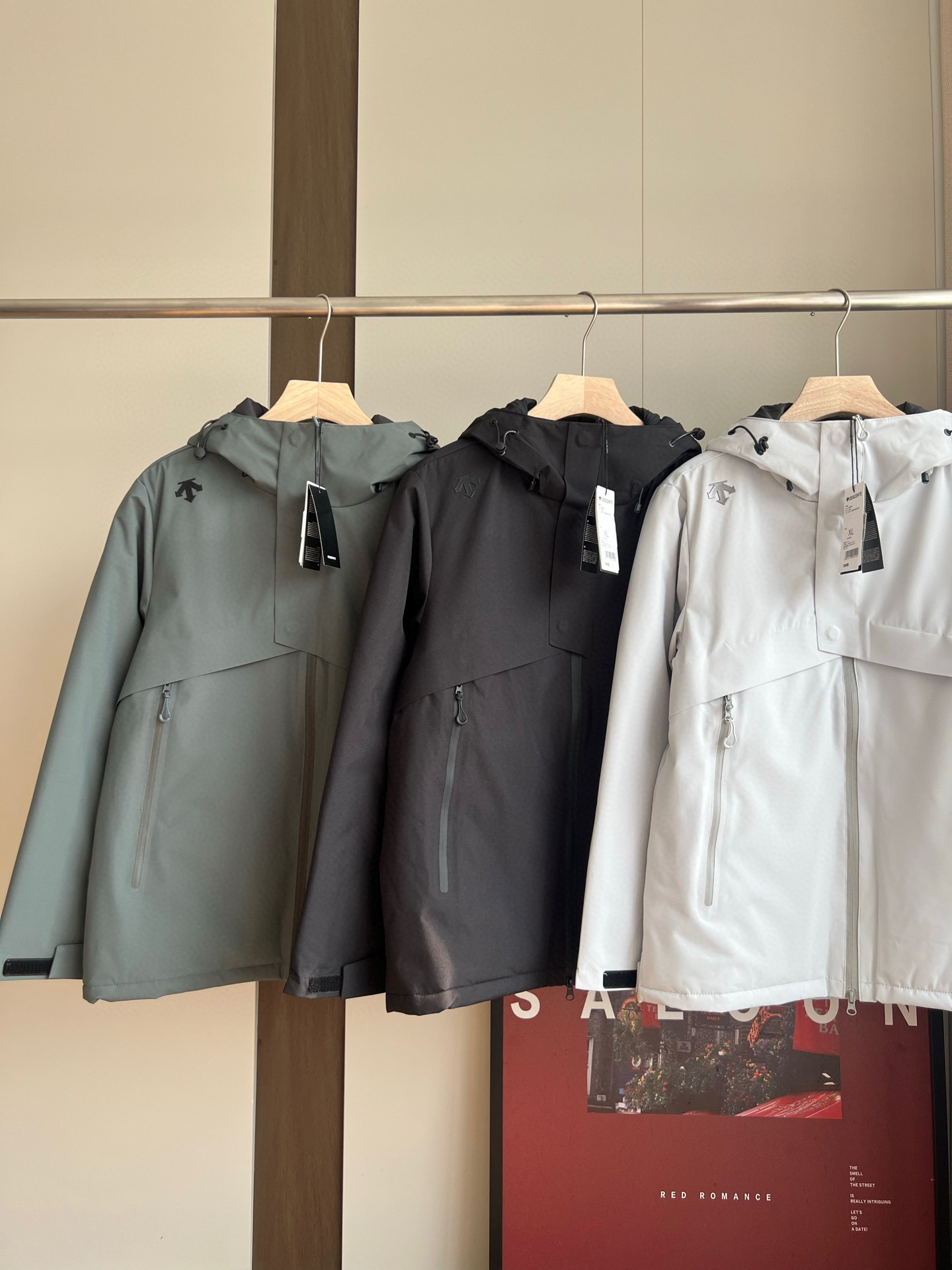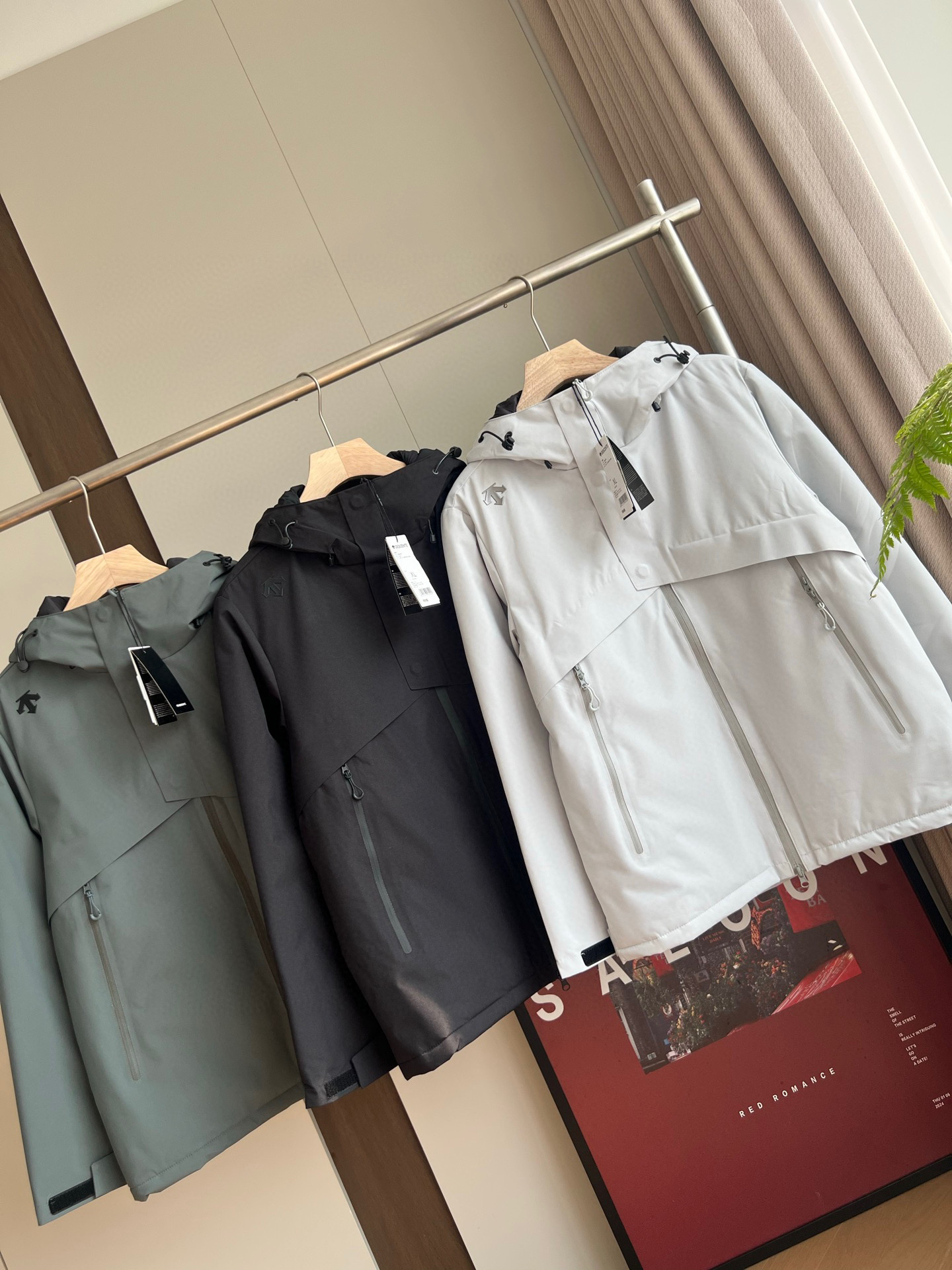 连帽设计 磁吸式防风门襟 上下头拉链 方便穿脱 袖口半松紧魔术贴 轻松调节