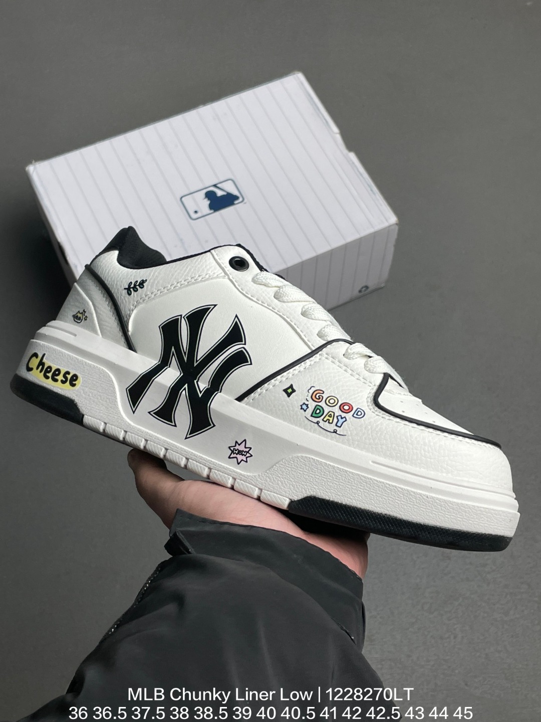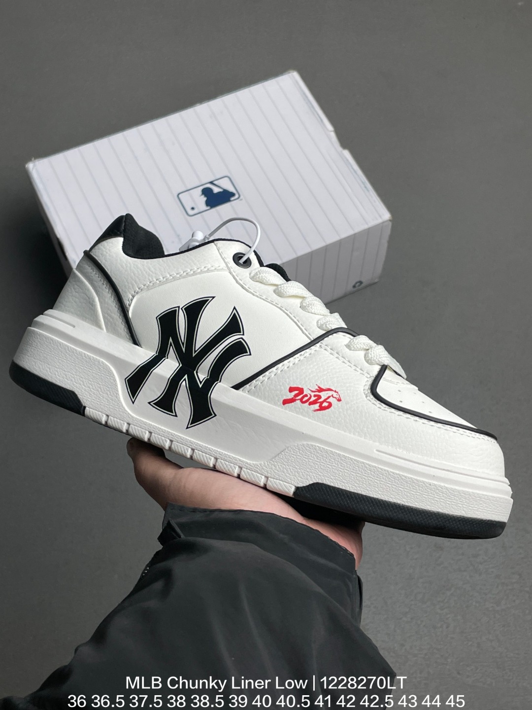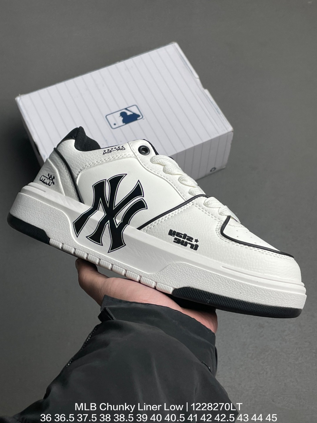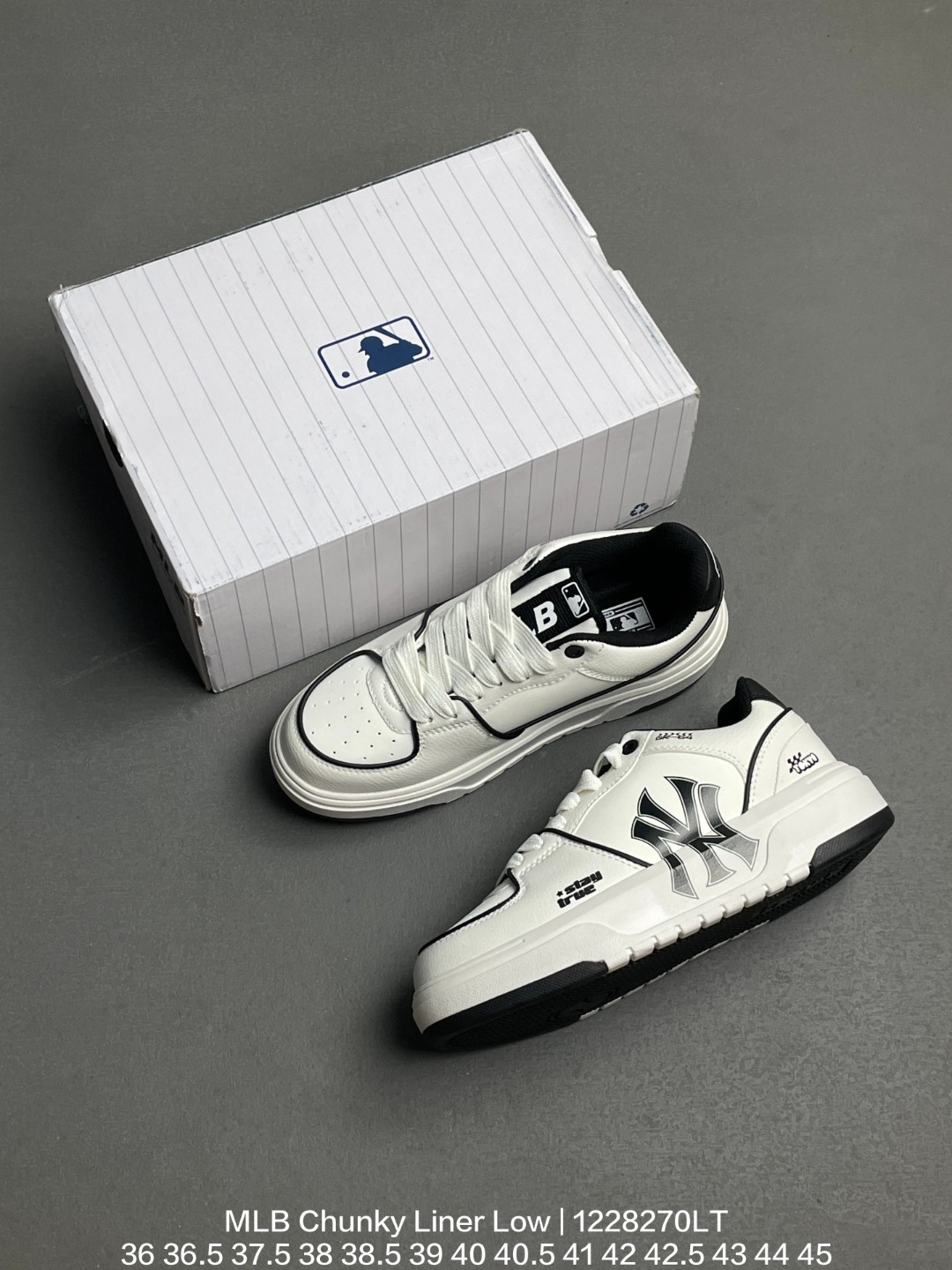 MLB 韩国F F旗下运动品牌 采用厚实粒面牛剖革组合厚实纤维革鞋面材质 高密度5cm厘米外增高轻质发泡中底组合耐磨橡胶外底片学院穿搭爆款 Korea韩国限定 联乘美国榄球洋基队New York Yankees x MLB Chunky Liner Low 学长鞋系列低帮老爹风轻量增高厚底百搭休闲运动板鞋