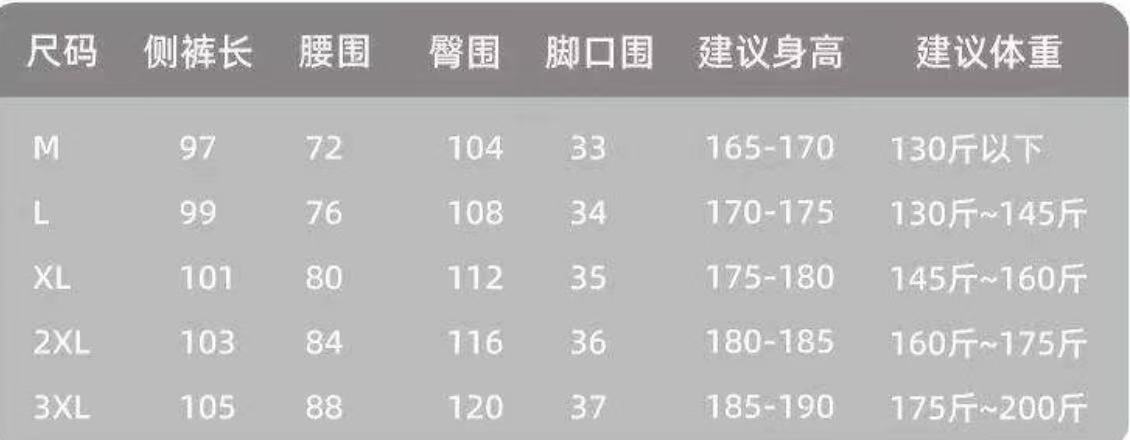尺码 M 3XL