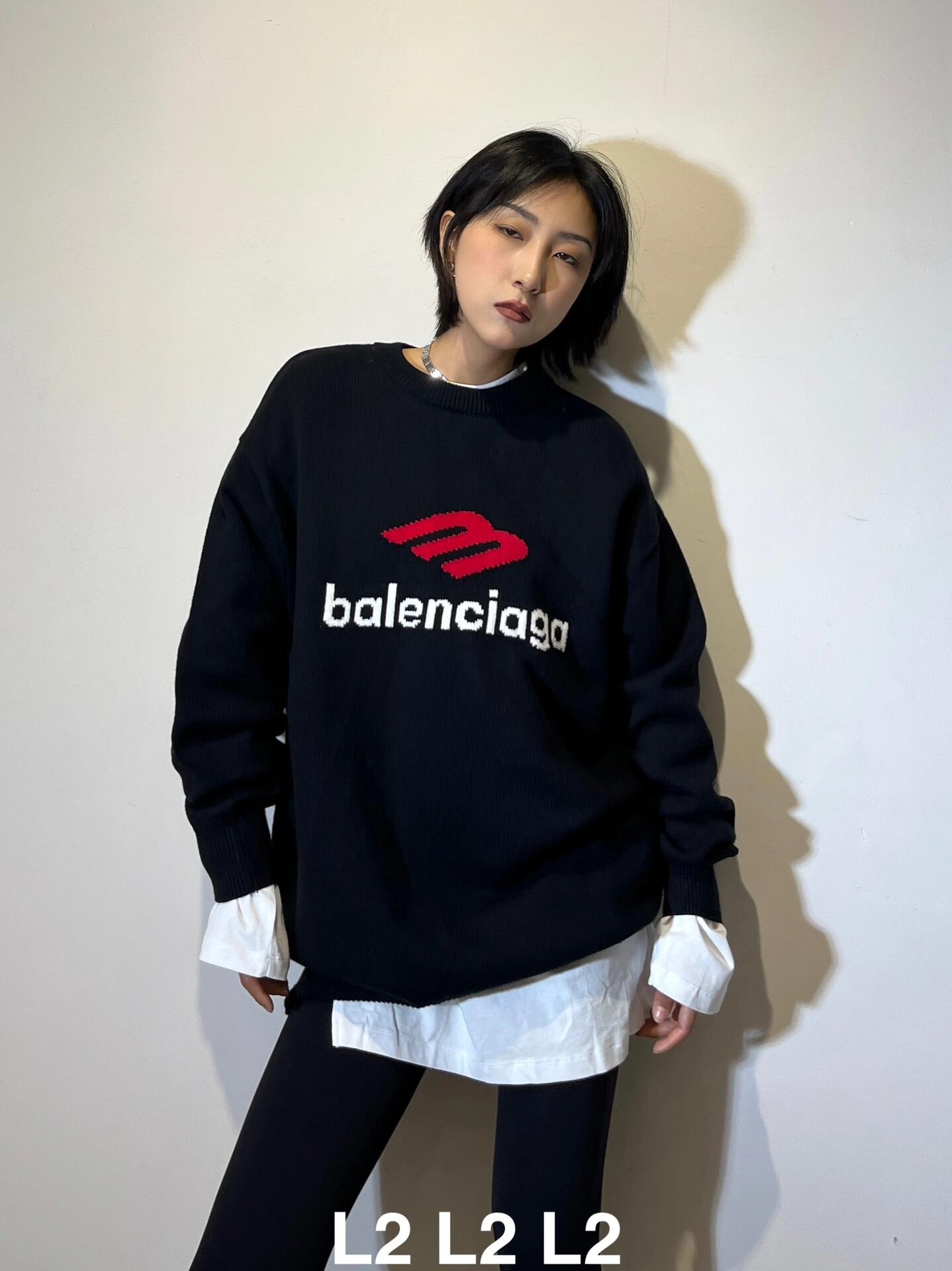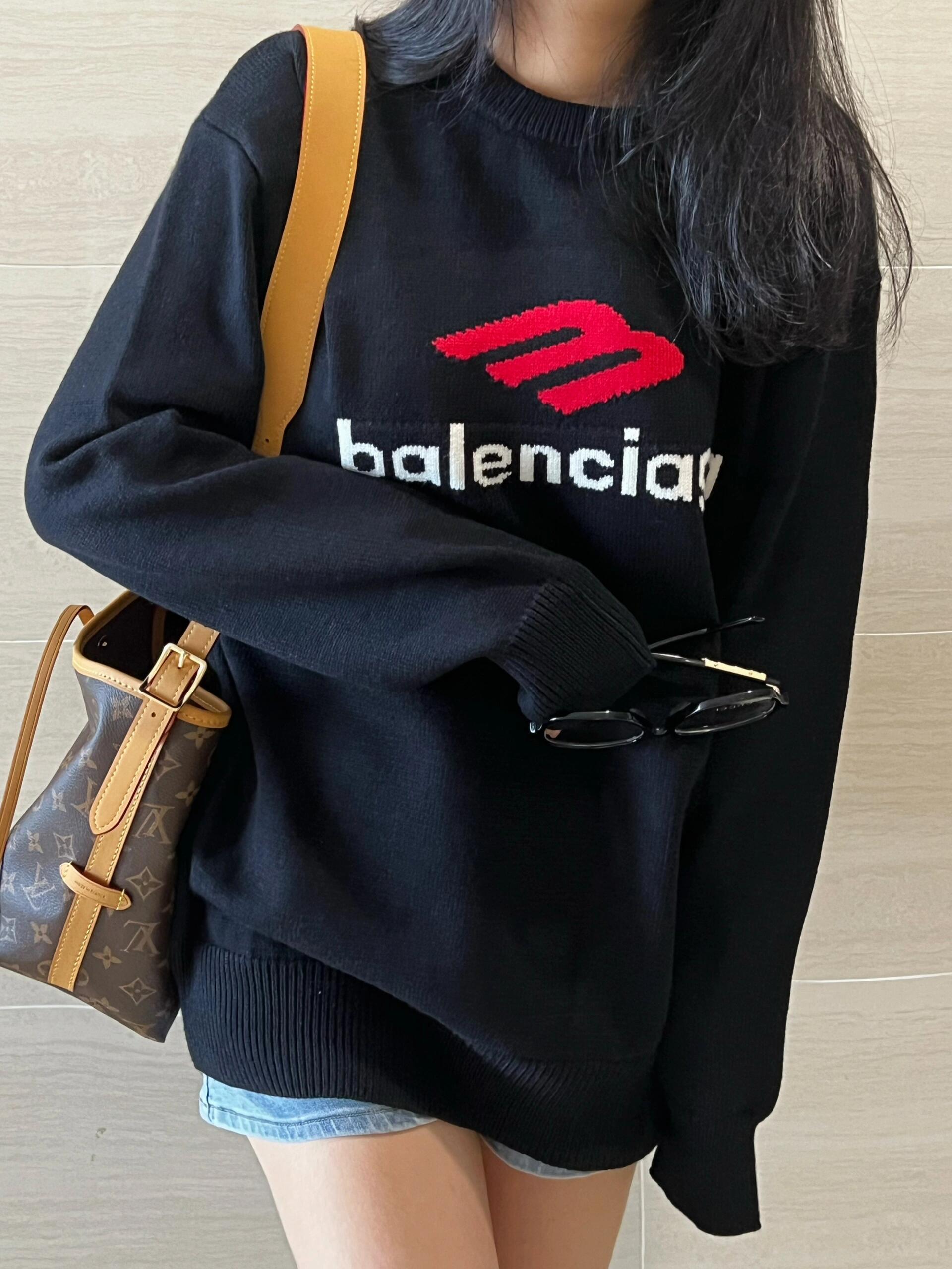 BALENCIAGA FW23巴黎世家前后刺绣logo圆领套头毛衣 滑雪毛衣