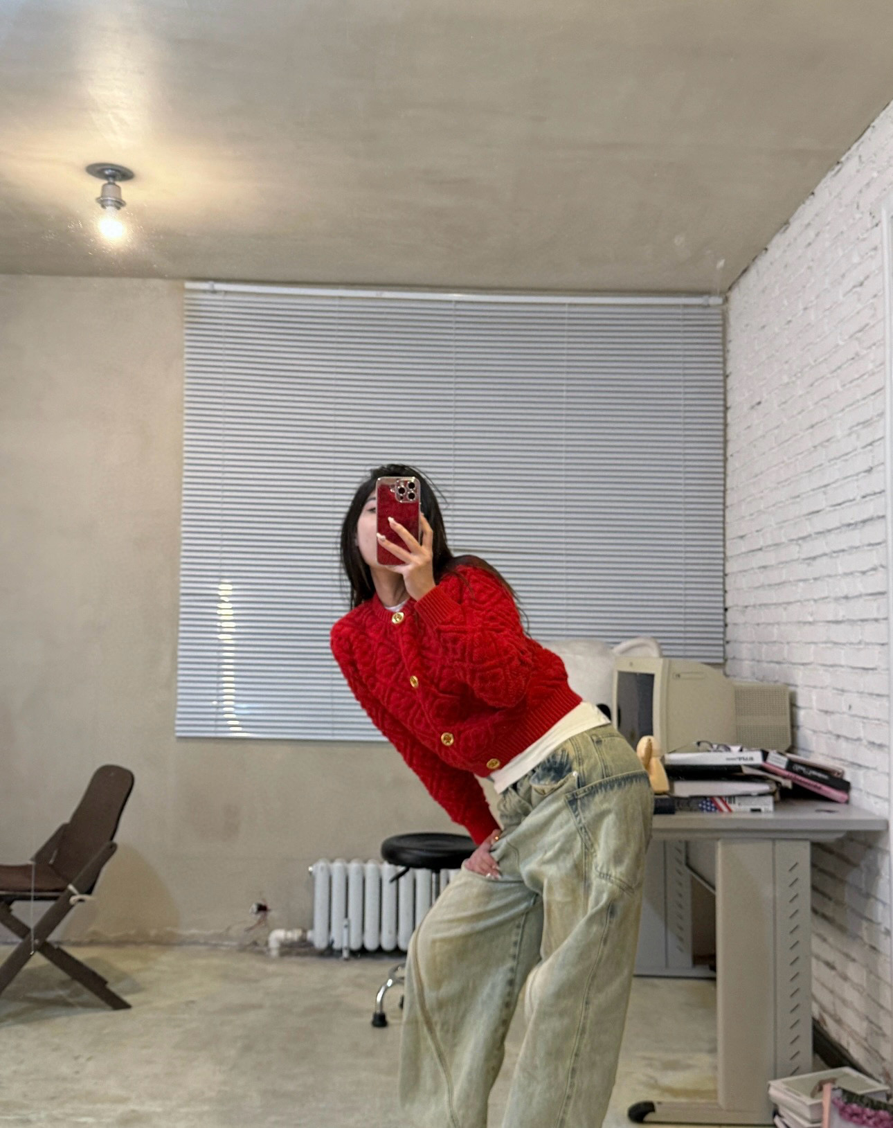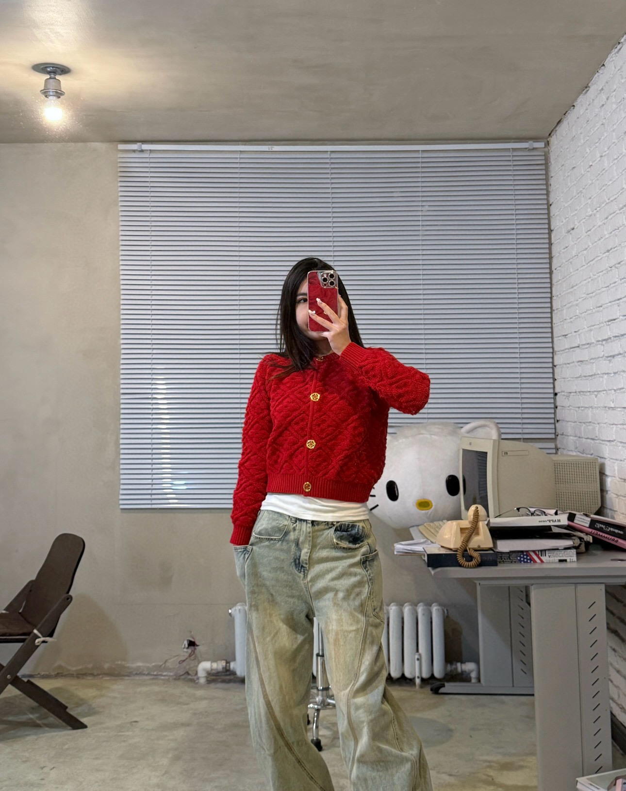Louis Vuitton LV 驴家菱格四叶草立体提花定制金扣圆领长袖针织开衫毛衣