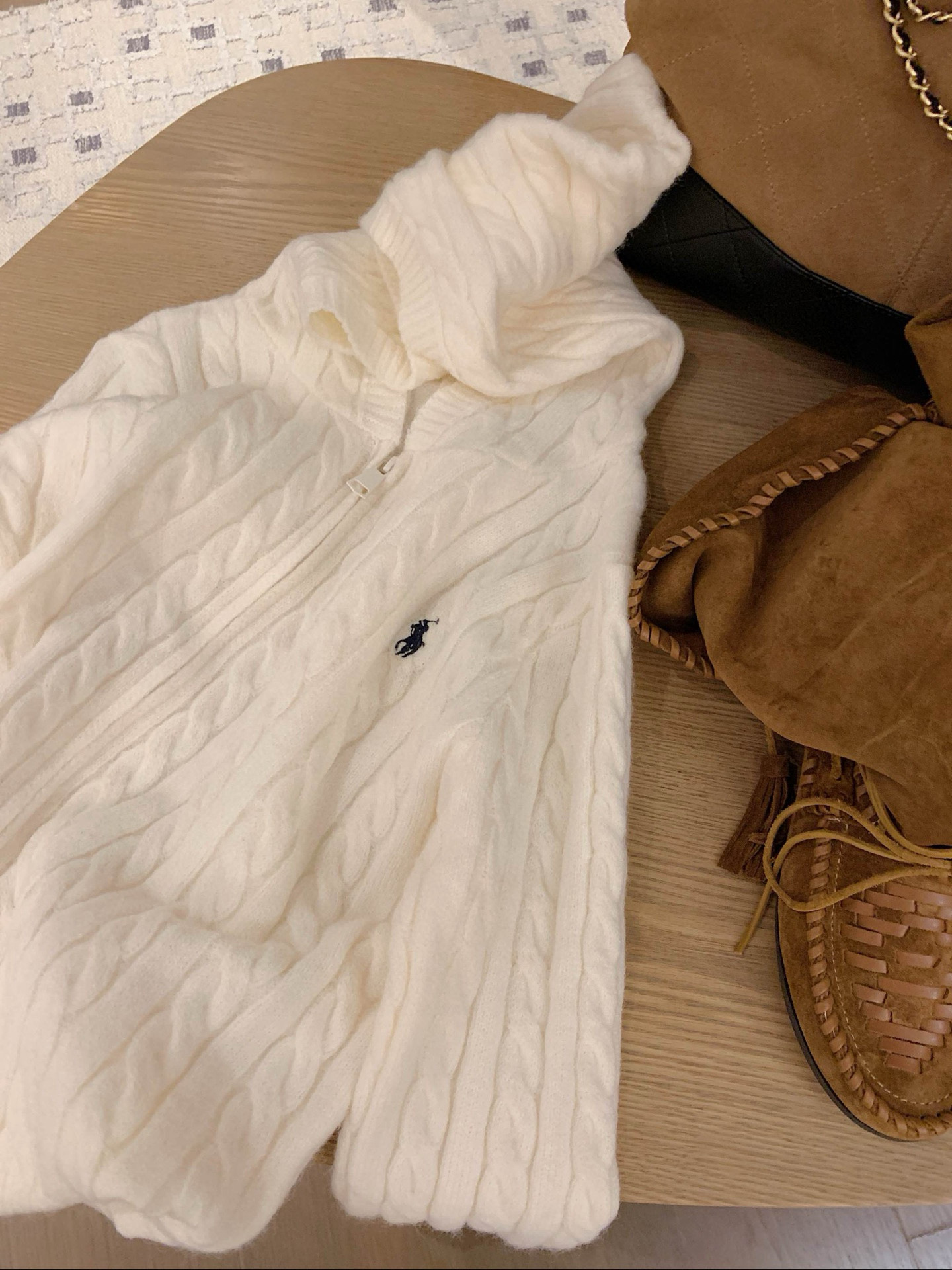 Ralph Lauren 拉夫劳伦RL小马刺绣麻花连帽长袖拉链针织开衫毛衣