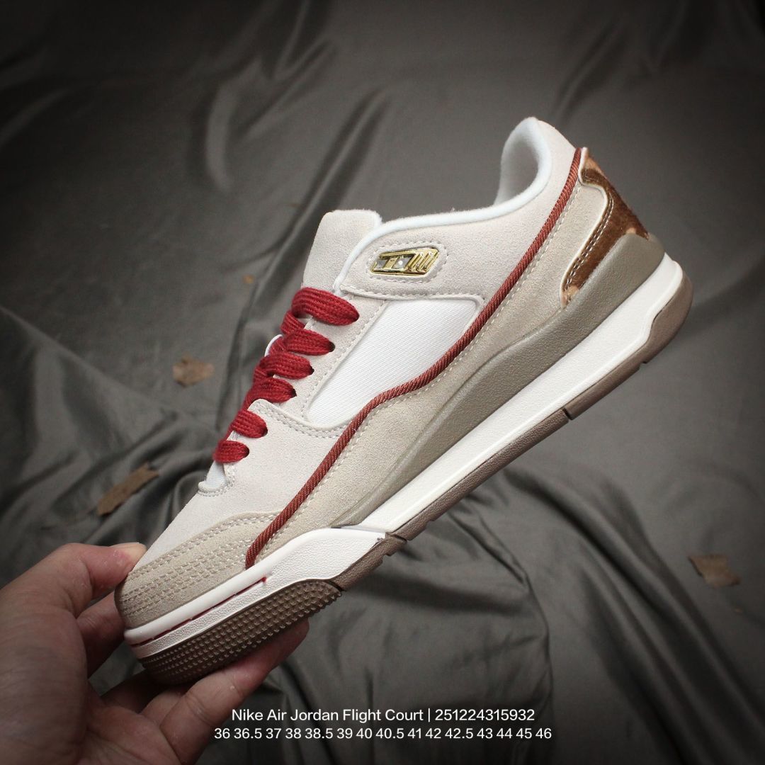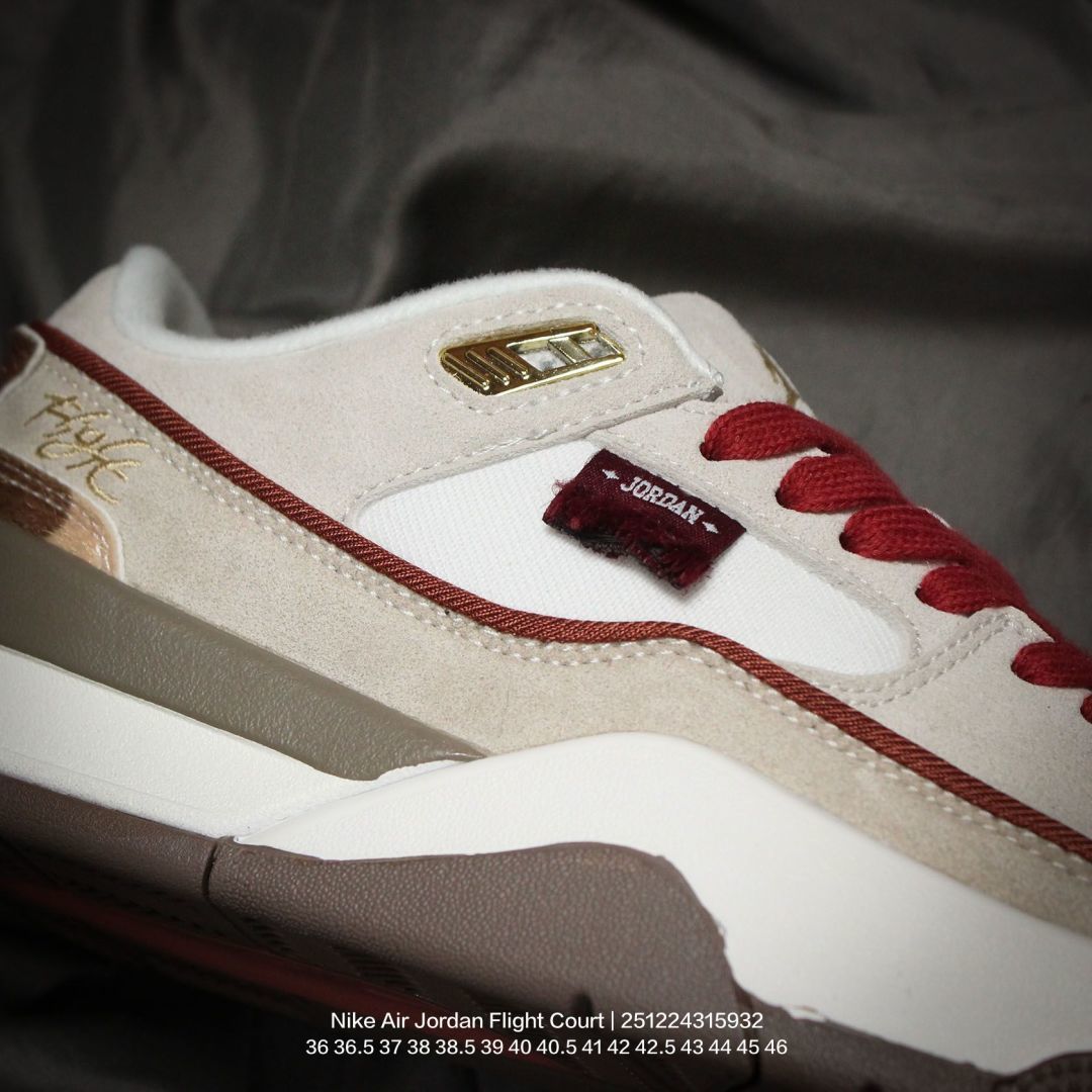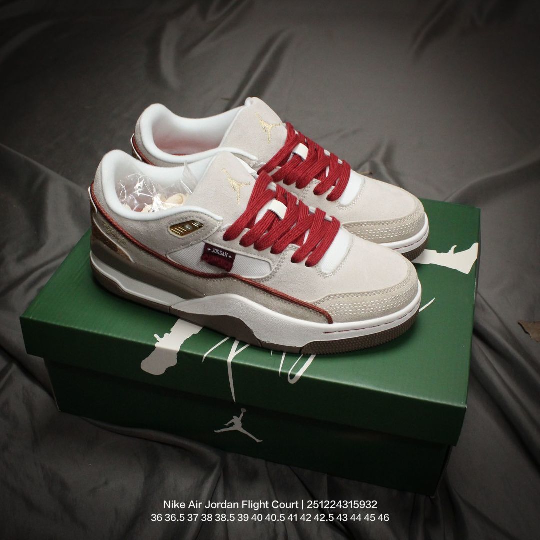 Jordan 乔丹 男女鞋真标半码制 升级原楦原纸版数据开发版型 采用翻毛皮组合荔枝纹牛剖革鞋面材质 缜密定位拉帮及注胶效果 中底PU缓震组合防滑耐磨橡胶外底简约 但有点吸睛 耐克Nike Air Jordan Flight Court Anthracite Sail 飞行网球场系列低帮复古休闲运动文化网球板鞋鞋