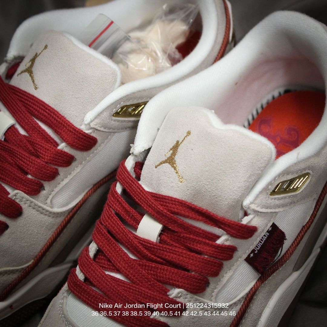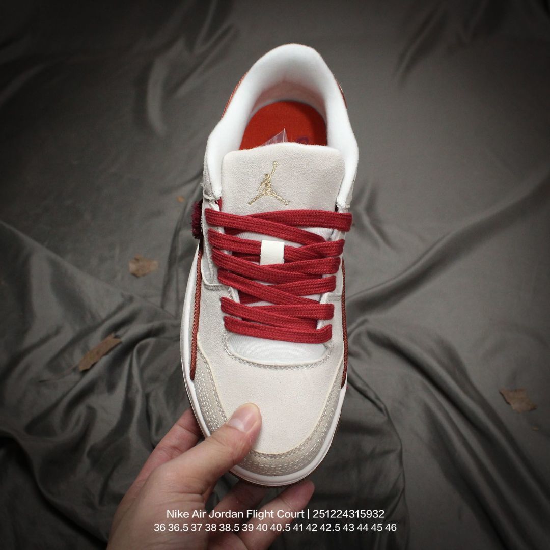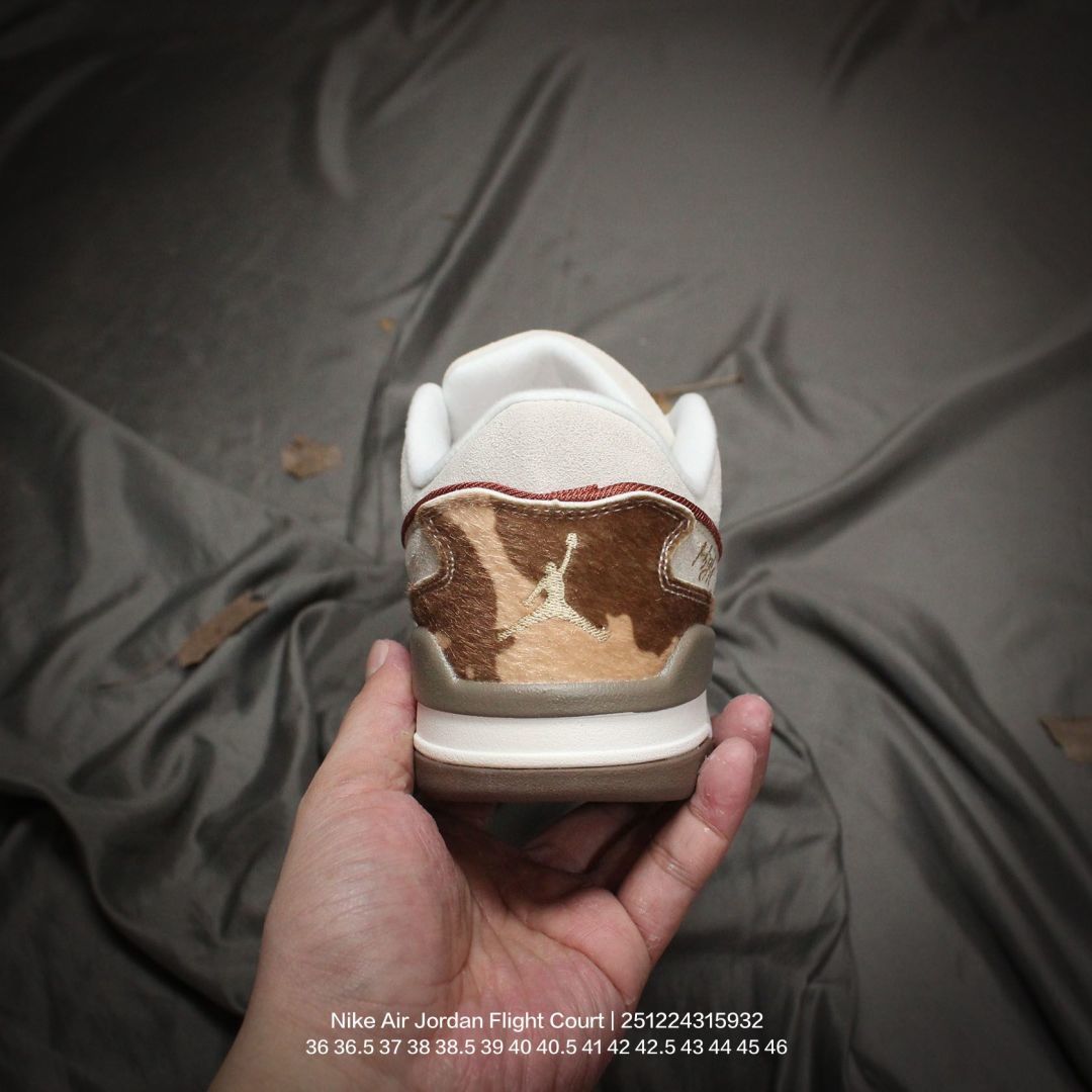 Jordan 乔丹 男女鞋真标半码制 升级原楦原纸版数据开发版型 采用翻毛皮组合荔枝纹牛剖革鞋面材质 缜密定位拉帮及注胶效果 中底PU缓震组合防滑耐磨橡胶外底简约 但有点吸睛 耐克Nike Air Jordan Flight Court Anthracite Sail 飞行网球场系列低帮复古休闲运动文化网球板鞋鞋