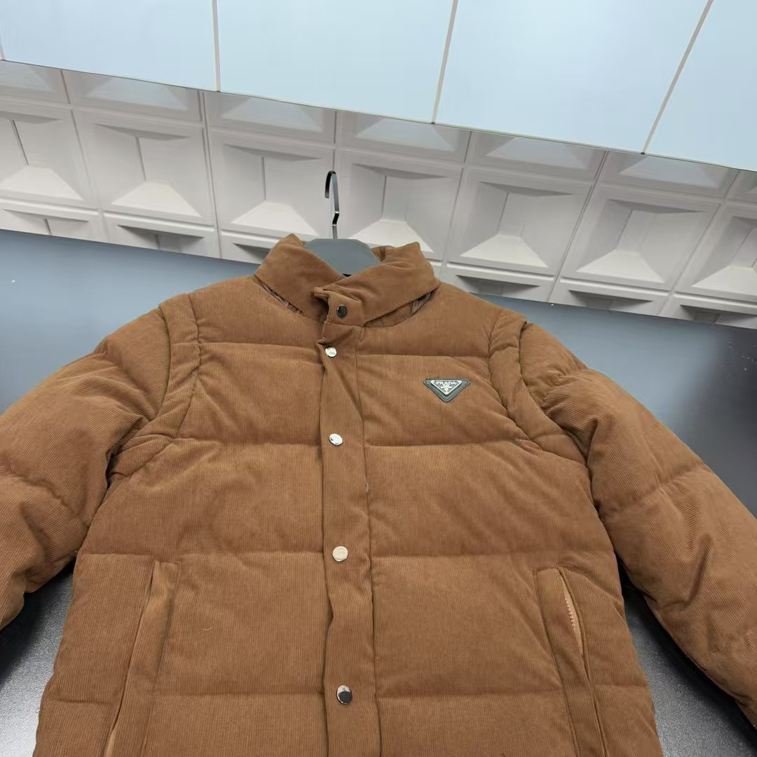 秋冬爆款热销款推荐普拉达立领羽绒棉服 二合一拆卸袖 胸前金属三角牌 三标齐全官网一致 放大看细节原相机实物拍摄 颜色 棕色 尺码 L 4xl L 80 105斤 XL 105 120斤 2XL 120 140斤 3XL 140 160斤 4XL 160 180斤