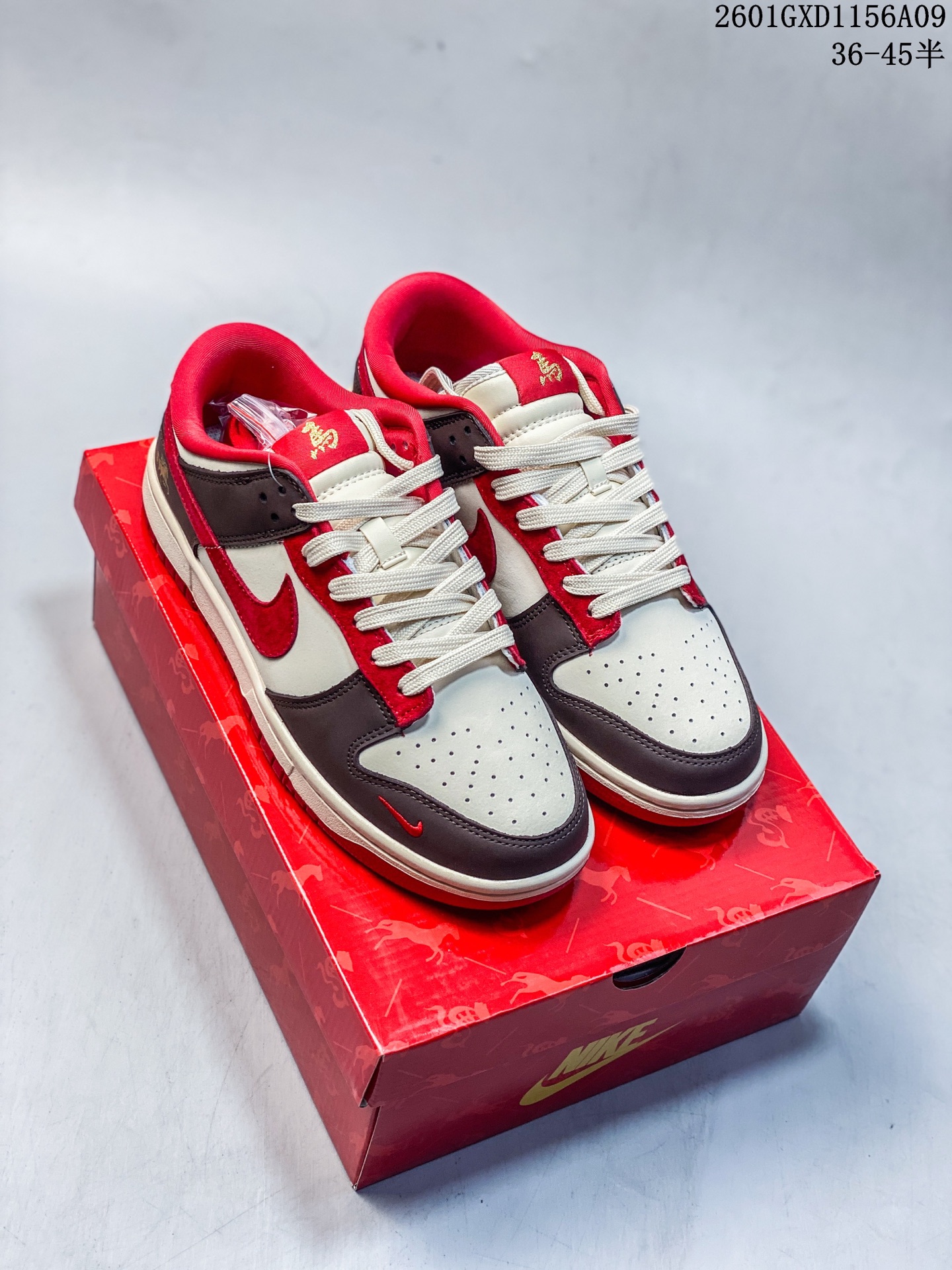 Nike SB Dunk Low 马年限定款 白咖啡红 高端定制 低帮休闲板鞋 定制鞋盒 Ortholite鞋垫透气防臭 大厂纯原品质出货 超高清洁度 皮料切割干净无任何毛边 细节完美