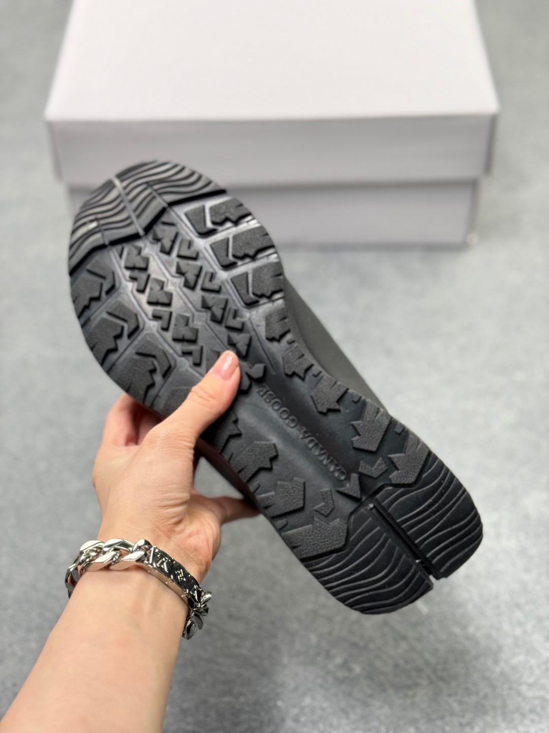 公司级男女鞋原楦开发纸版楦型 采用防水耐磨纤维革组合采用固色翻毛皮与头层皮饰片鞋面材质 中底增高加厚缓震PU组合防滑耐磨锯齿大底秋境无际 逸界前行 加拿大服饰品牌 加拿大鹅Canada Goose Glacier Trail Sneaker冰川越野系列低帮厚底轻量户外登山运动鞋 7785W