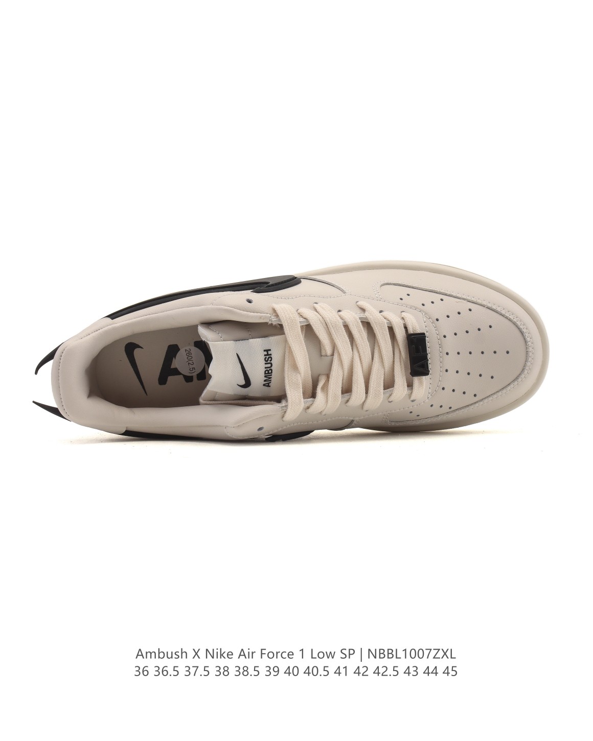 特价 耐克 空军一号 AF1 低帮休闲板鞋 Ambush x Nk Air Force 1 07 Low SP 空军一号联名标志性的Swoosh延伸至鞋跟之外 鞋舌和鞋垫上印有AMBUSH品牌标志 整体简约大气 可以适配多种造型 鞋身以及内衬均采用了皮革打造 标志性的超大Swoosh依旧采用了突出鞋面的造型 鞋带顶端还带有特殊的鞋带扣设计 后跟处搭载了与Dunk相同的TPU设计 并且带有AMBUSH字样 彰显联名身份 柔软 弹性十足的缓震性能和出色的中底设计 横跨复古与现代的外型结合 造就出风靡全球三十多年的Force 1