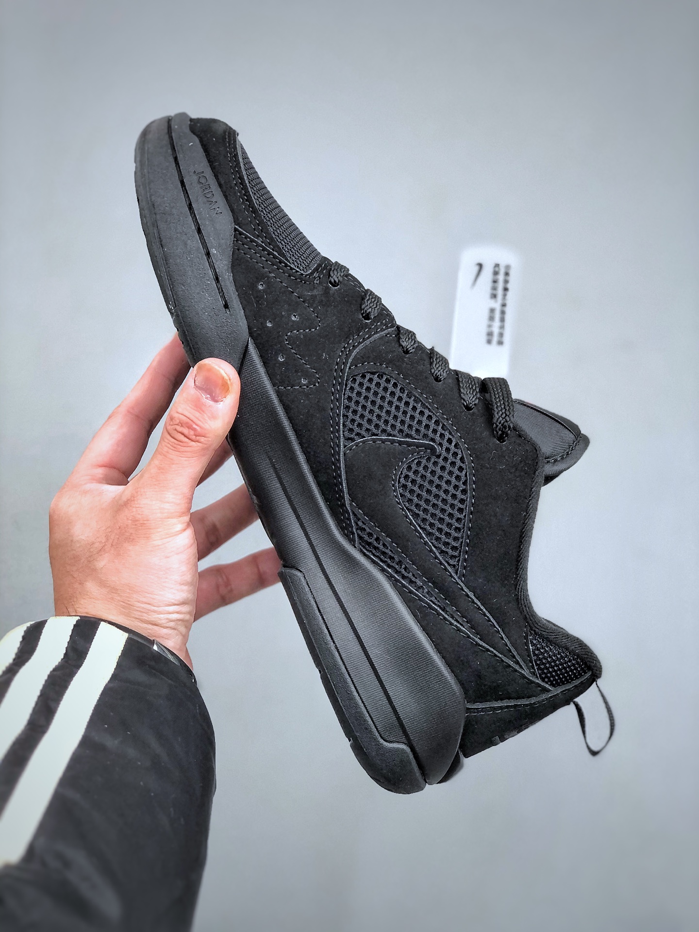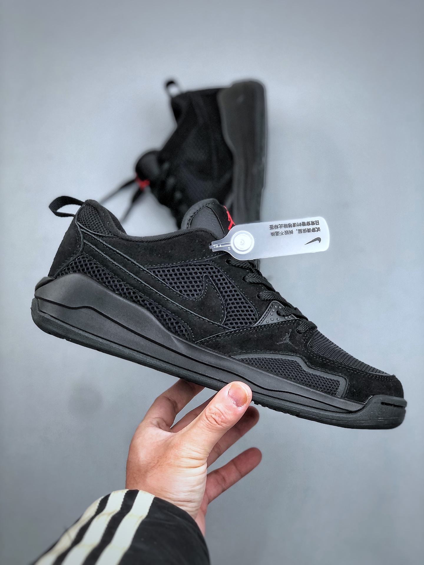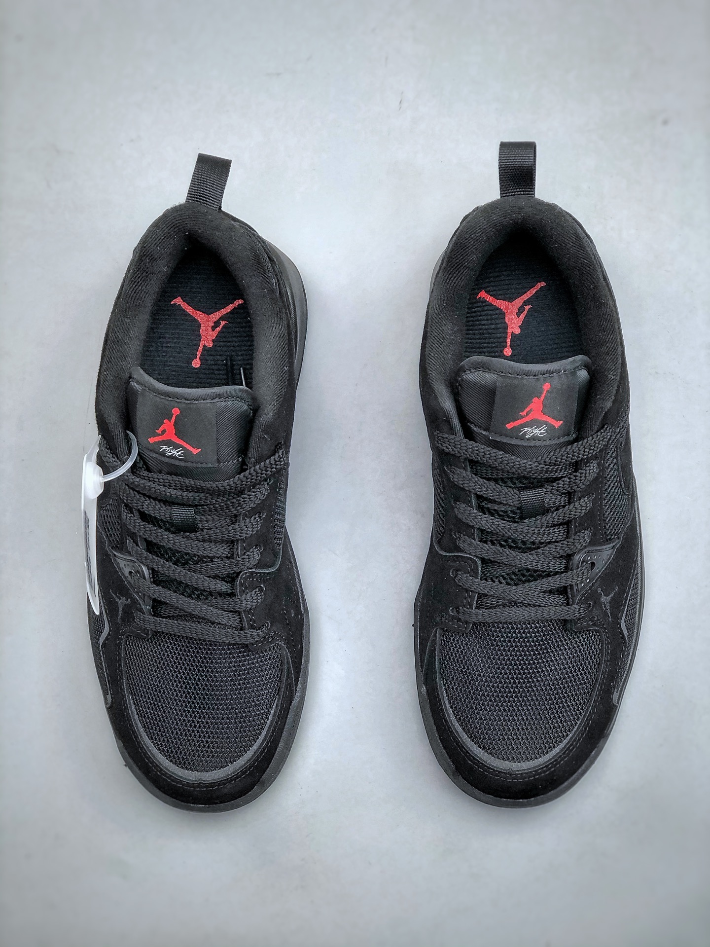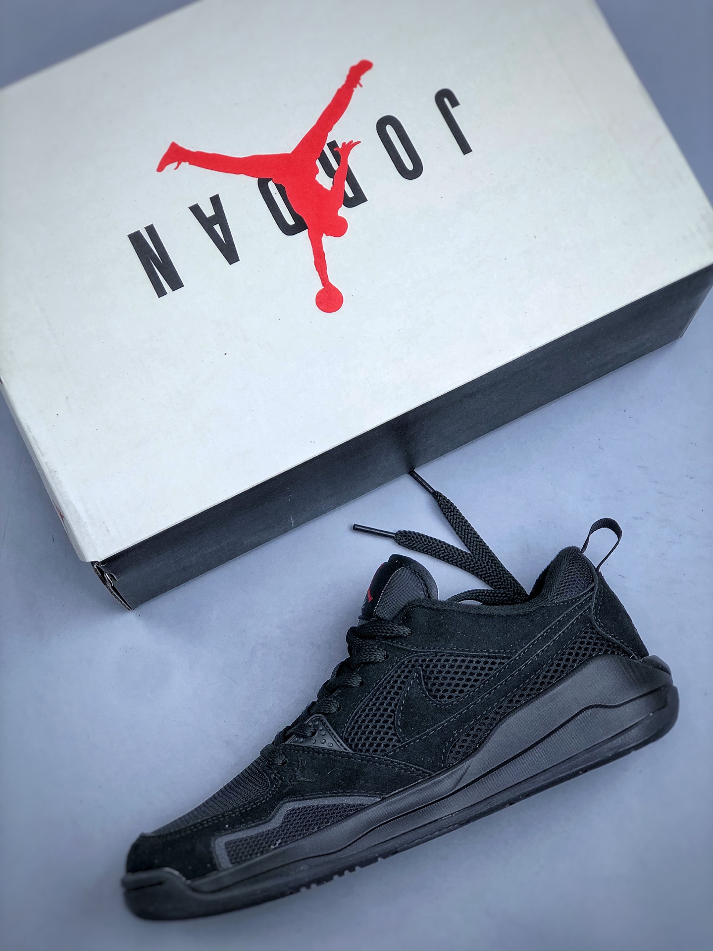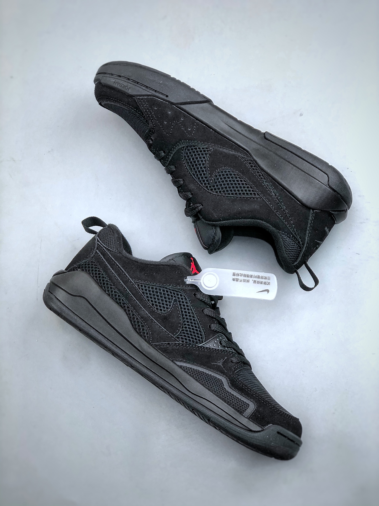 鞋身整体采用双层黑色网眼设计 搭配黑色翻毛皮框架覆盖层 鞋身两侧经典的Swoosh Logo标识以黑色点缀 鞋头处Jumpman Logo采用红色刺绣呈现 鞋舌标签上以红色Jumpman Logo及白色Flightf字样点缀 黑色中底为鞋子增添了复古和炫酷气息 搭配足弓支撑设计 时尚有型的同时 舒适感同步在线 后跟Nike Swoosh Logo辅以黑色花纹刺绣呈现 还融合了Air Jordan 1与Air Jordhan 6舒适科技DNA 确保全天候支撑 该鞋款没有复刻初代SB 而是以区块重构重新演绎新美学 让鞋子拥有复古韵味的同时 还夹杂着现代时尚设计