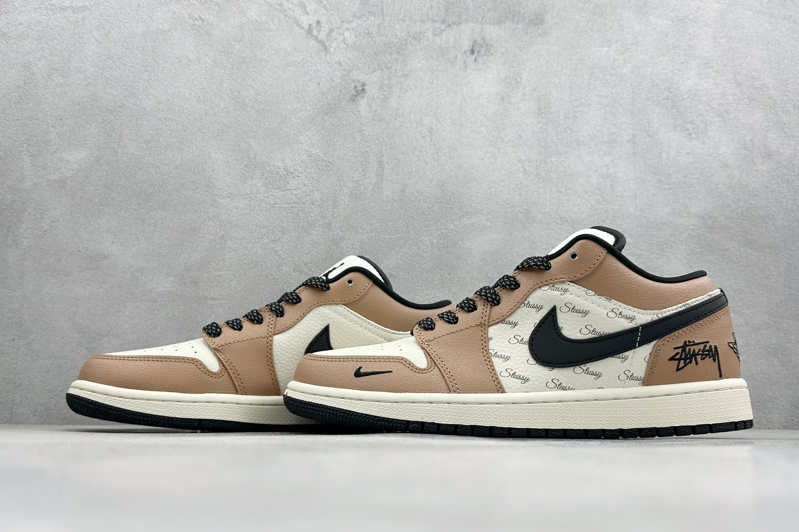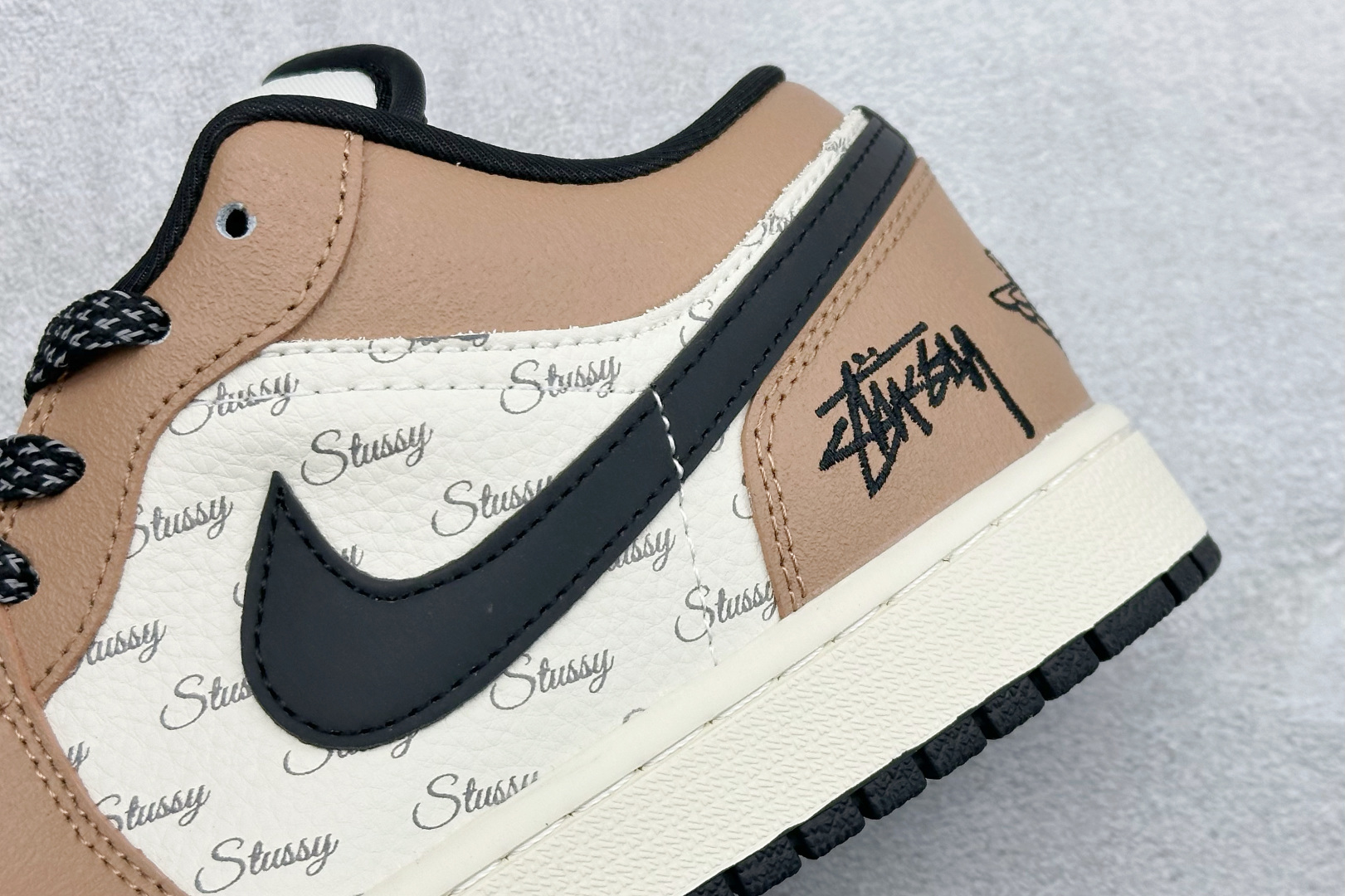 Air Jordan 1 Low AJ1 乔1斯图西联名 米棕黑 高端定制 低帮复古篮球鞋