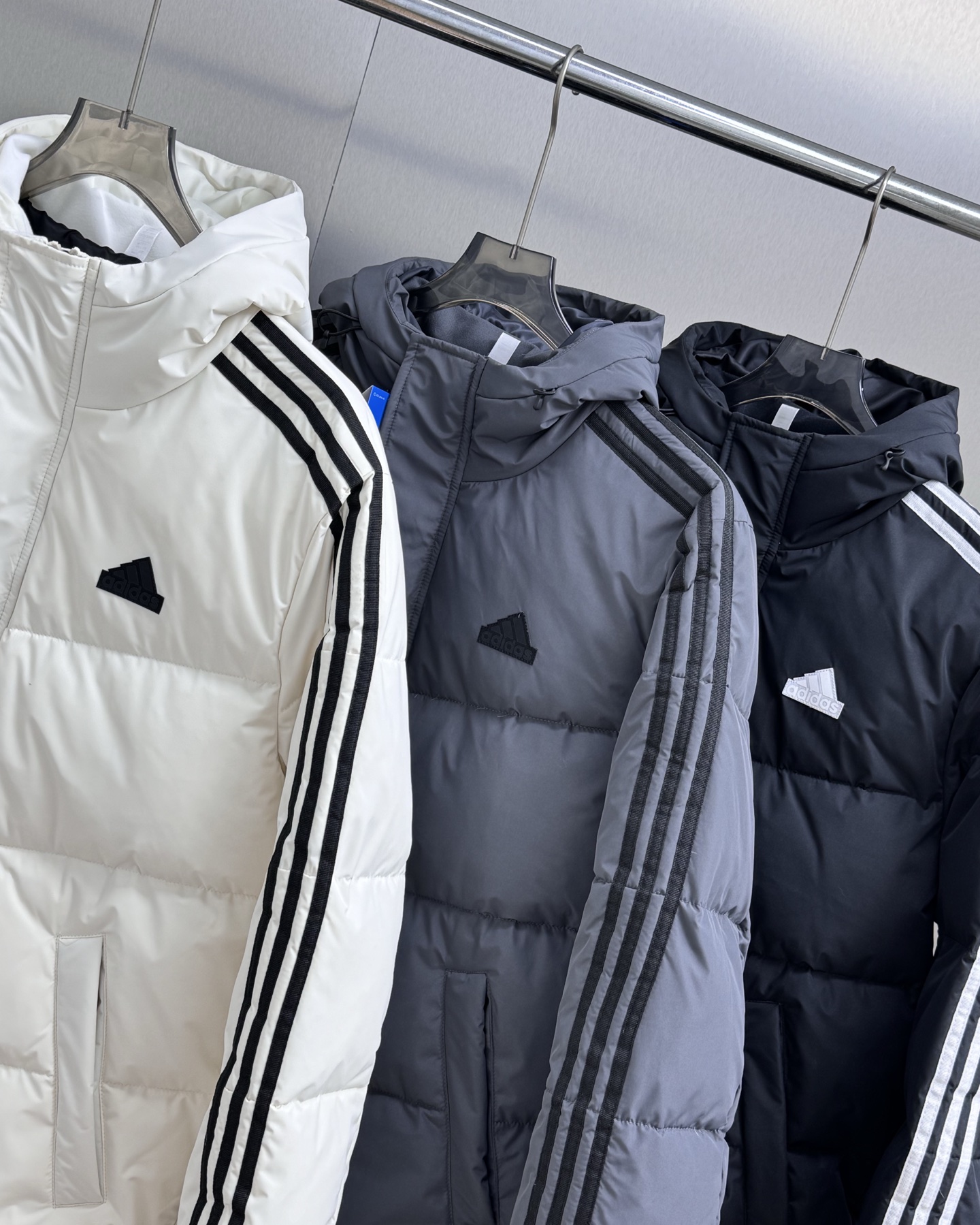 新款adidas阿迪达斯三条杠保暖专柜中款落肩款羽绒服明星同款阿迪羽绒服