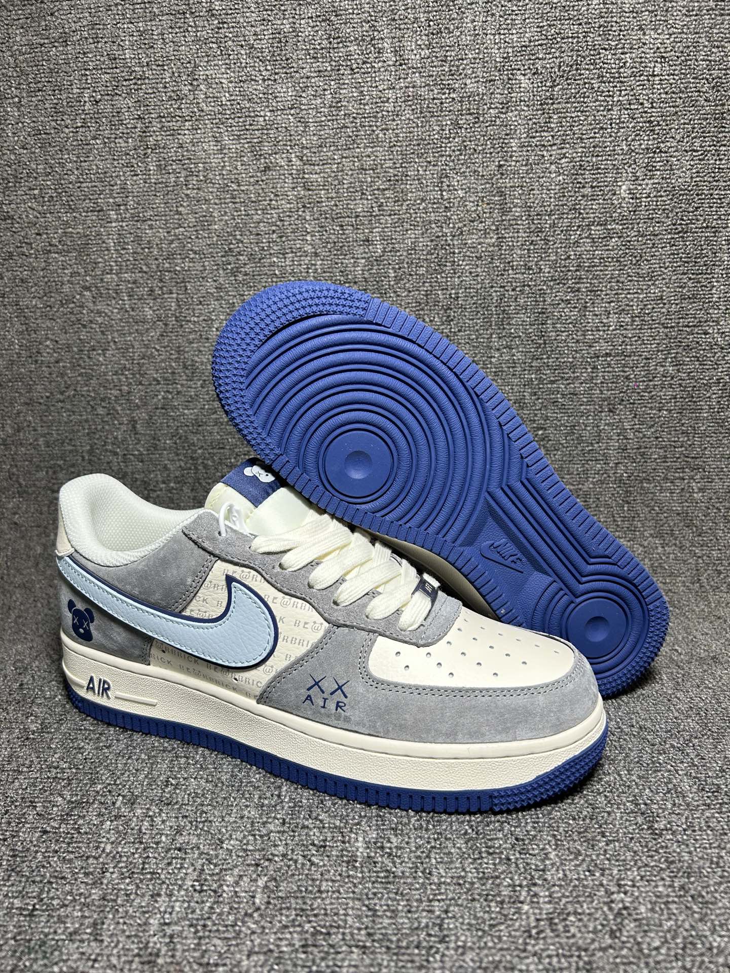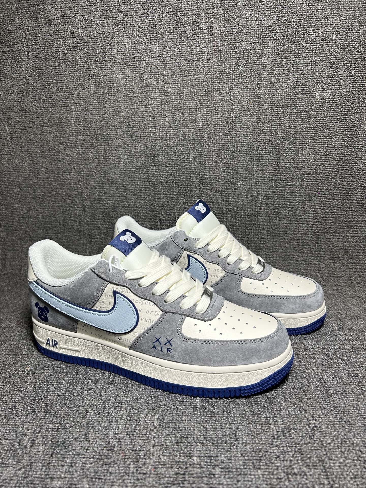 海外爆款限量发售 高端定制Nike Air Force 1 07 Low 暴力熊联名 白蓝灰麂皮 高端定制 低帮休闲板鞋 定制鞋盒 大厂纯原品质出货 超高清洁度 皮料切割干净无任何毛边 细节完美