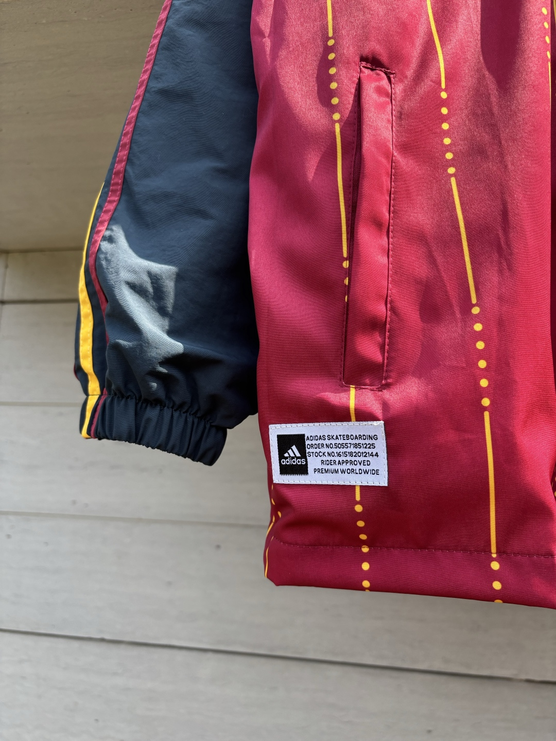胸前万针刺绣字母𝗹𝗼𝗴𝗼采用阿迪经典三条杠拼接设计