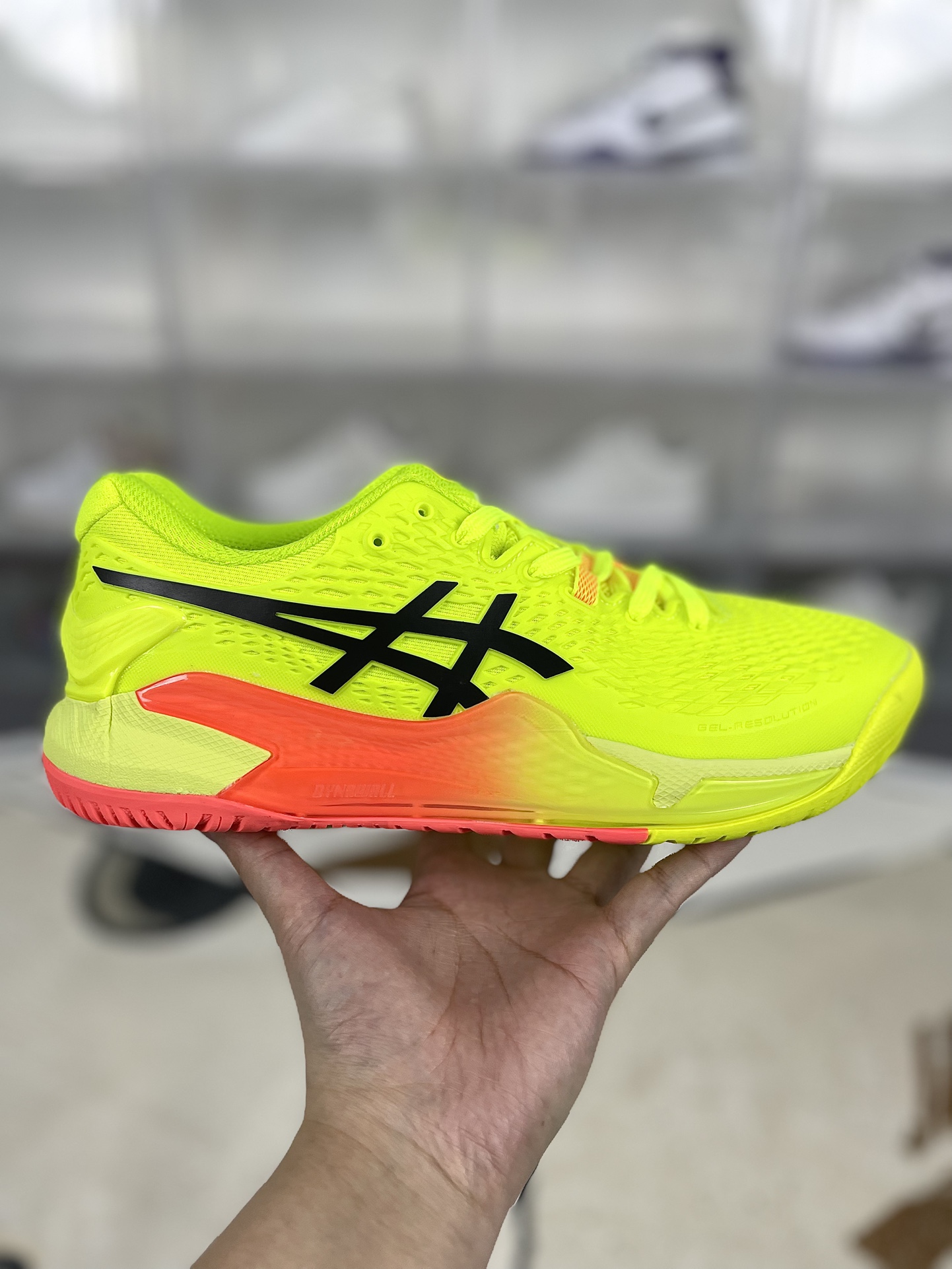 GEL RESOLUTION 9是一款稳定型网球鞋 DYNAWRAP动态鞋带科技经过重新设计 提供额外支撑所需的压力 前后内置GEL缓冲系统带来很好的缓冲感 DYNAWALL中足稳定科技延伸至后跟 增加了侧向运动的稳定性 全掌大底和分离式后掌结合多凹槽设计 令落地更加稳定舒适