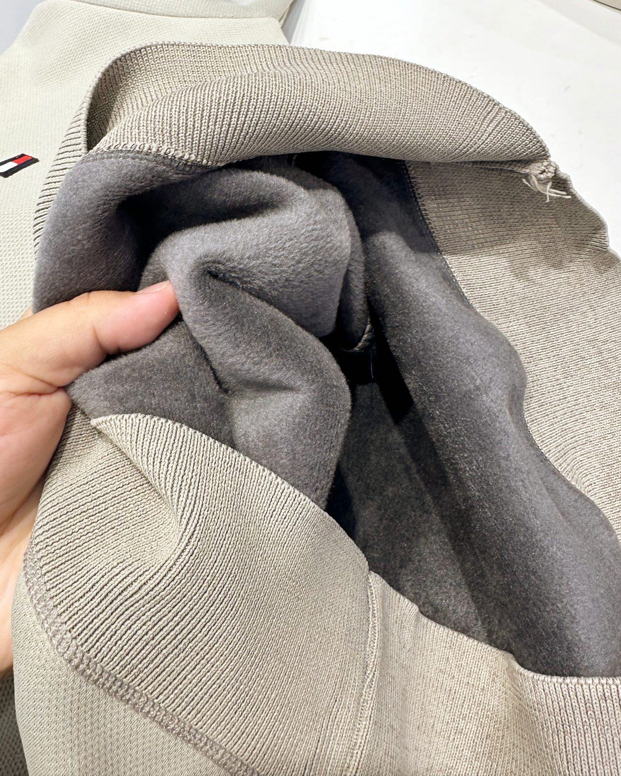 这款毛衣比较厚实 logo刺绣饱满好看 总得来说面料非常保暖和柔软舒适 领口针线精密适中 穿上没有松弛和紧绷感 精密车线缝制 不起球 不抽丝