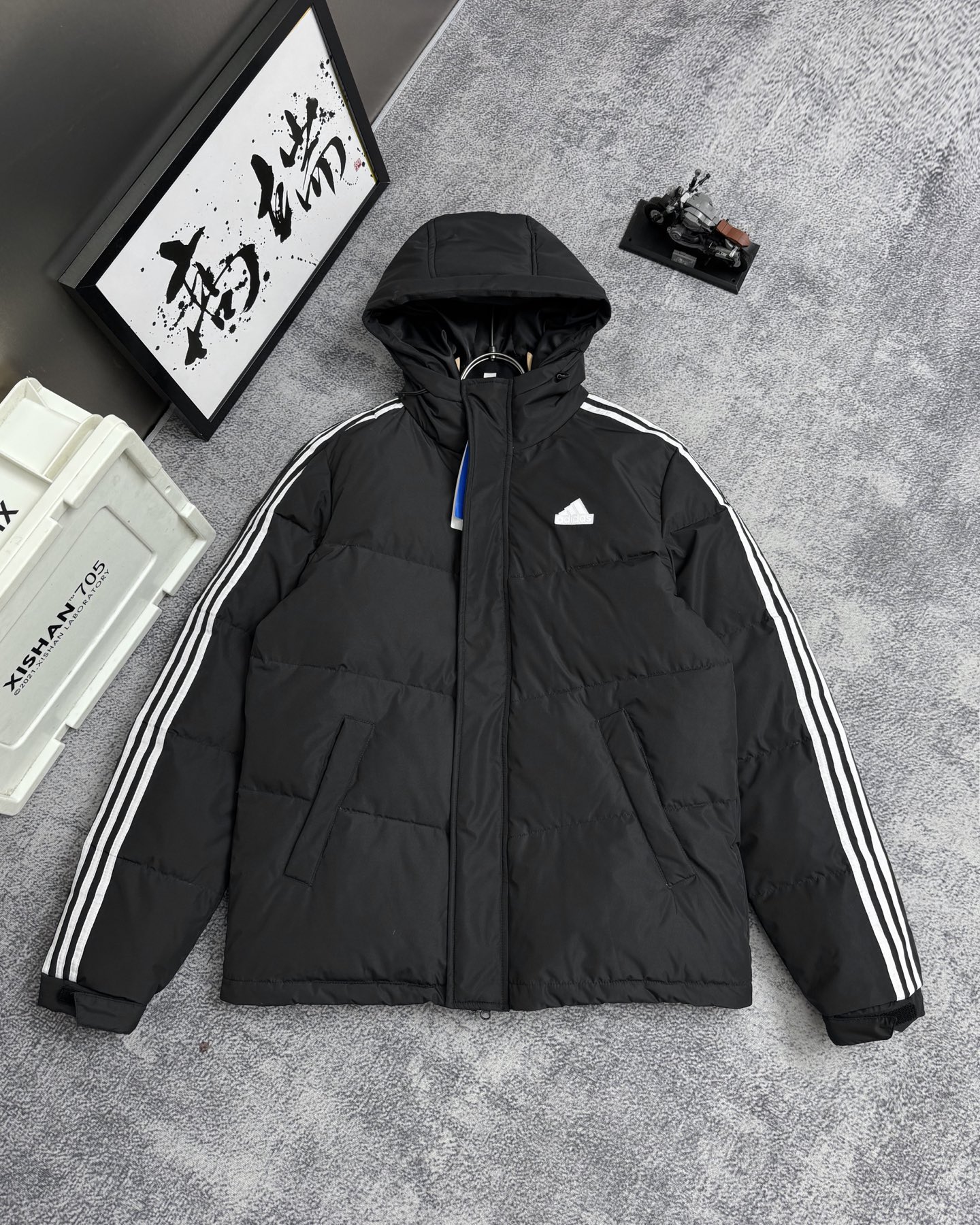 80 白鸭绒 20 羽毛 锁绒效果好 不拽绒 门襟双道压线 品质看得见 2023年冬季Adidas阿迪达斯男女情侣款连帽羽绒服 超级保暖效果贼好 今年冬天一定冷 充绒量足 让这个冬天不在冷了 上身效果非常好 整个身体都保暖了