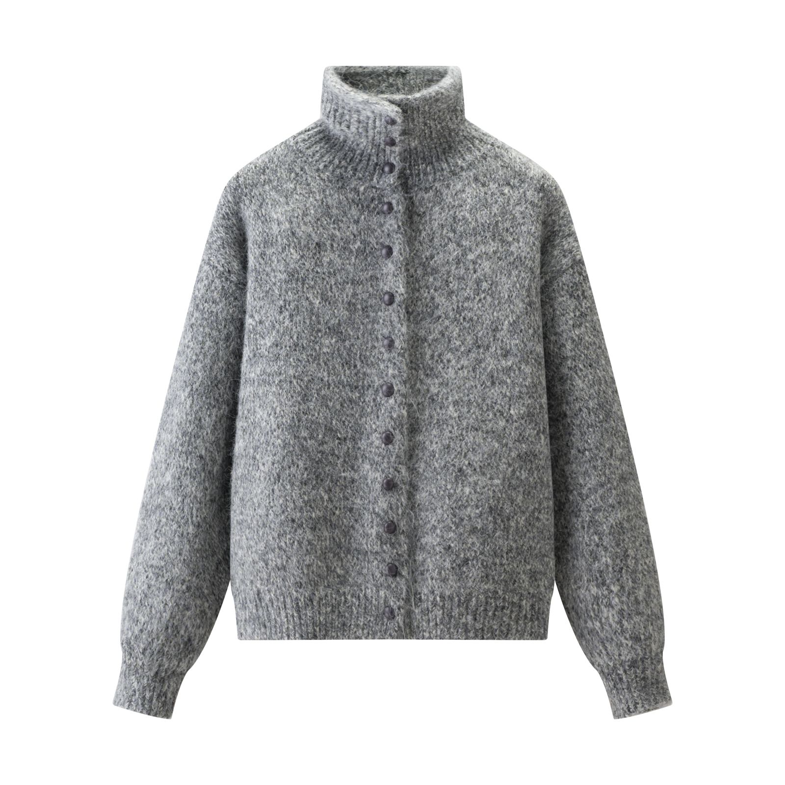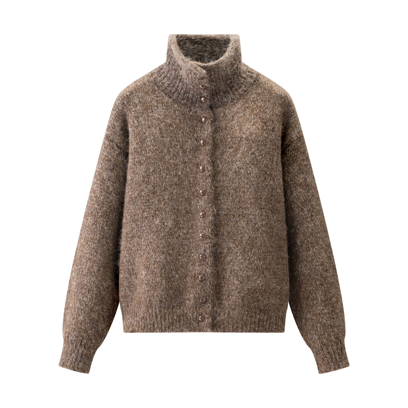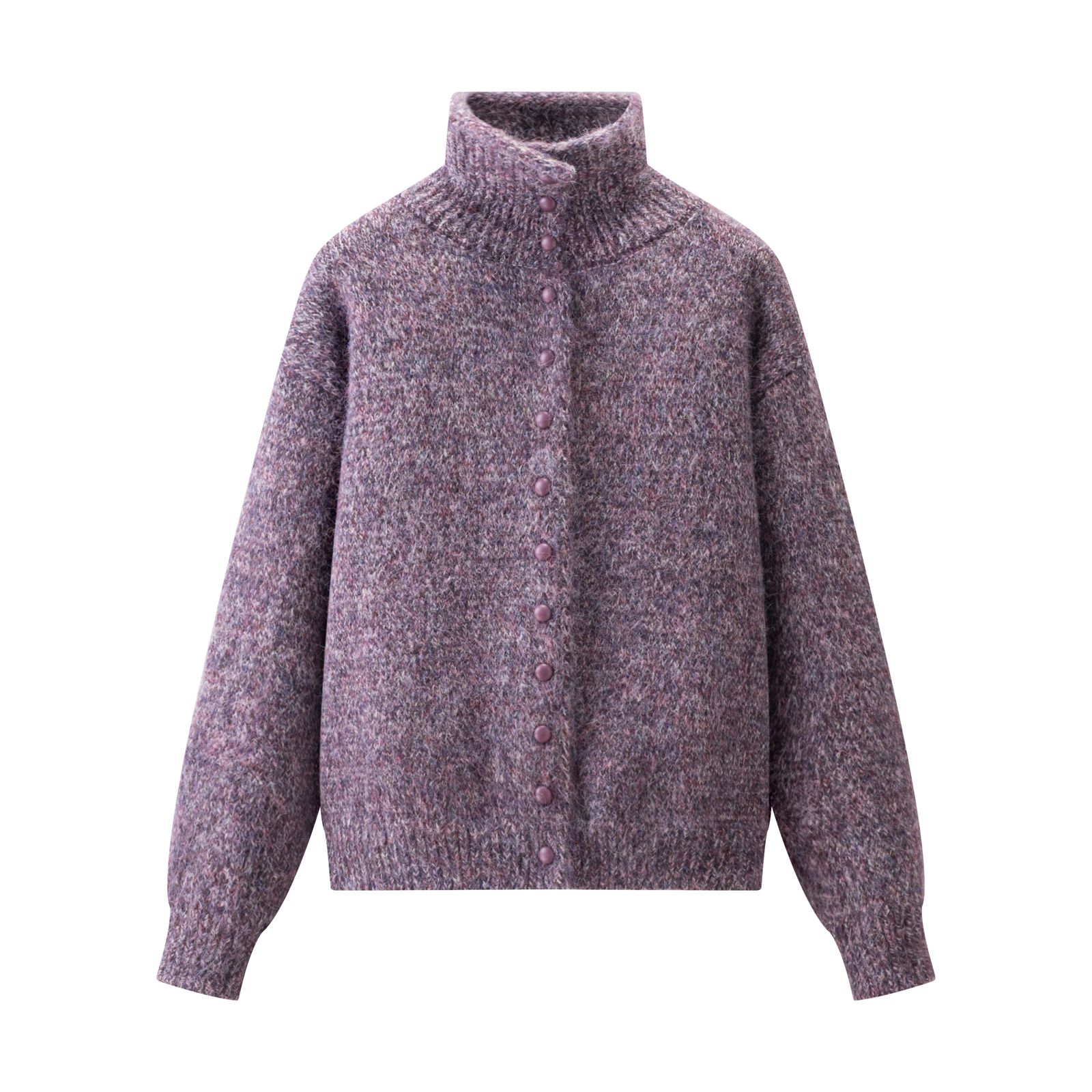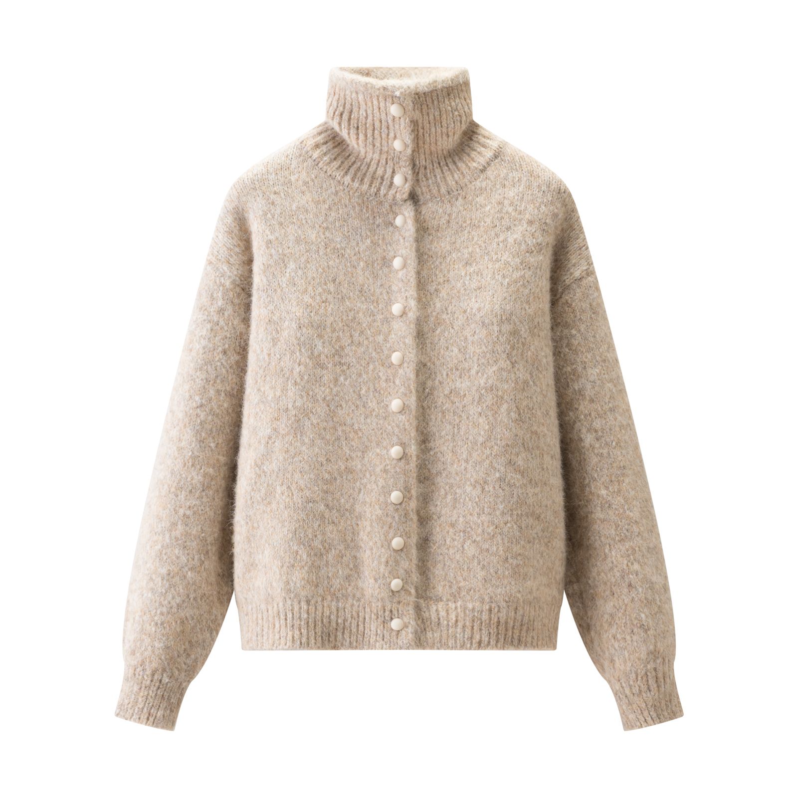 自带柔雾感的杂色毛绒面料 像裹了团软乎乎的云朵 高领 单排珍珠扣设计 甜中带点精致氛围感 宽松落肩版型不挑身材 裹在身上慵懒又藏肉