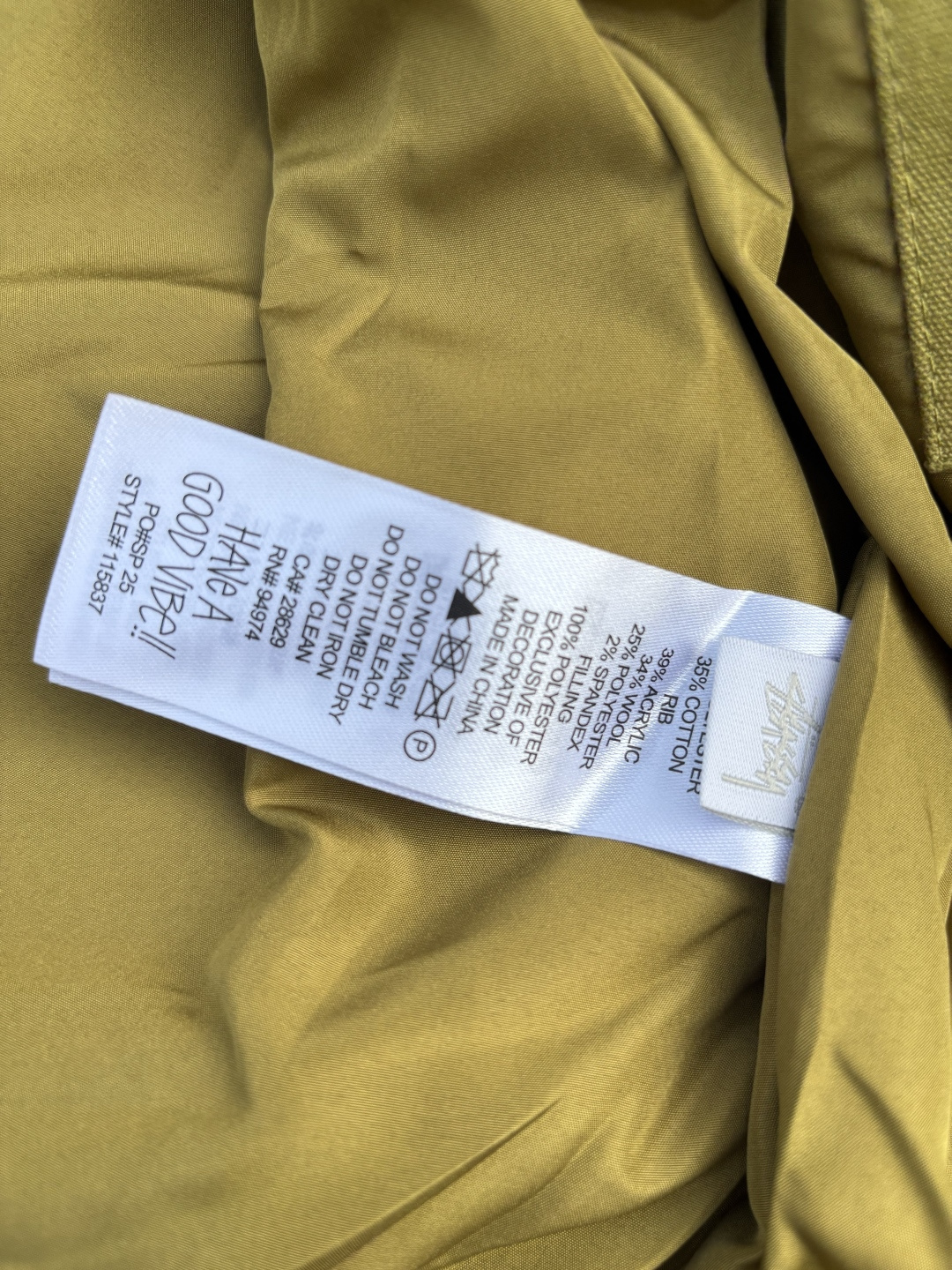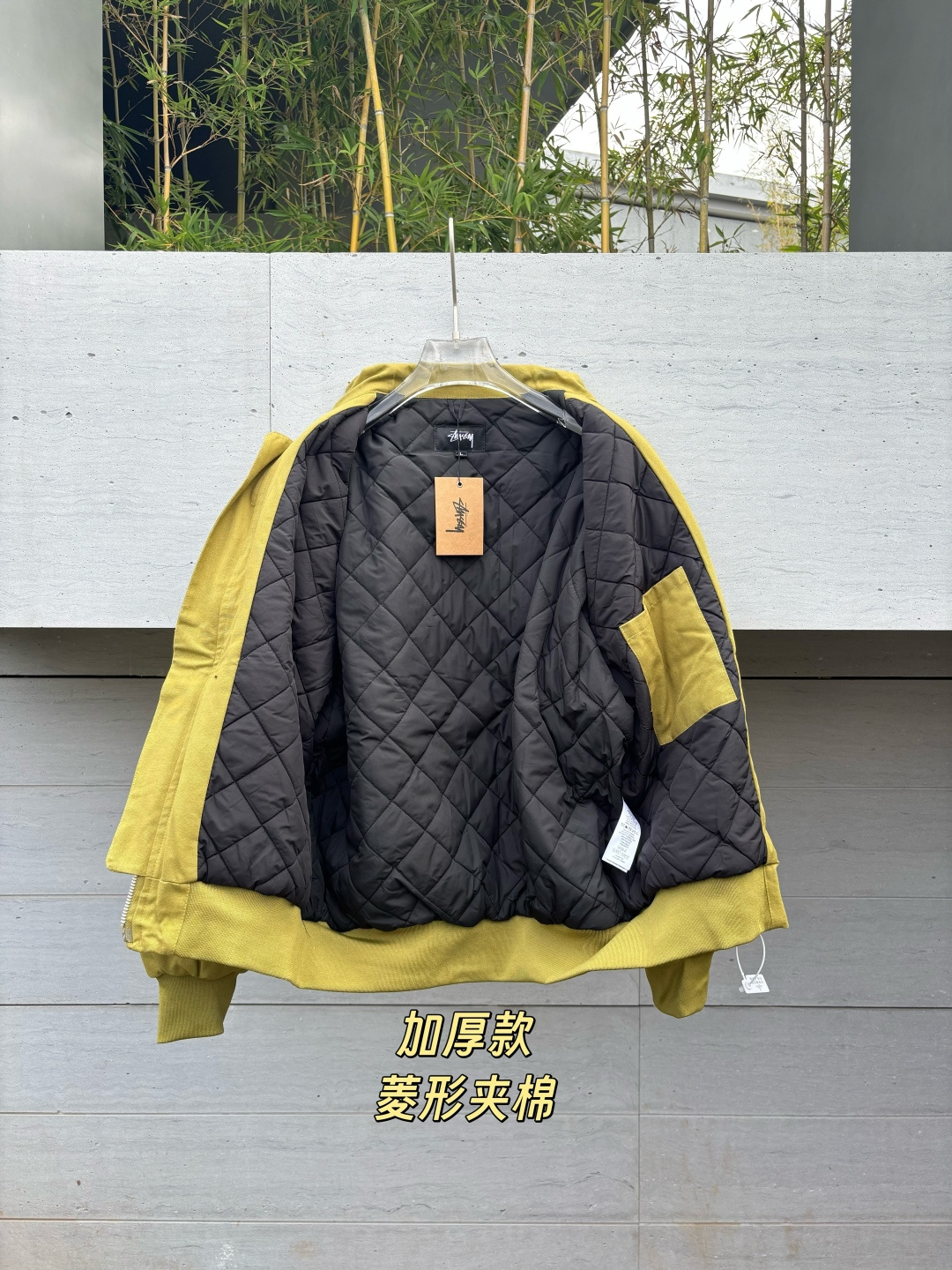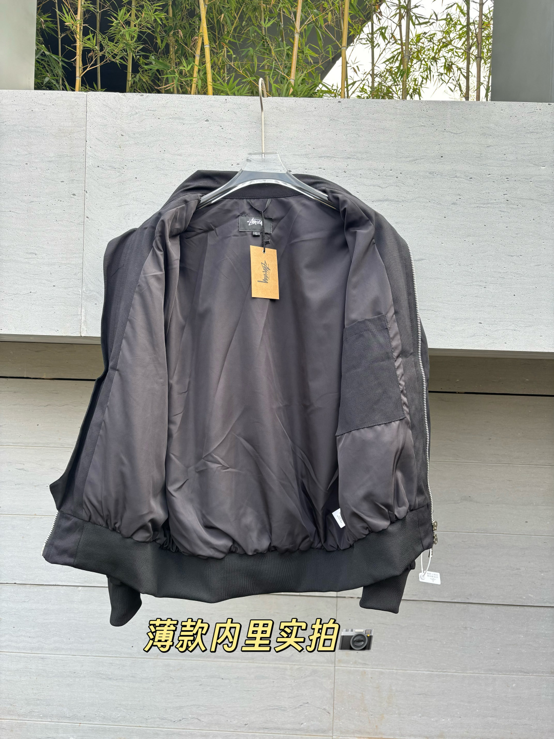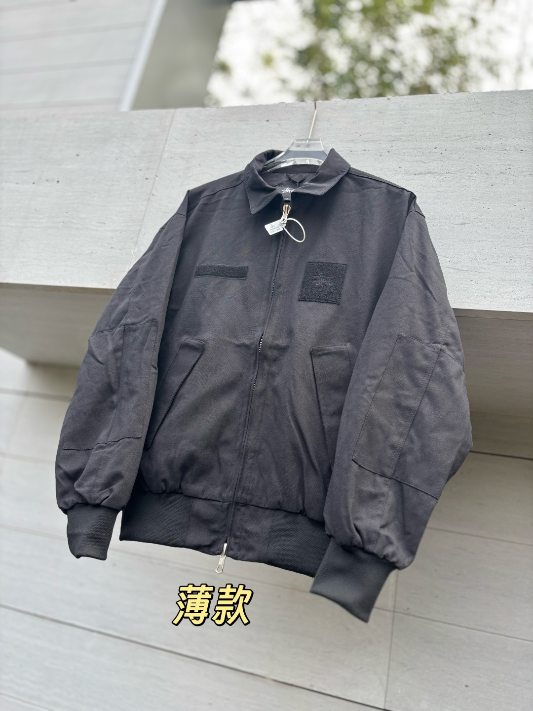 新款 𝗦𝘁𝘂𝘀𝘀𝘆 斯图西 罗纹边拉链翻领徽标宽松美式复古夹克外套 𝗦𝘁𝘂𝘀𝘀𝘆今年终于带来一好看的新款飞行夹克了 上身最好看还得属这个金橄榄配色 实物比图片亮一些 设计上增加了翻领和魔术贴的设计 用料比想象中的薄 内里没有填充物 拉链用了故意做旧氧化的复古效果
