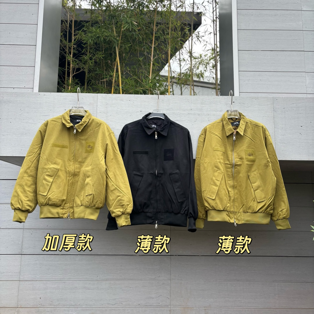 加厚款 薄款 独家实拍上新 顶级版本 区别通货 𝗦𝘁𝘂𝘀𝘀𝘆 𝗦𝗦𝟮𝟱 罗纹边拉链翻领徽标宽松美式复古夹克外套 男女同款