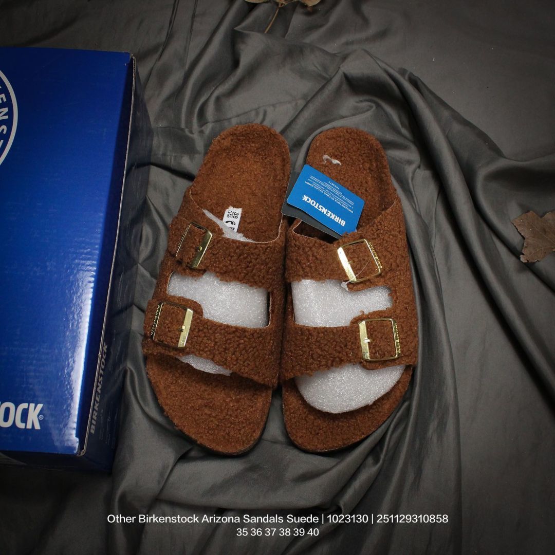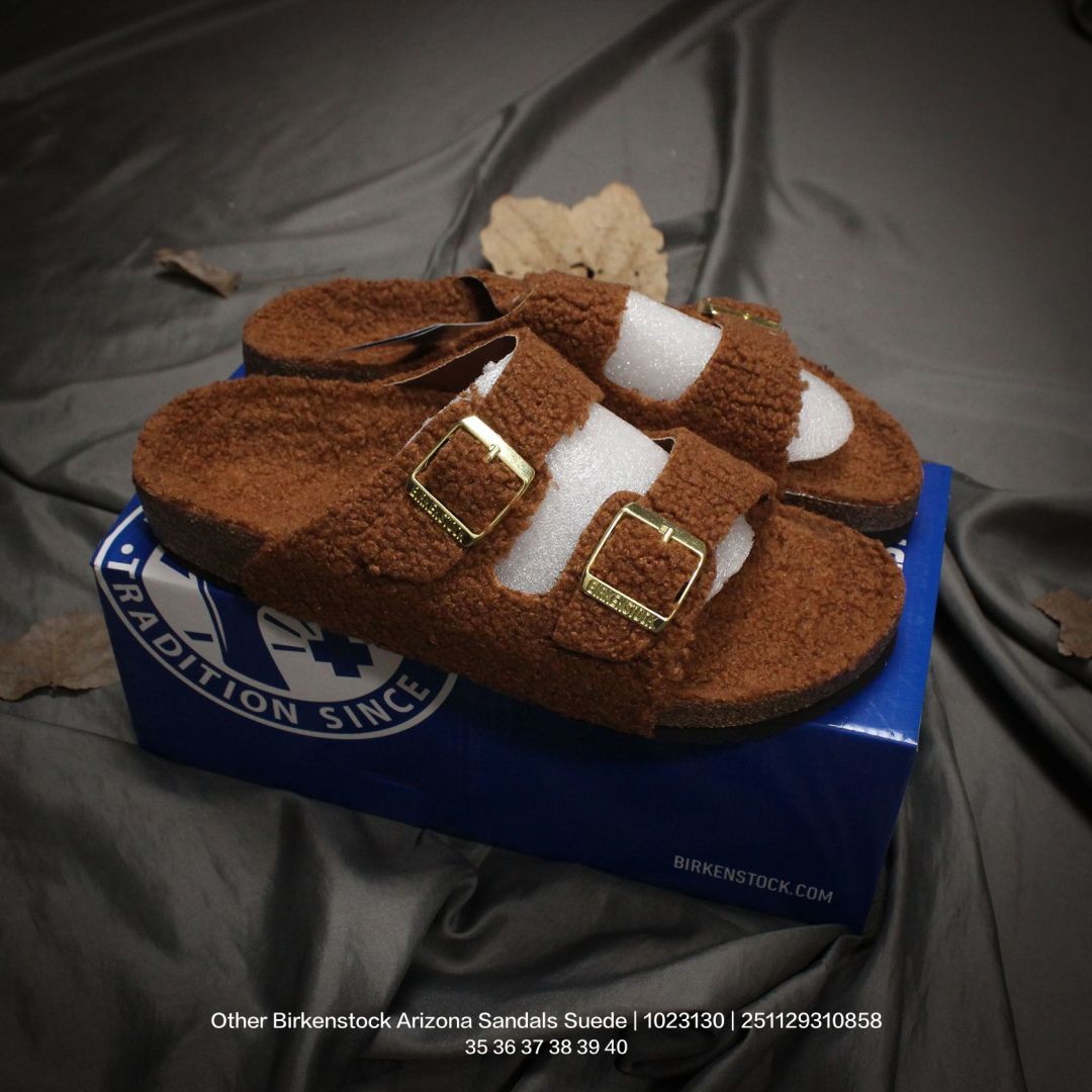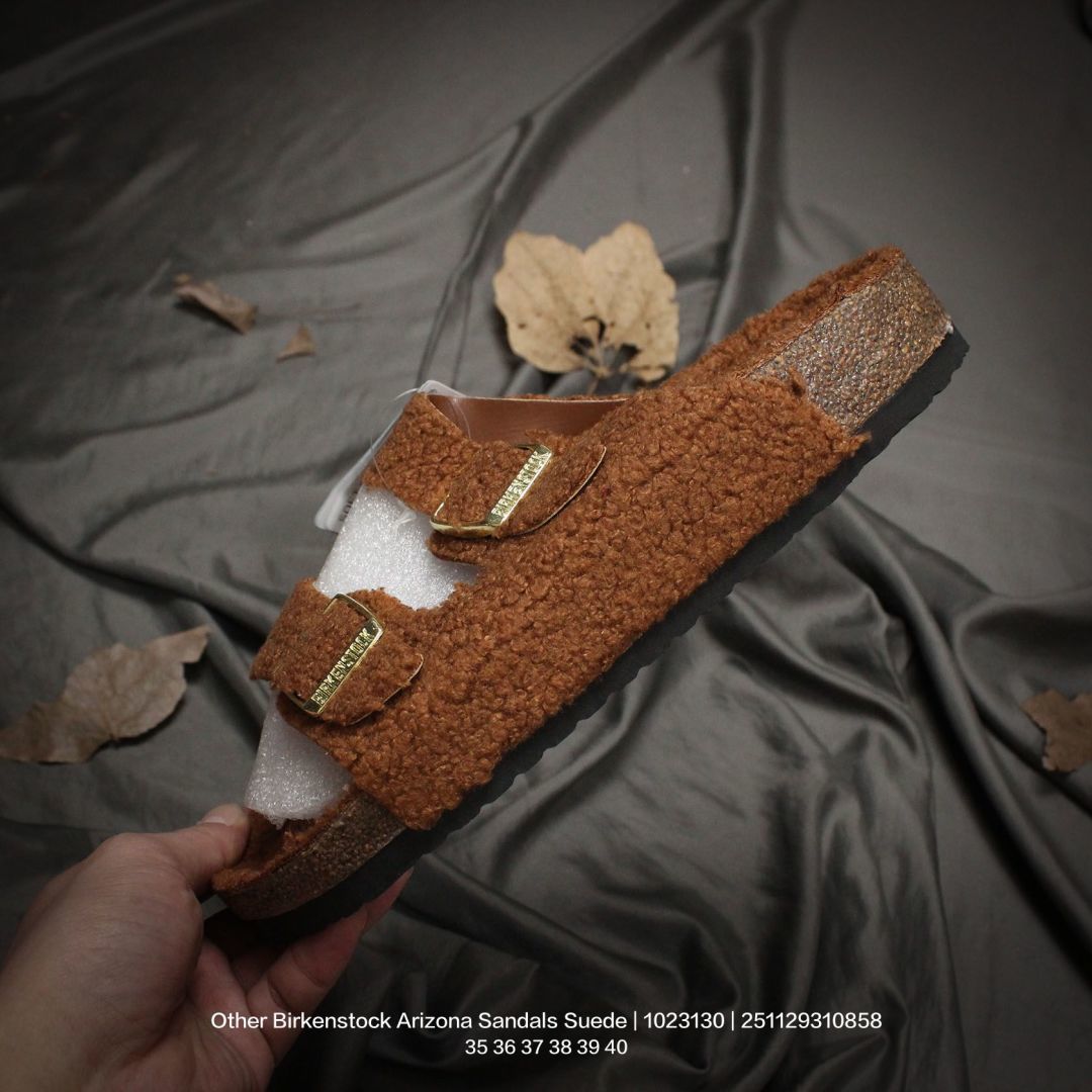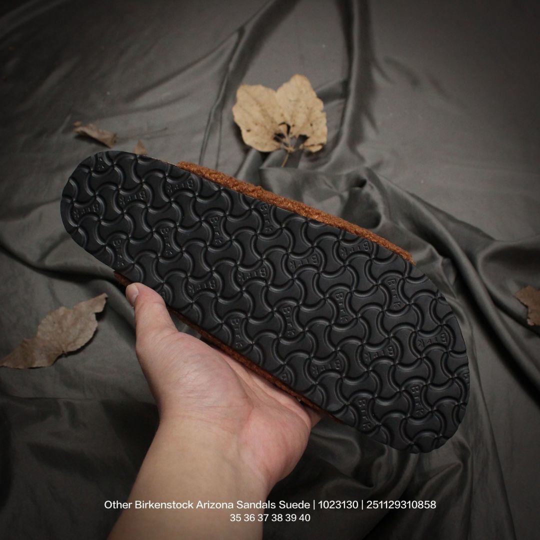 广东原产 升级原楦开发版型 采用柔软牛皮绒面革里衬皮毛一体鞋面材质 中底鞋床搭载波状外形缓震软木橡胶 外置EVA轻量片装外底舒适又时髦 潮人都在穿 德国百年知名鞋履品牌 博肯Birkenstock Arizona Sandals Suede 亚利桑那系列双搭扣可调节牛皮绒面革复古软木底休闲凉拖鞋 1023130